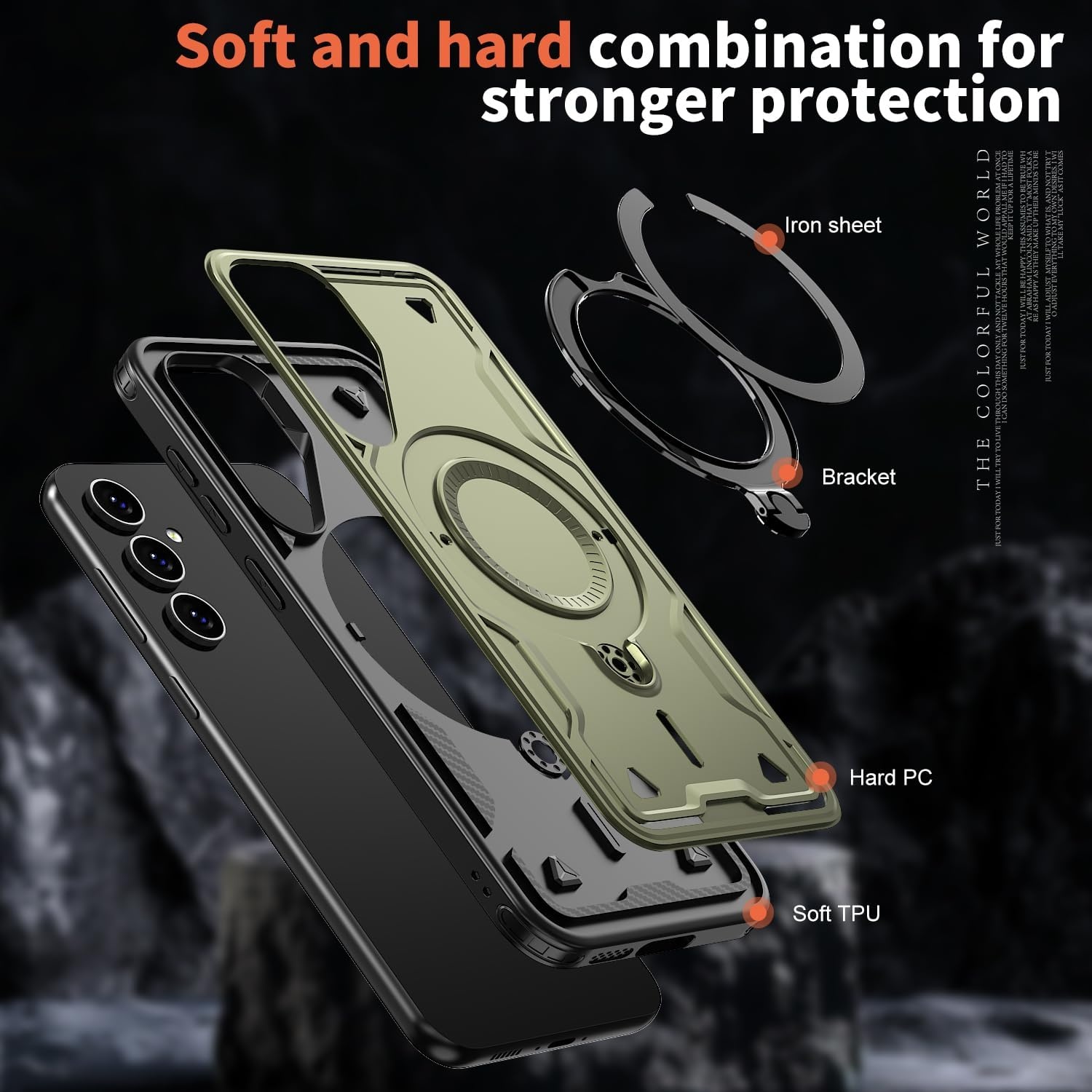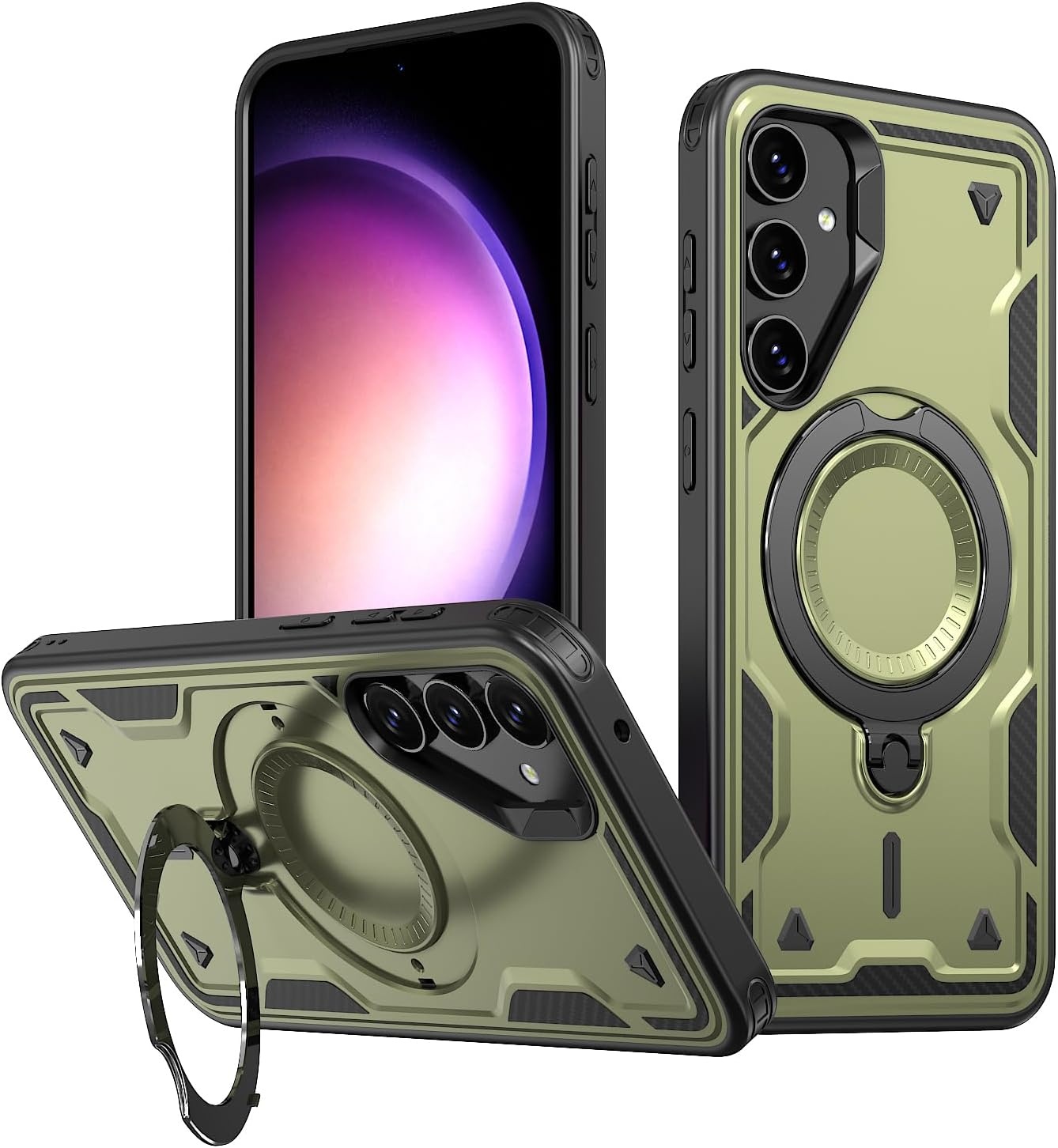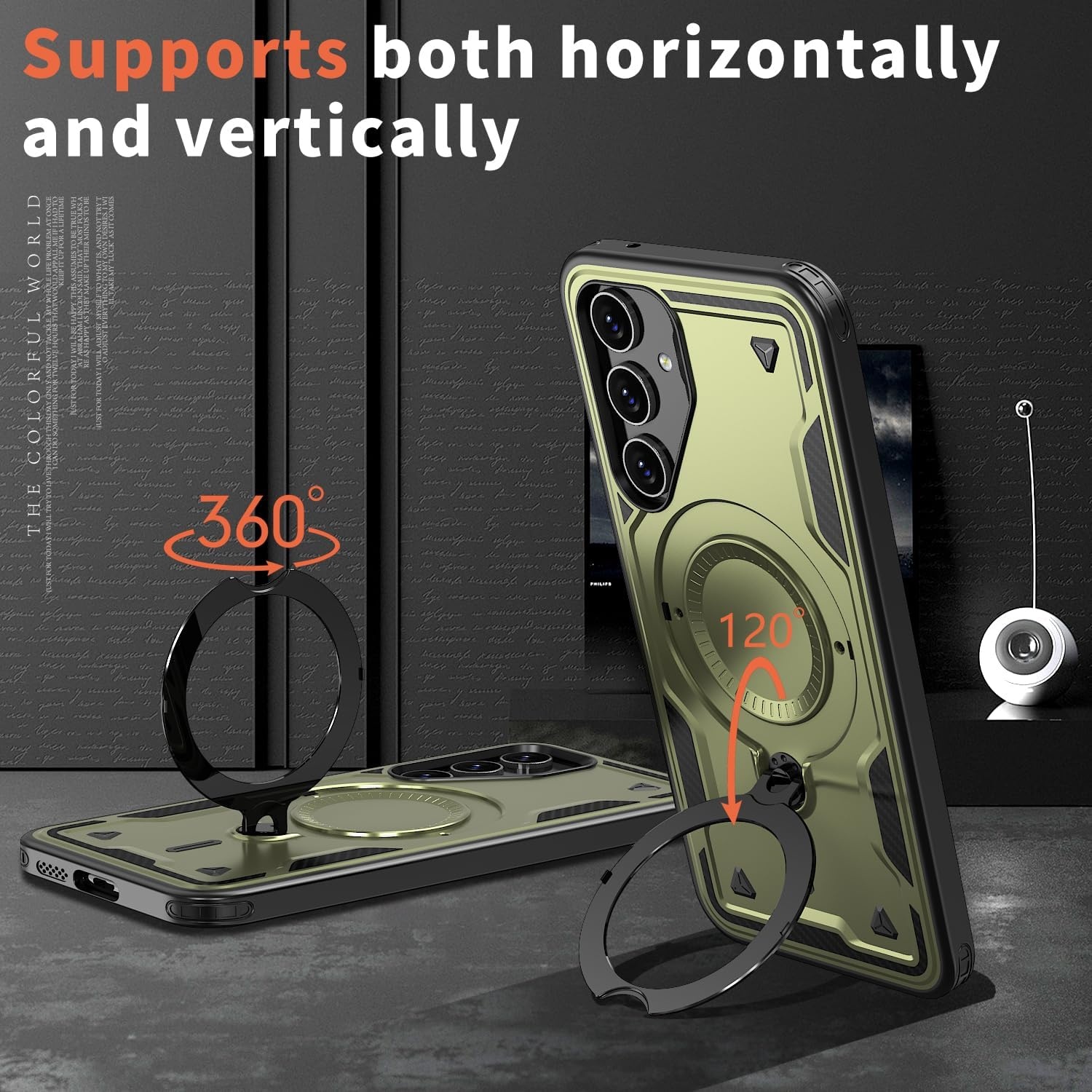 Magsafe Hoesje Geschikt voor Samsung Galaxy S23 FE Hoesje Olijgroen - Armor Hoesje met Met Draaibare Ring Houder