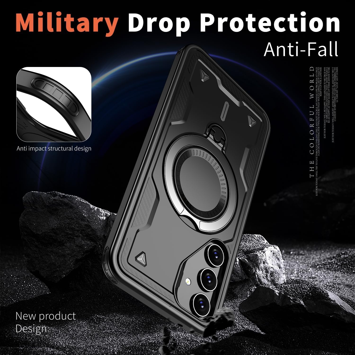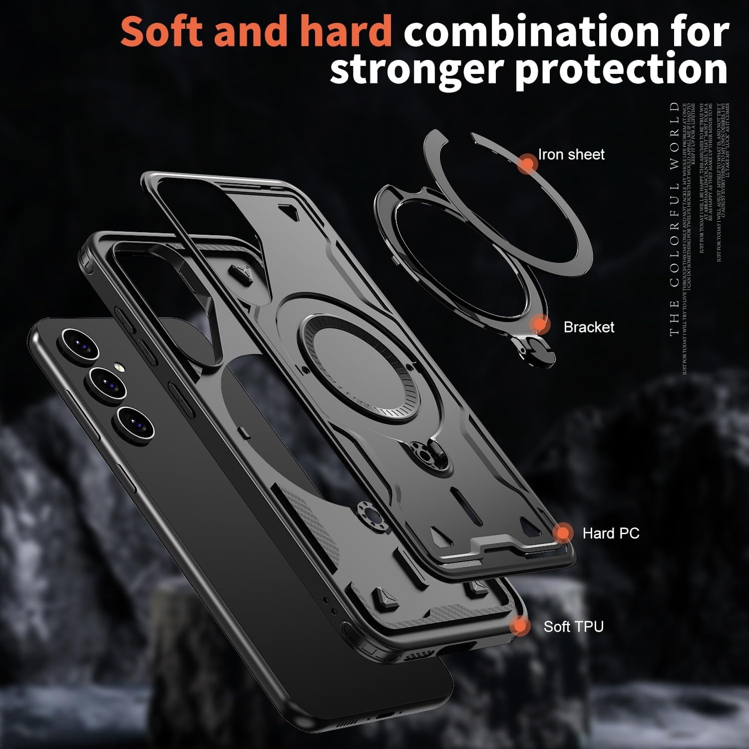Magsafe Hoesje Geschikt voor Samsung Galaxy S23 FE Hoesje Zwart - Armor Hoesje met Met Draaibare Ring Houder