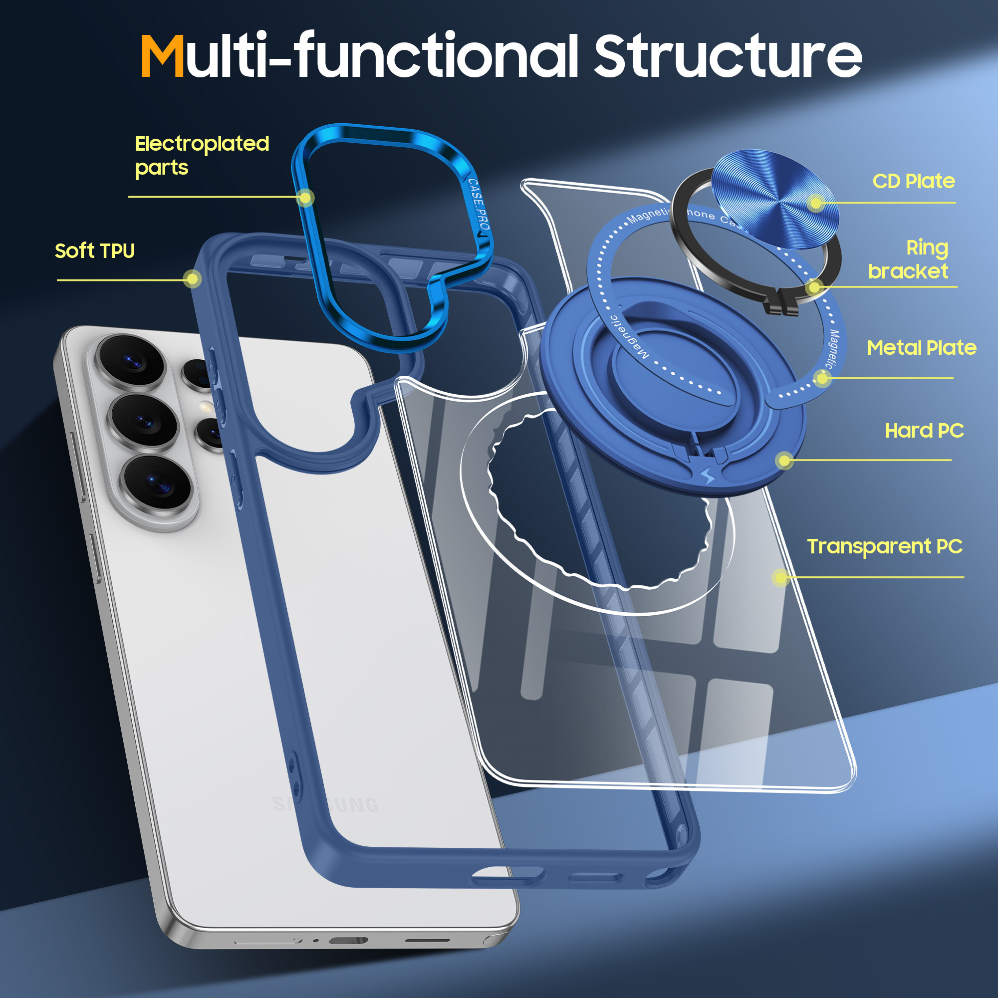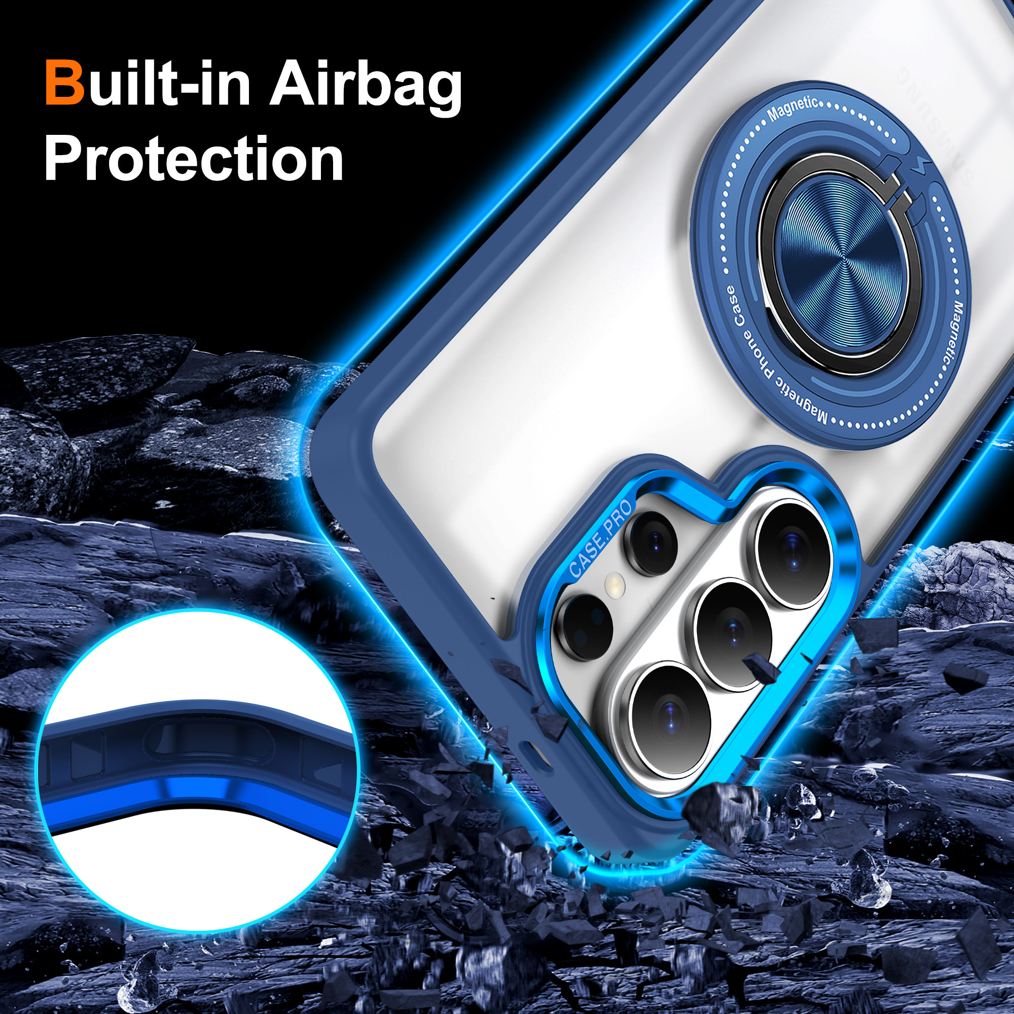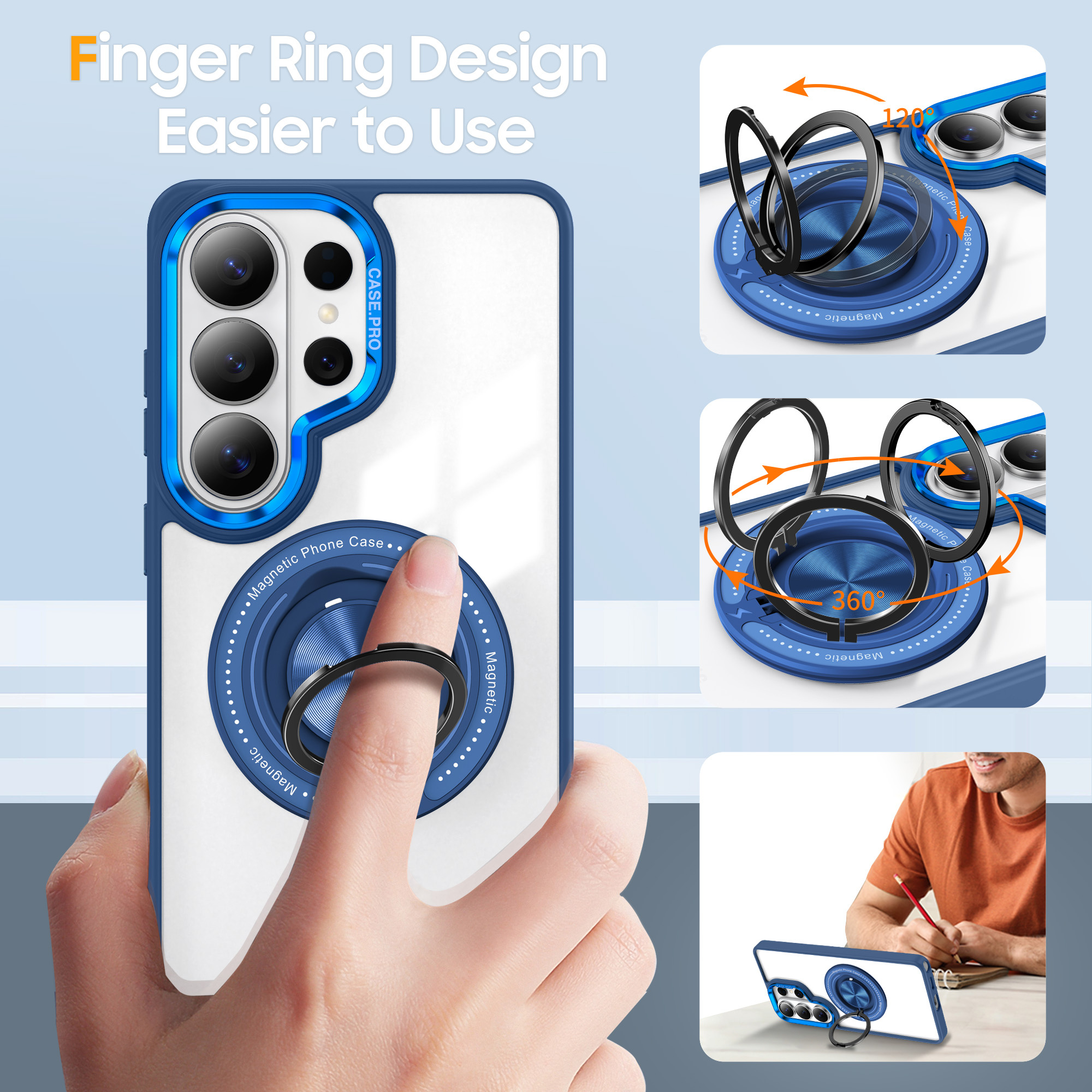 - De ingebouwde ringhouder biedt een stevige grip, waardoor je je telefoon gemakkelijker kunt vasthouden en voorkomt dat deze uit je handen glijdt.