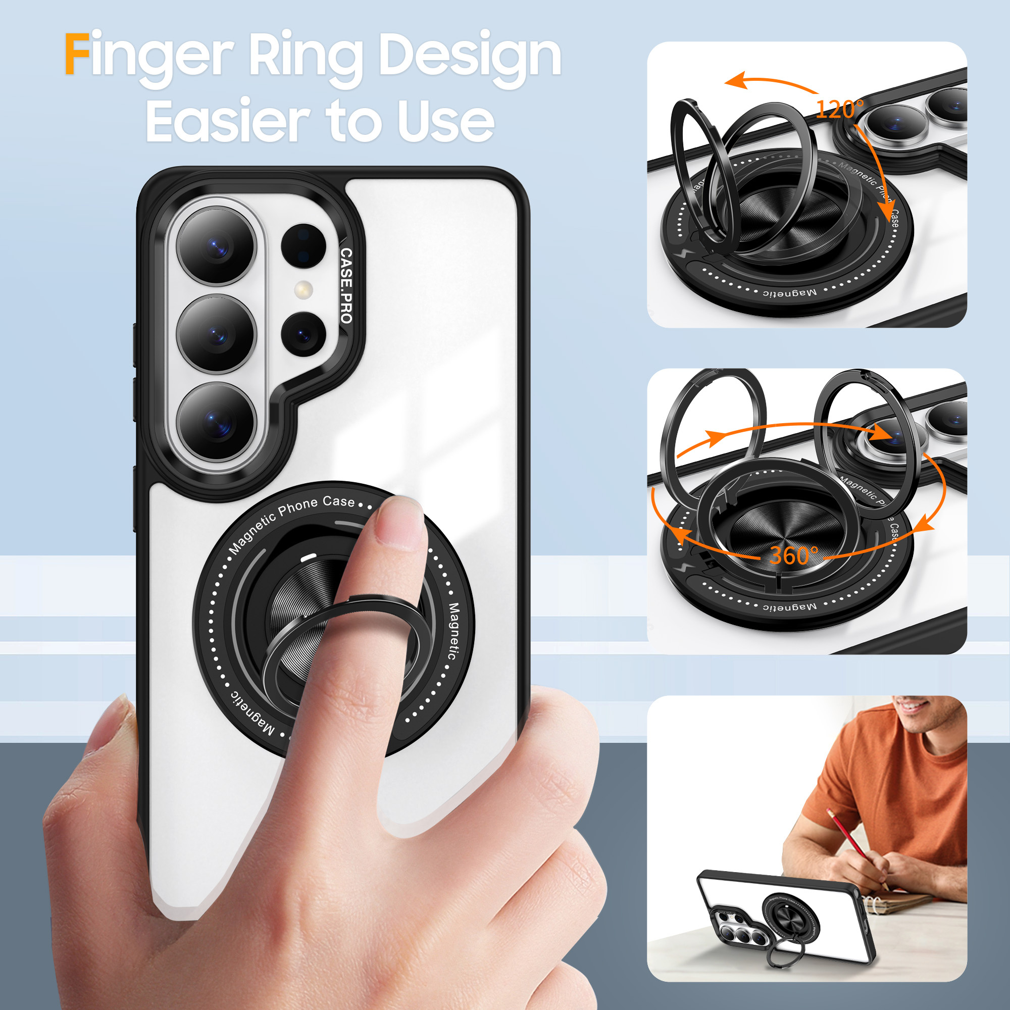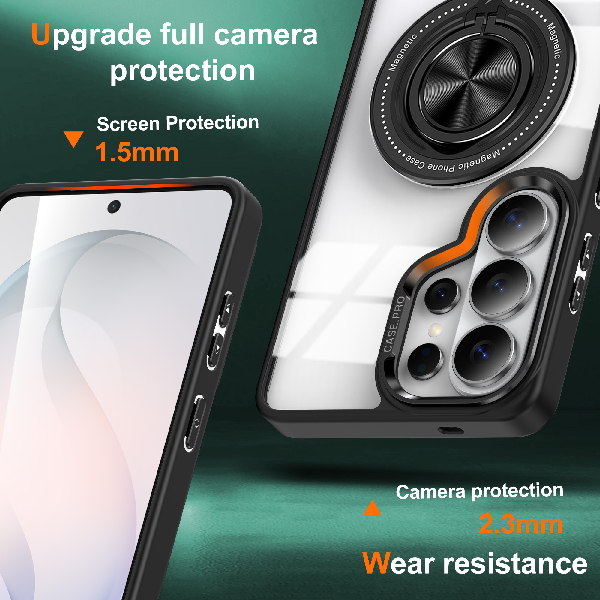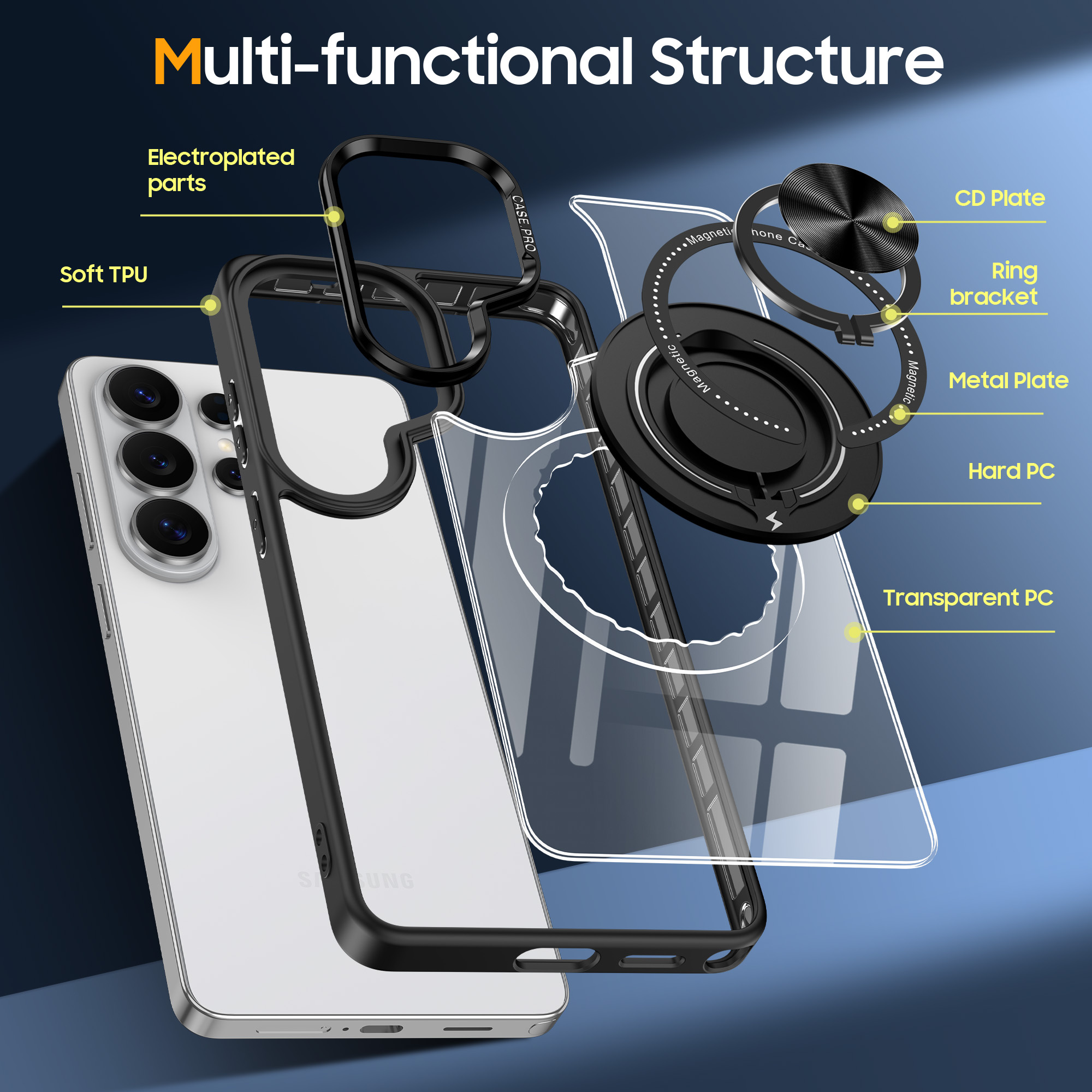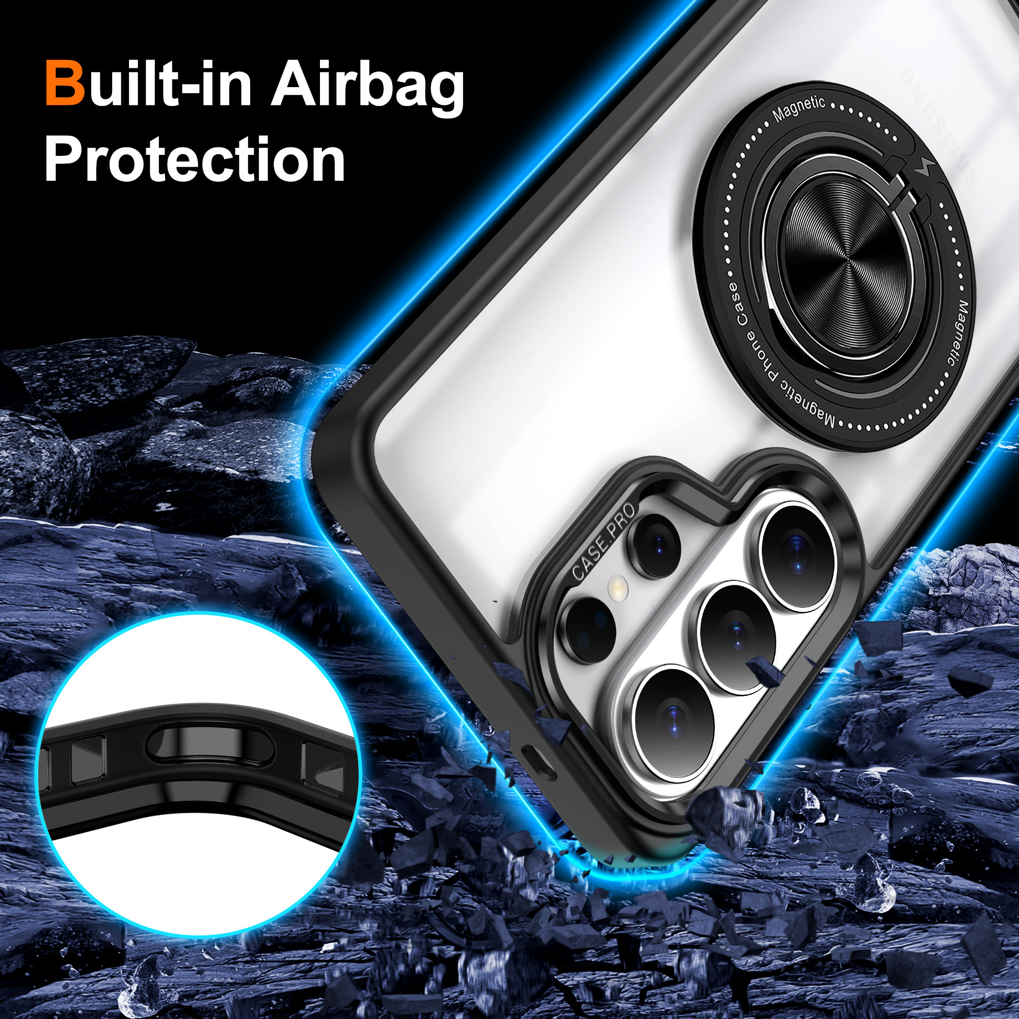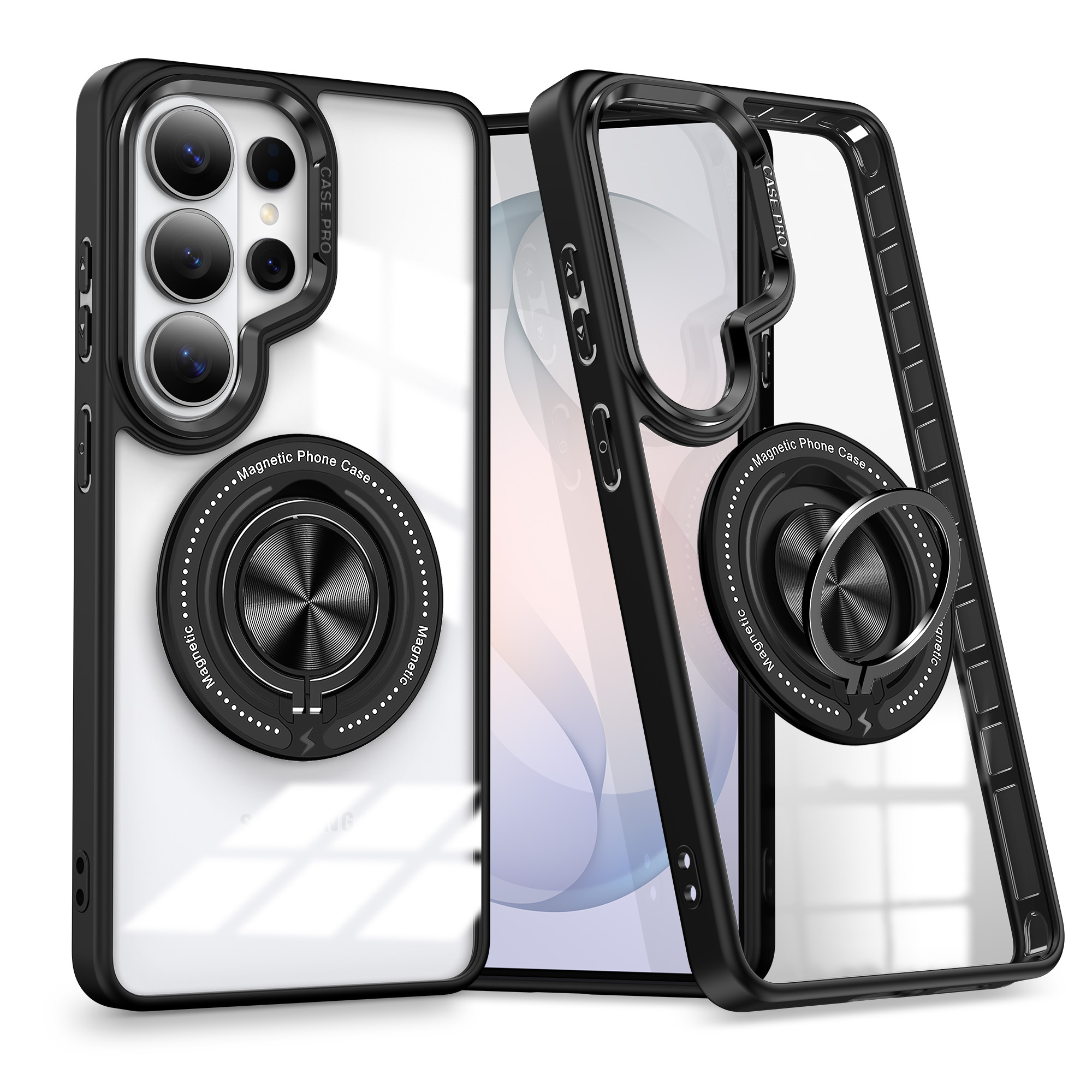 Magsafe Hoesje Geschikt voor Samsung Galaxy S26 Ultra hoesje Transparant Zwart - Met kickstand Draaibare Ring Houder