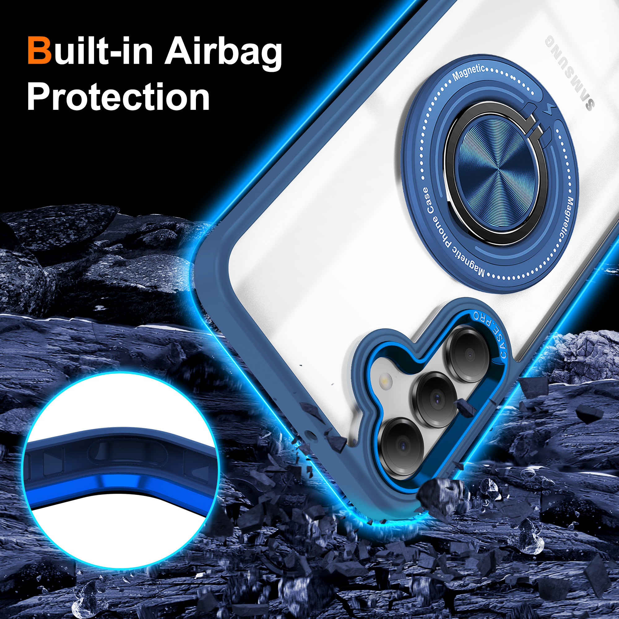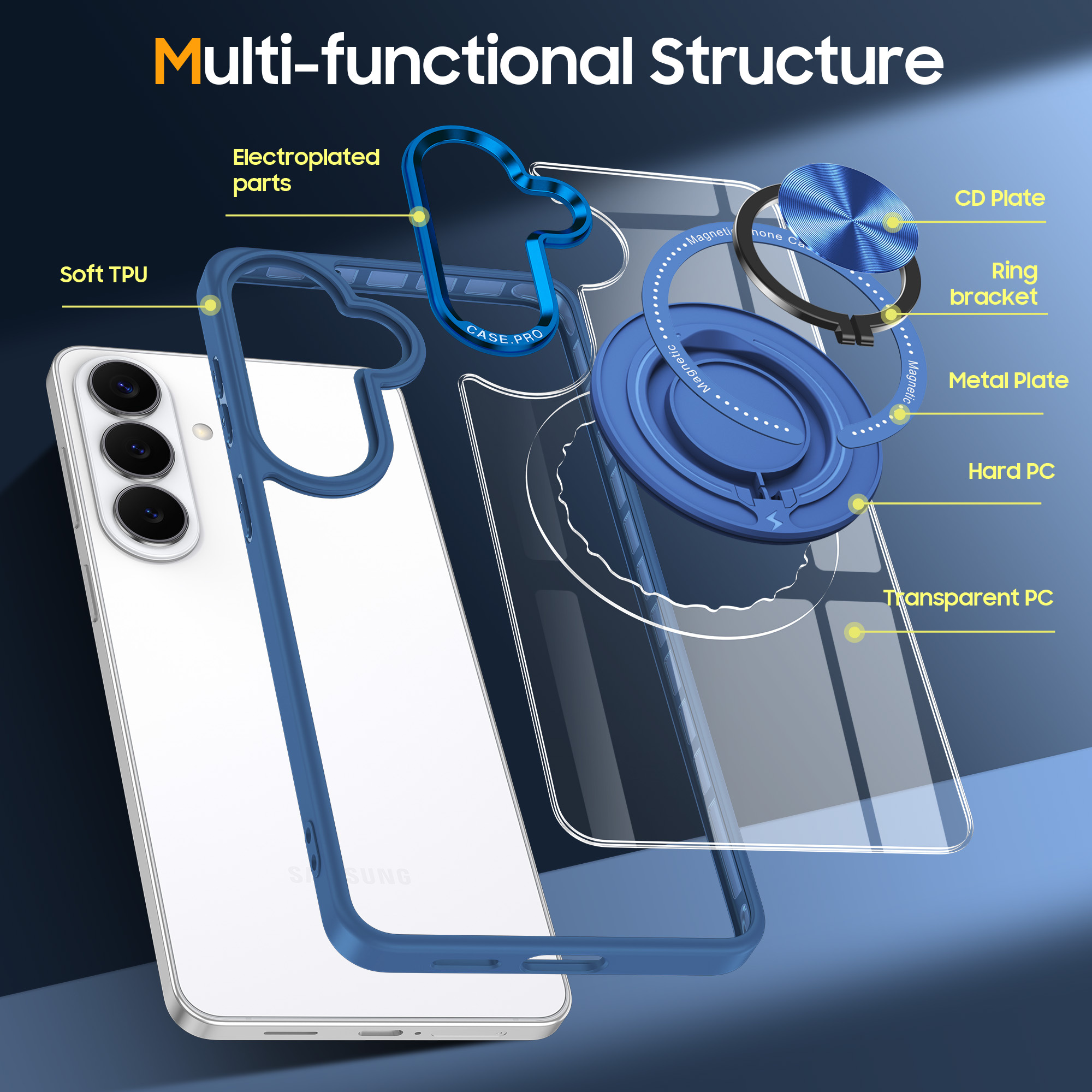 Magsafe Hoesje Geschikt voor Samsung Galaxy S26 hoesje Transparant Blauw - Met kickstand Draaibare Ring Houder