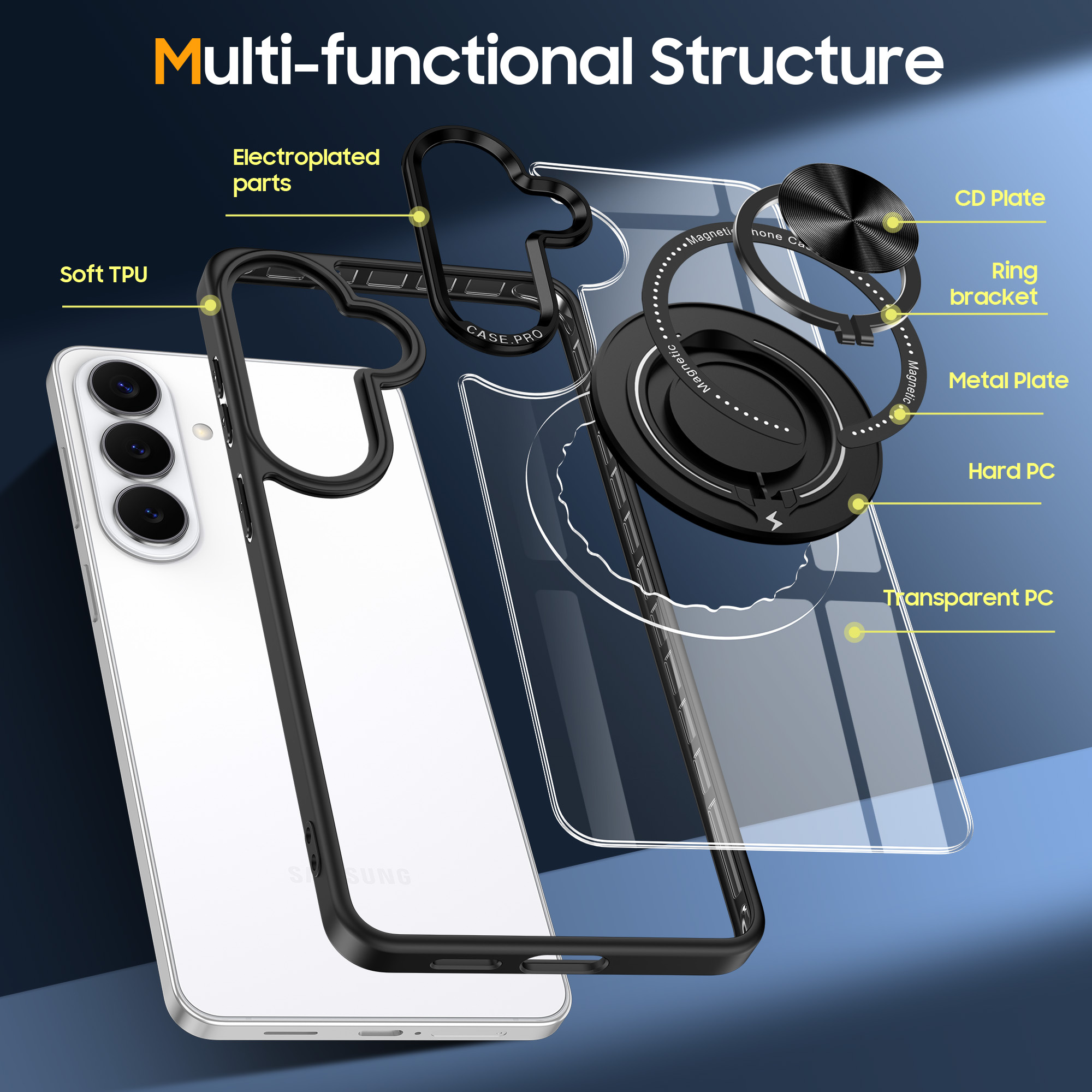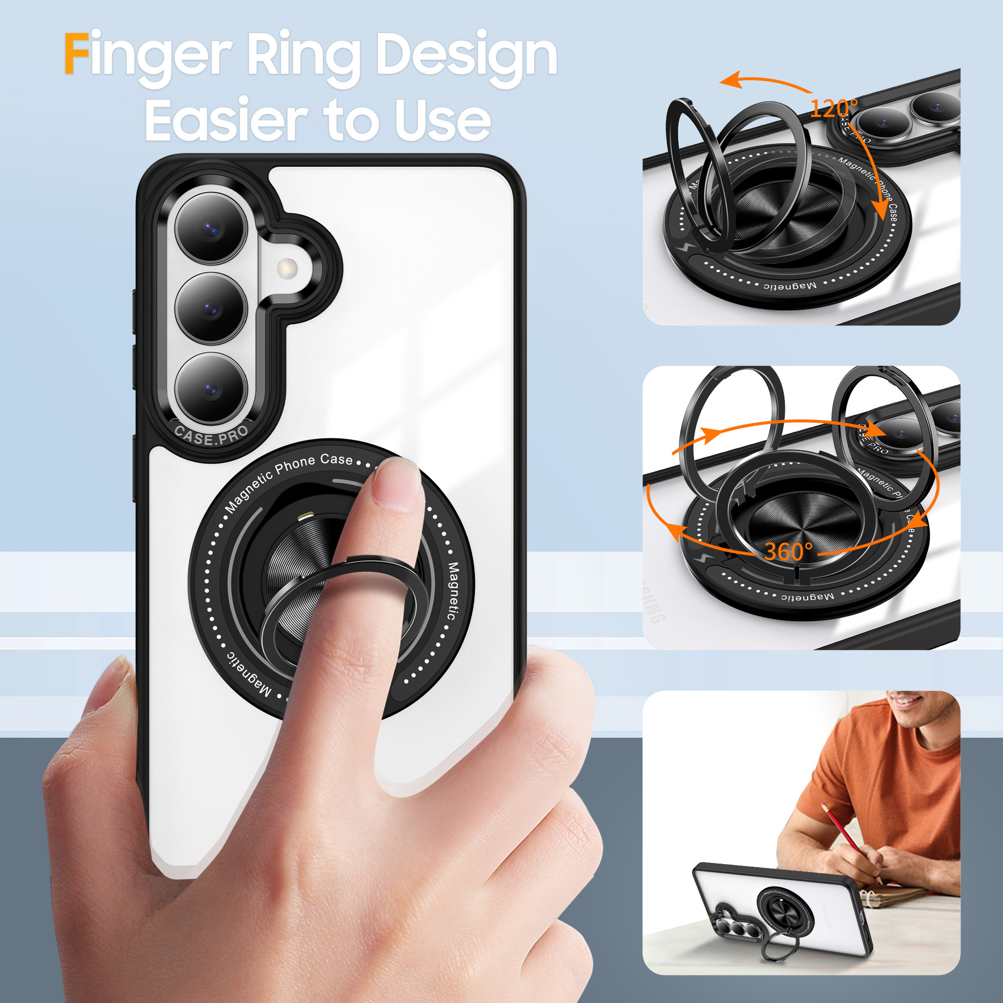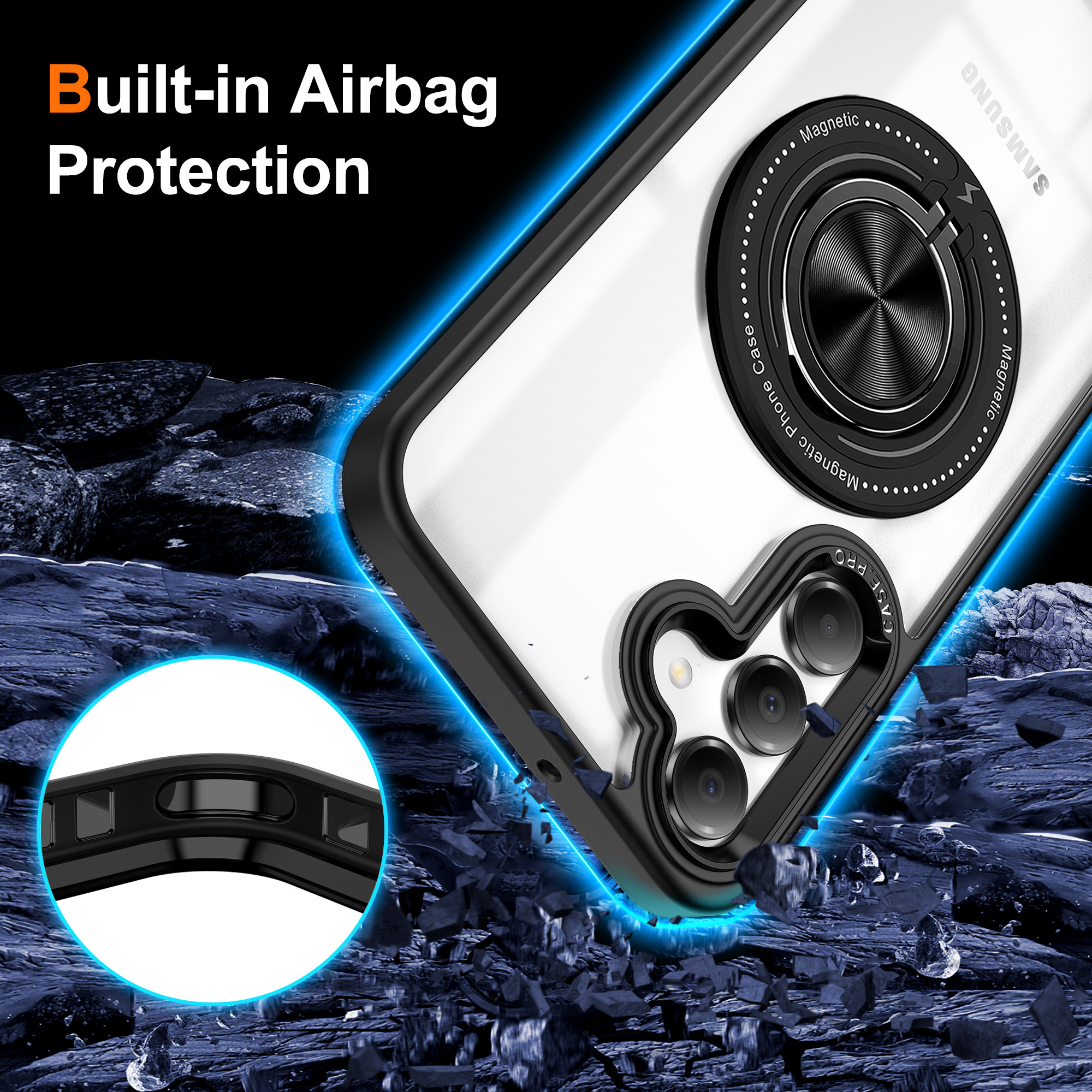 - De ingebouwde ringhouder biedt een stevige grip, waardoor je je telefoon gemakkelijker kunt vasthouden en voorkomt dat deze uit je handen glijdt.