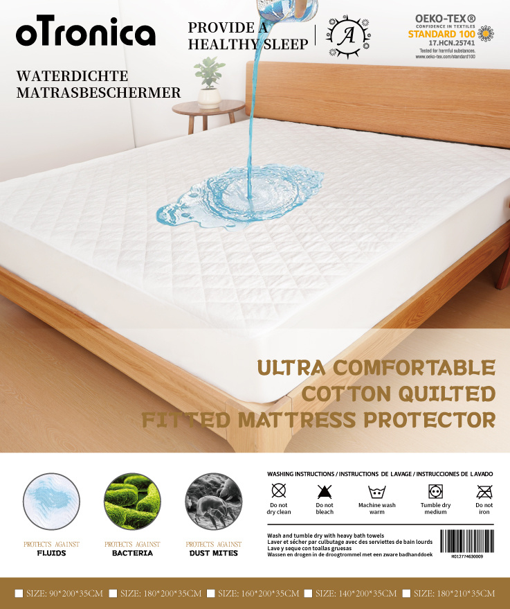 De Otronica matrasbeschermer is machinewasbaar, waardoor het onderhoud eenvoudig en snel is. Je kunt de beschermer gemakkelijk in de wasmachine doen en na het wassen blijft de hoes zijn kwaliteit behouden, zelfs na meerdere wasbeurten. Het duurzame katoen terry materiaal blijft zacht en biedt langdurige bescherming, wat betekent dat je jarenlang kunt genieten van een schone en comfortabele slaapomgeving.