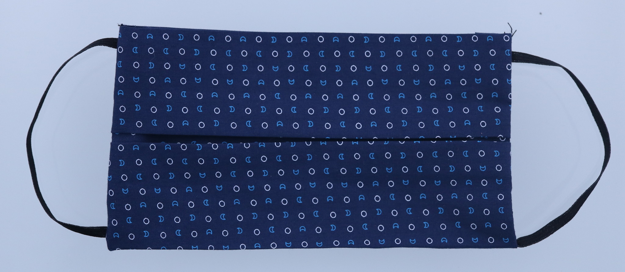 Mondkapje wasbaar van katoen - 2 laags met elastiek Donkerblauw - Patroon