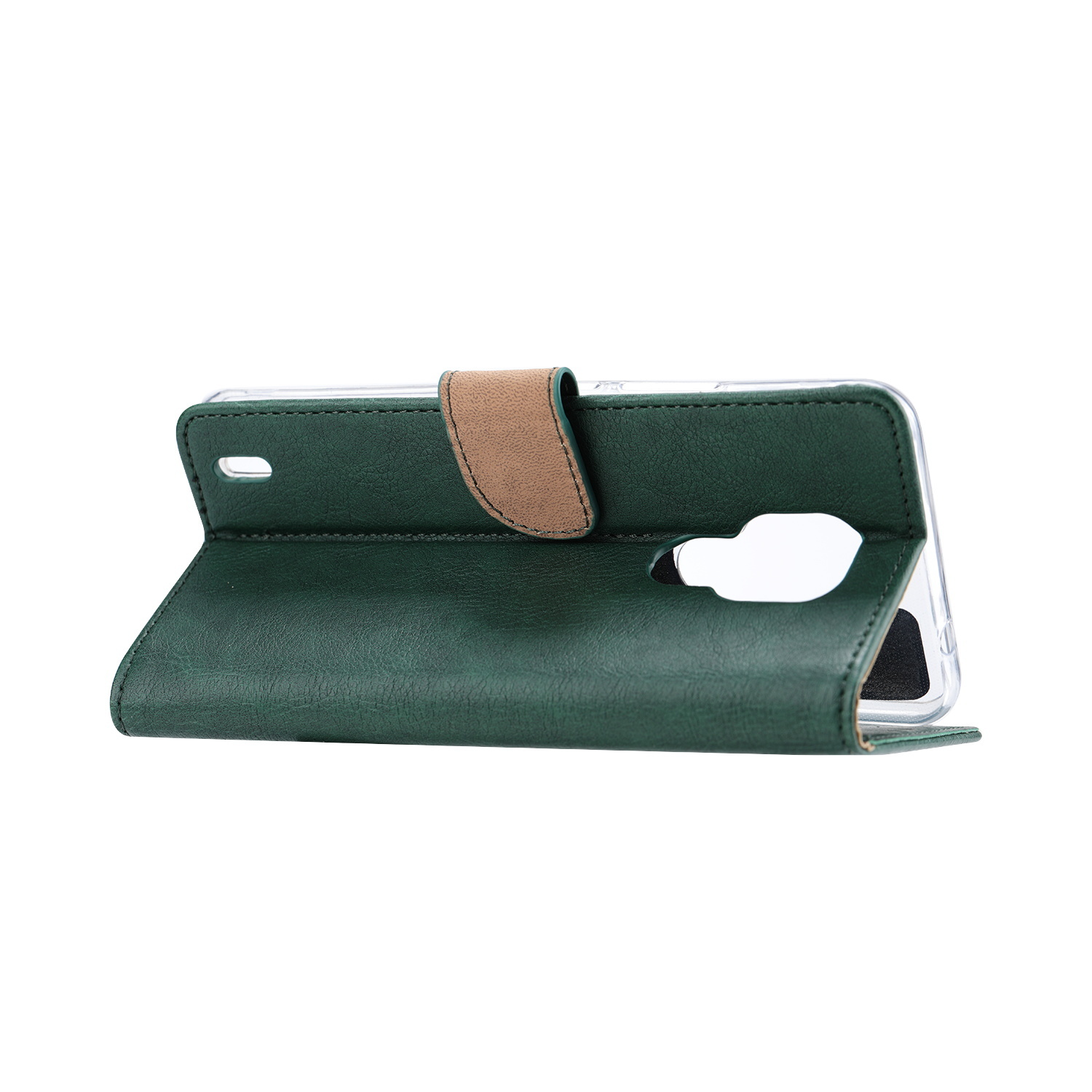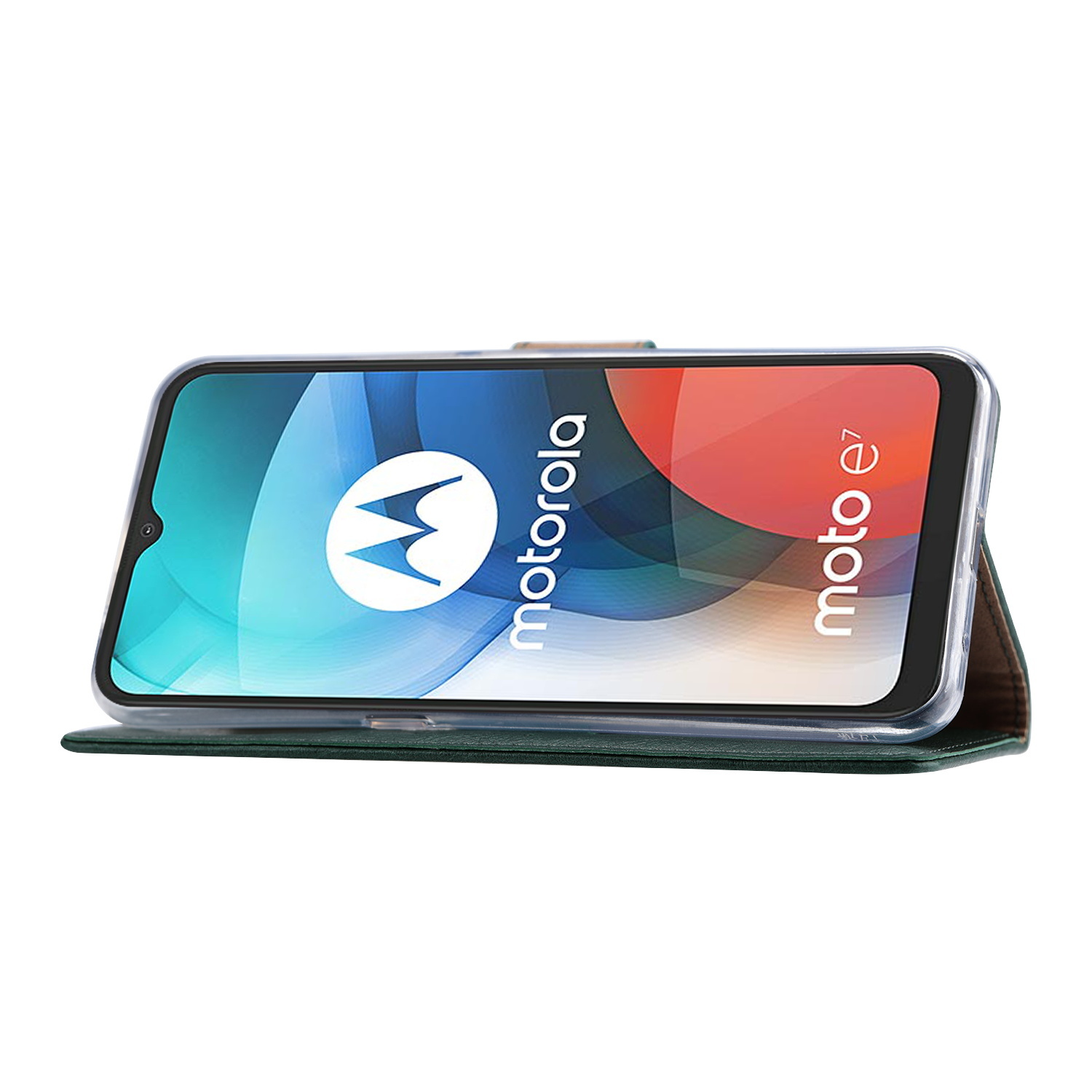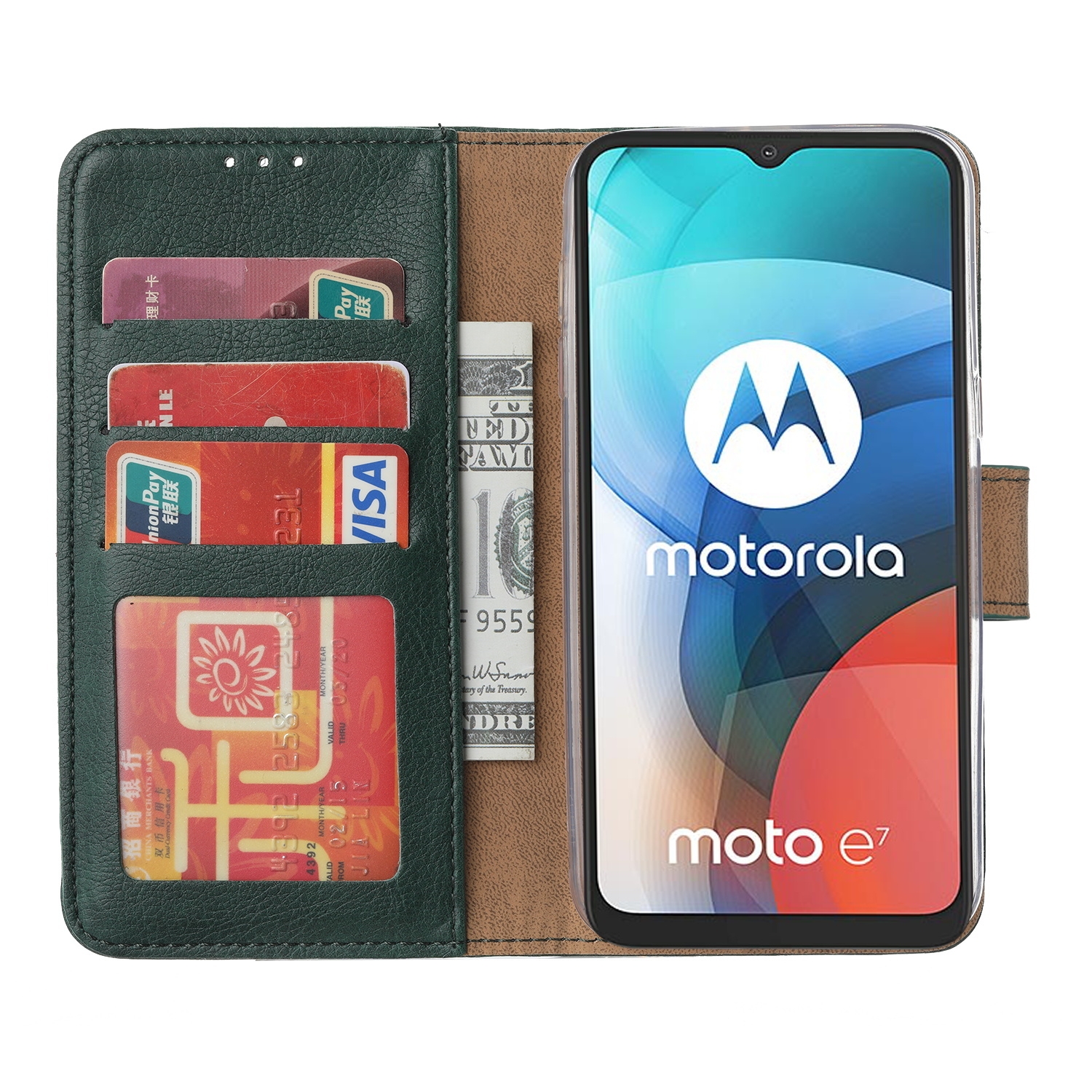 Geschikt voor Moto E7 hoesje - Geschikt voor Moto E7 wallet case portemonnee - Geschikt voor Moto E7 bookcase cover Groen met - Geschikt voor Moto E7 screenprotector / 2 pack tempered glass
