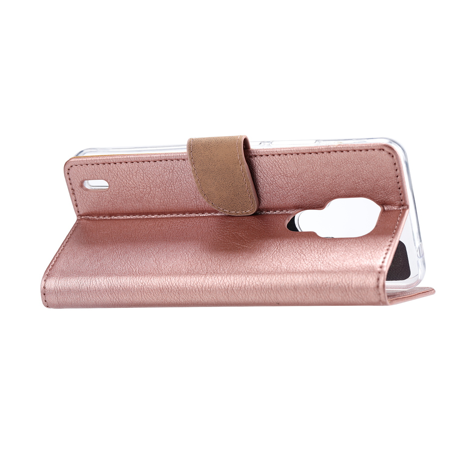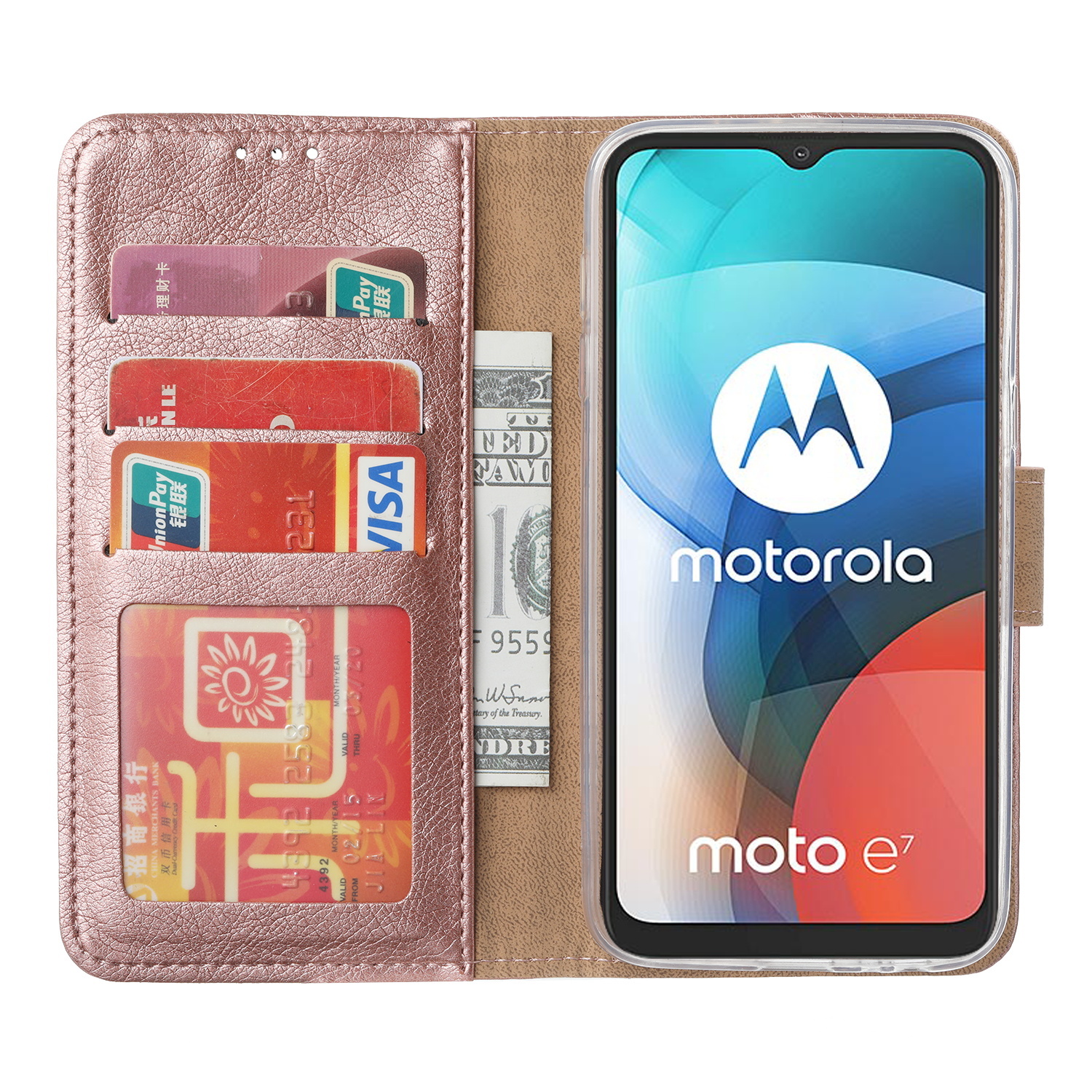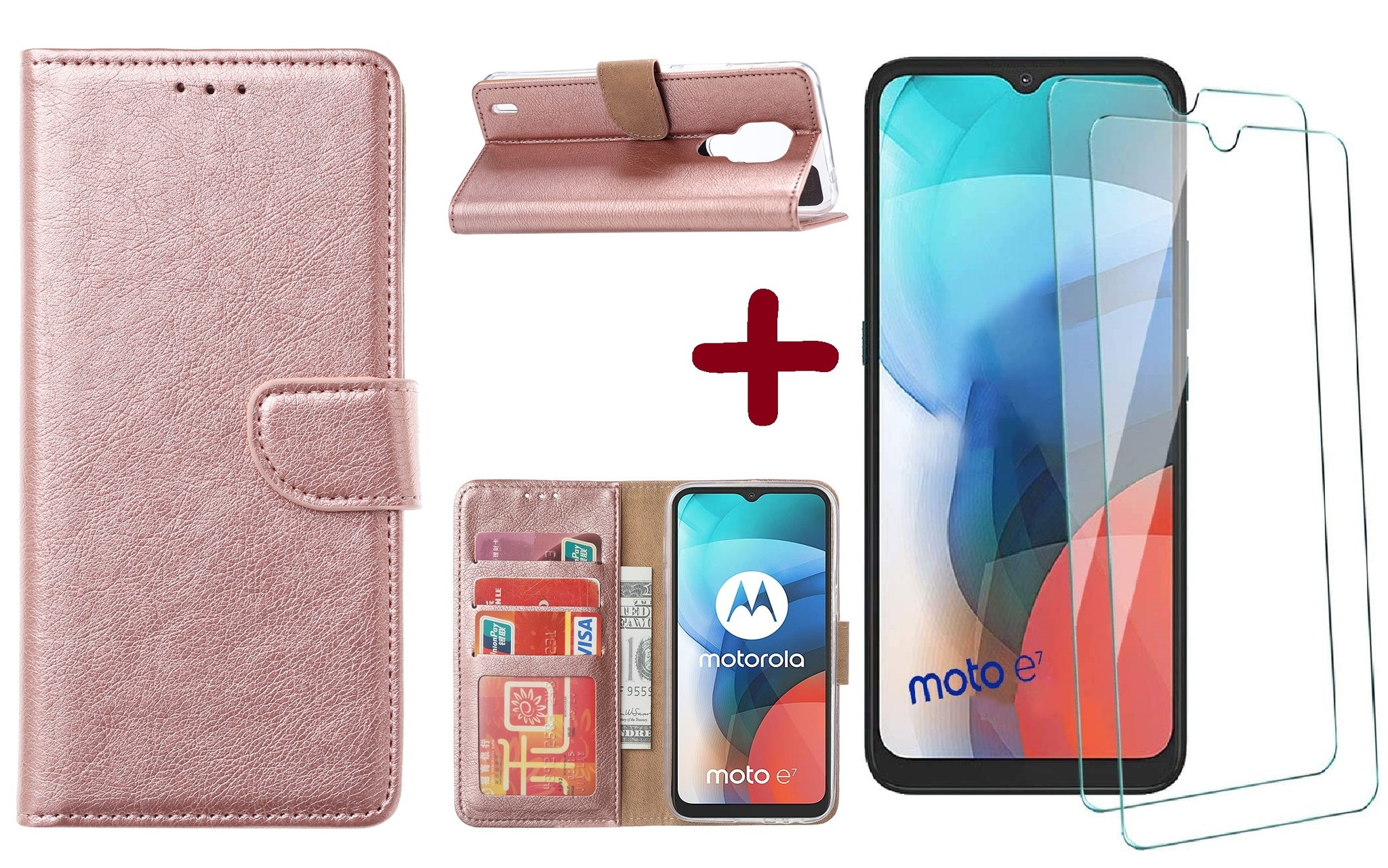 Geschikt voor Moto E7 hoesje - Geschikt voor Moto E7 wallet case portemonnee - Geschikt voor Moto E7 bookcase cover Rose Goud met - Geschikt voor Moto E7 screenprotector / 2 pack tempered glass