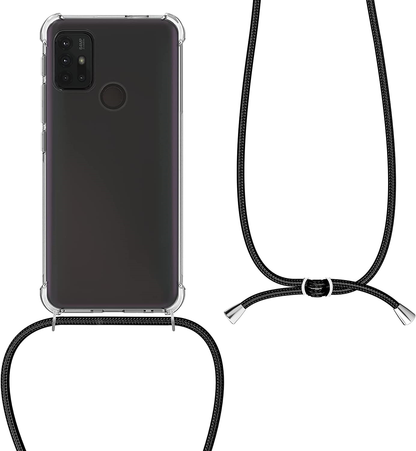 Moto G10 Hoesje transparant silicone met Koord - Moto G20 hoesje met koord - hoesje Moto G30 hoesje met koord draagkoord TPU backcover - Zwart