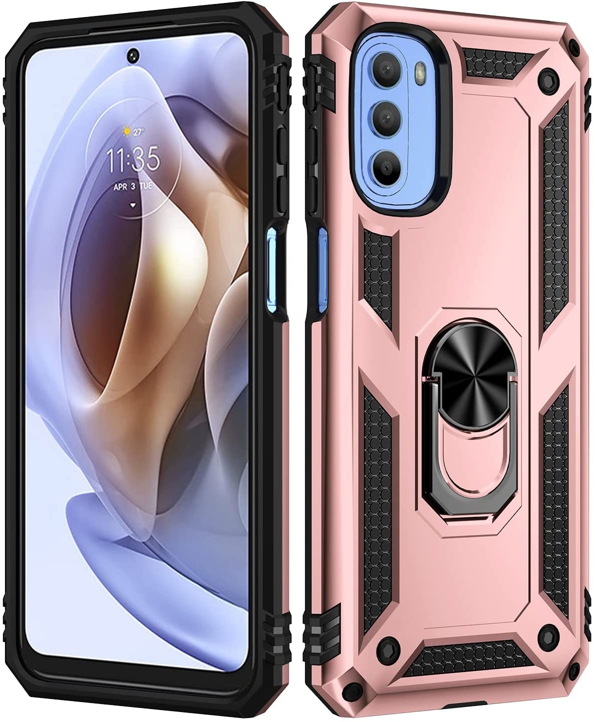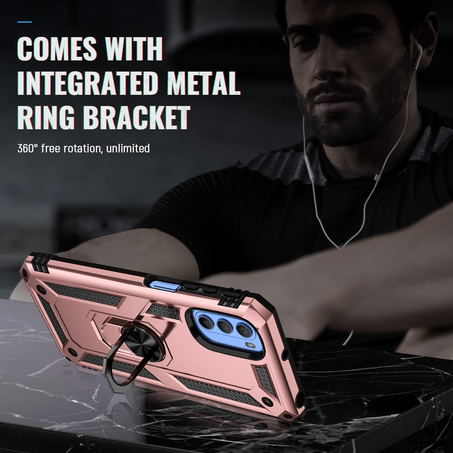 Hoesje geschikt voor Moto G41 / Hoesje geschikt voor Moto G31 hoesje Hybrid Armor Anti-Shock hoesje Rose Goud - Hoesje geschikt voor Moto G31 / G41 Hoesje kickstand Ring houder cover TPU backcover hoesje