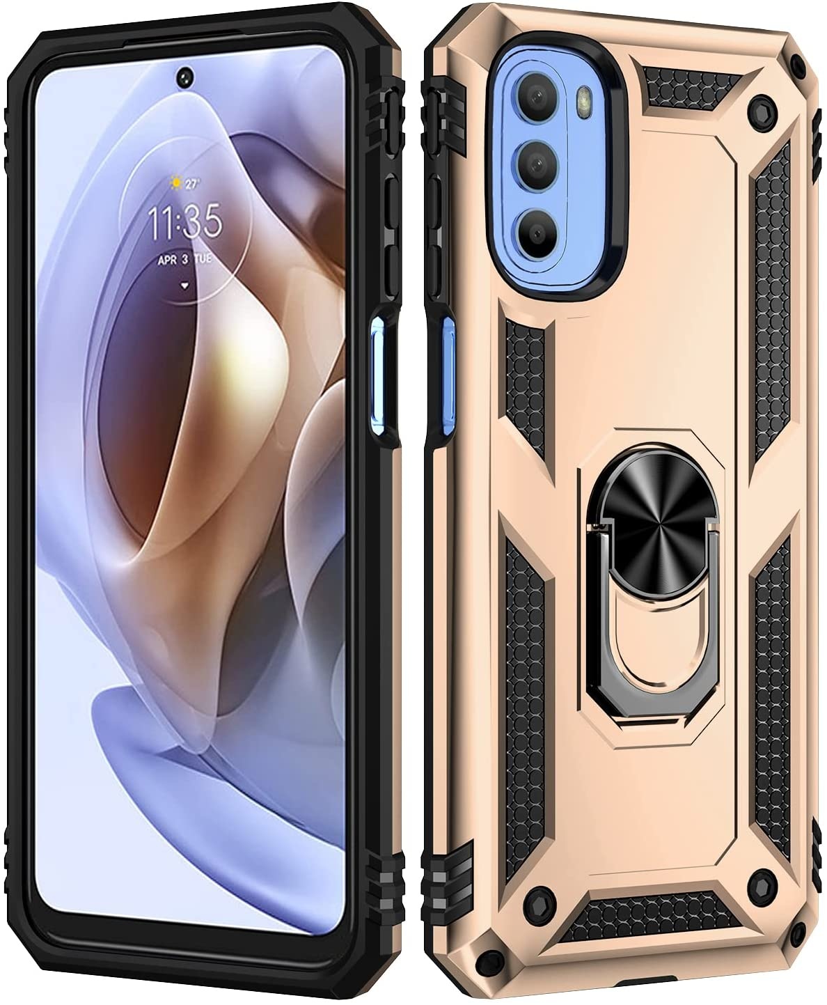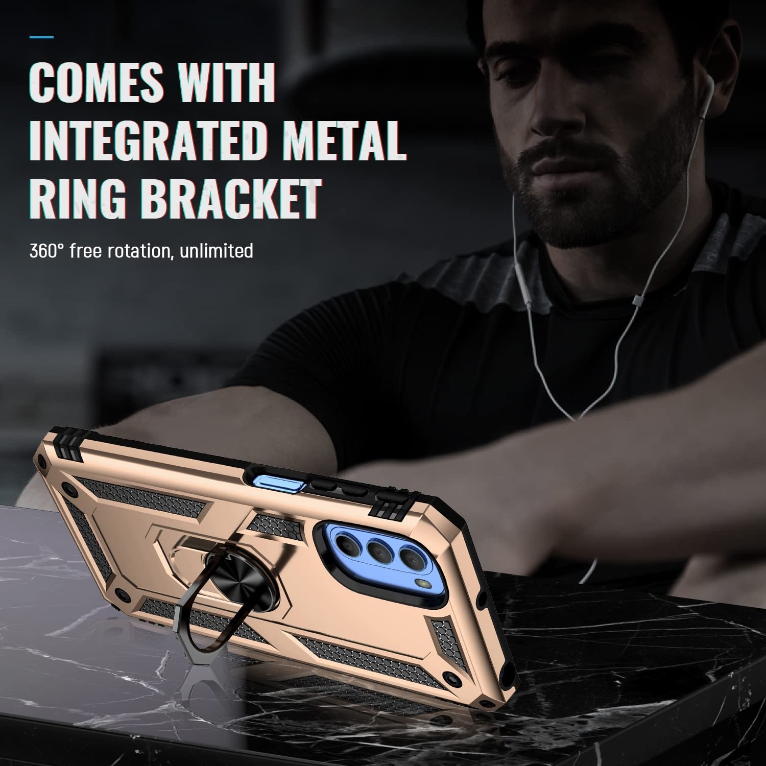Hoesje geschikt voor Moto G41 / Hoesje geschikt voor Moto G31 hoesje Hybrid Armor Anti-Shock hoesje Goud - Hoesje geschikt voor Moto G31 / G41 Hoesje kickstand Ring houder cover TPU backcover hoesje