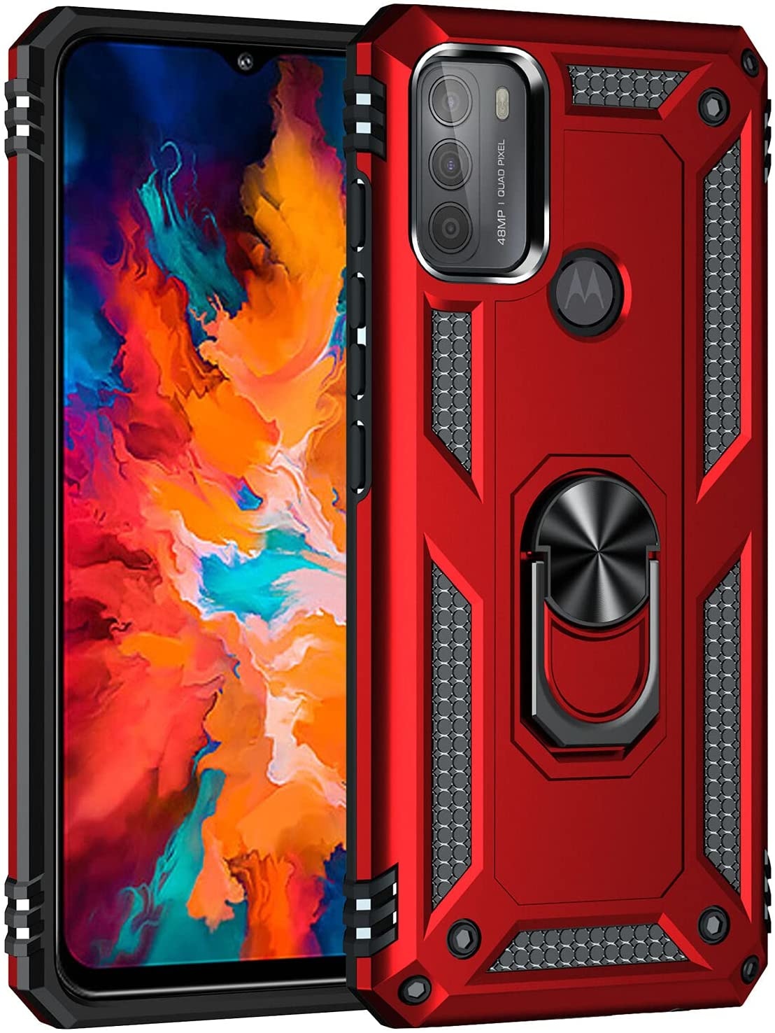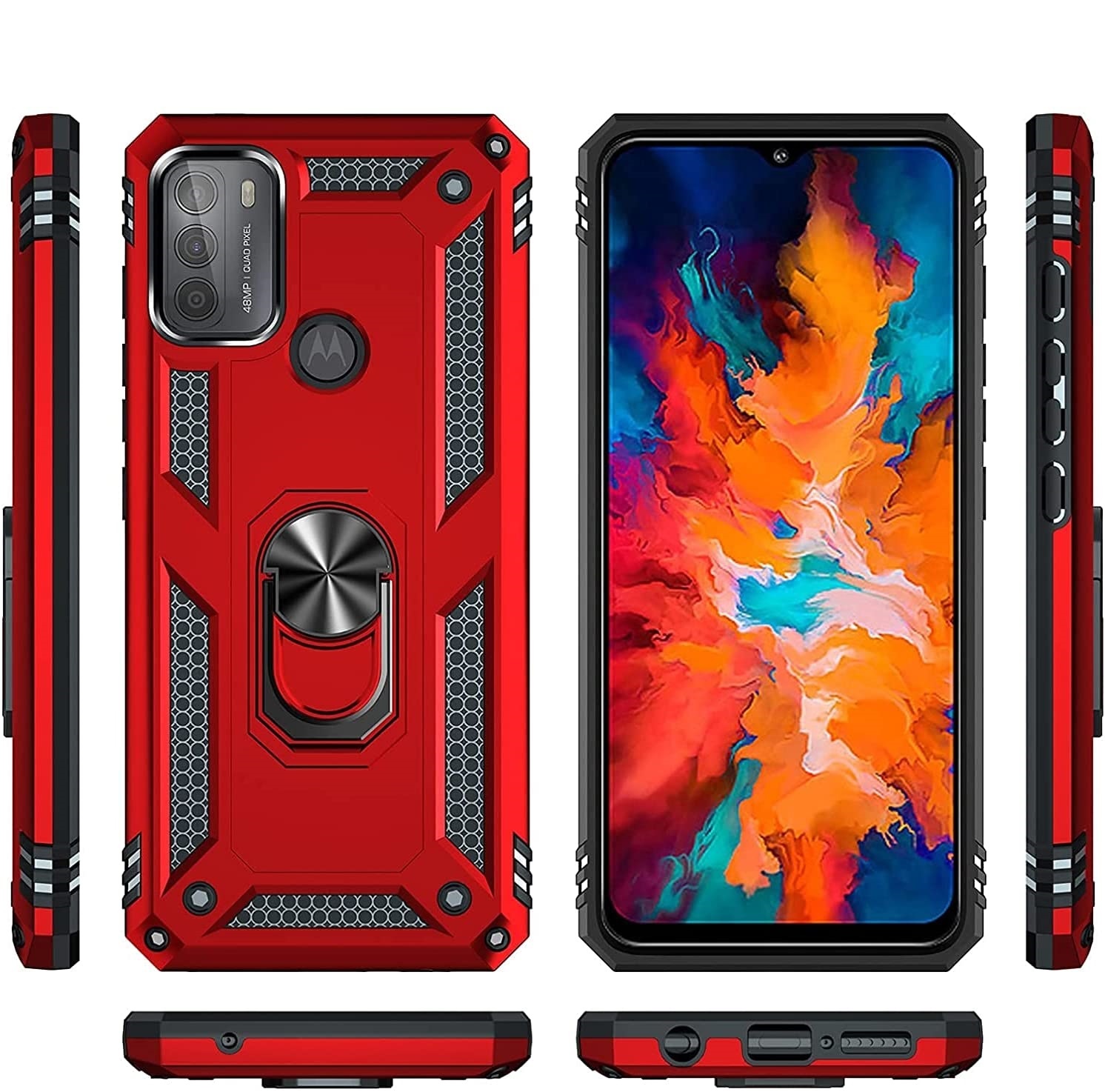 Hoesje geschikt voor Moto G71 hoes Hybrid Armor Anti-Shock hoesje Rood - Hoesje geschikt voor Moto G71 Hoesje kickstand Ring houder cover TPU backcover hoesje