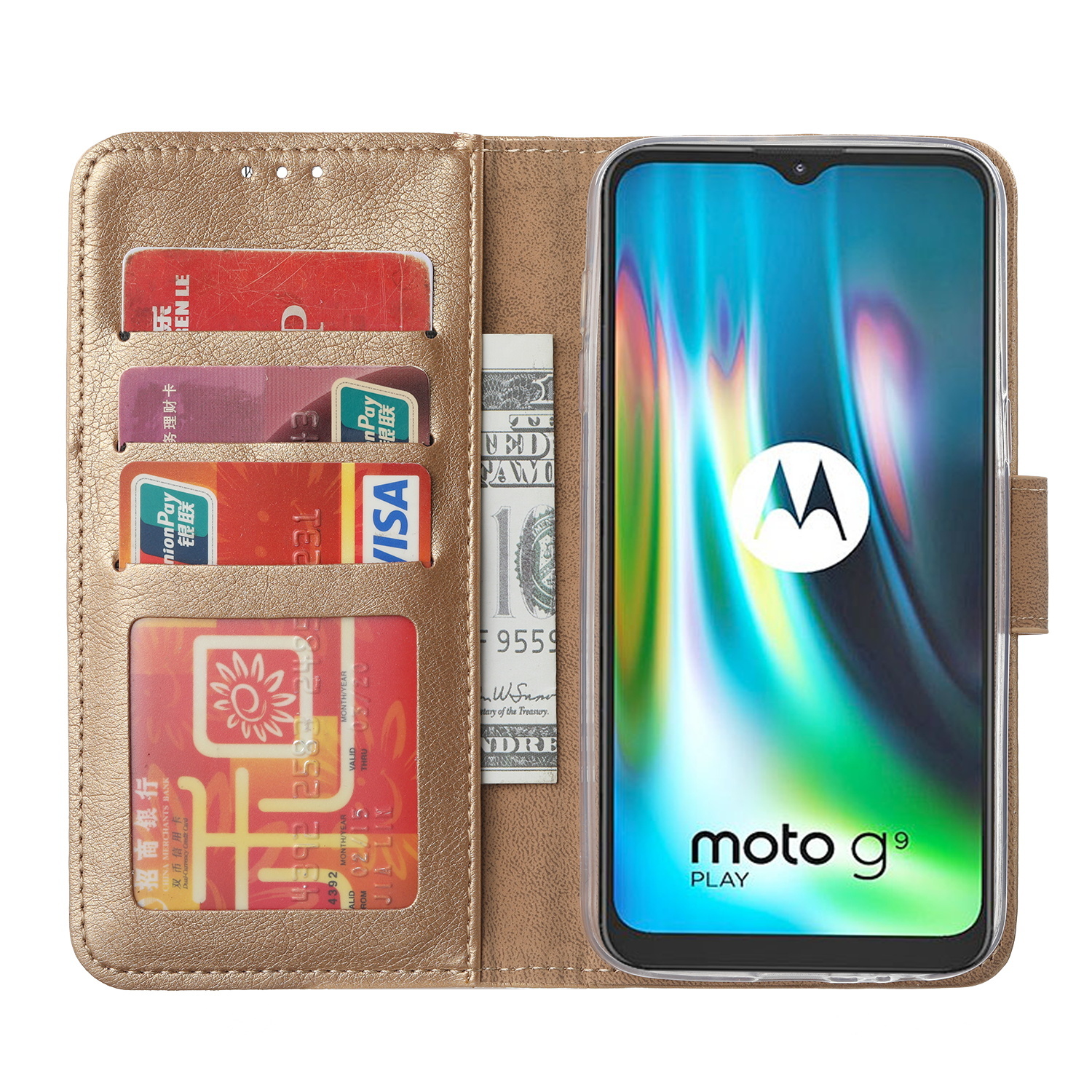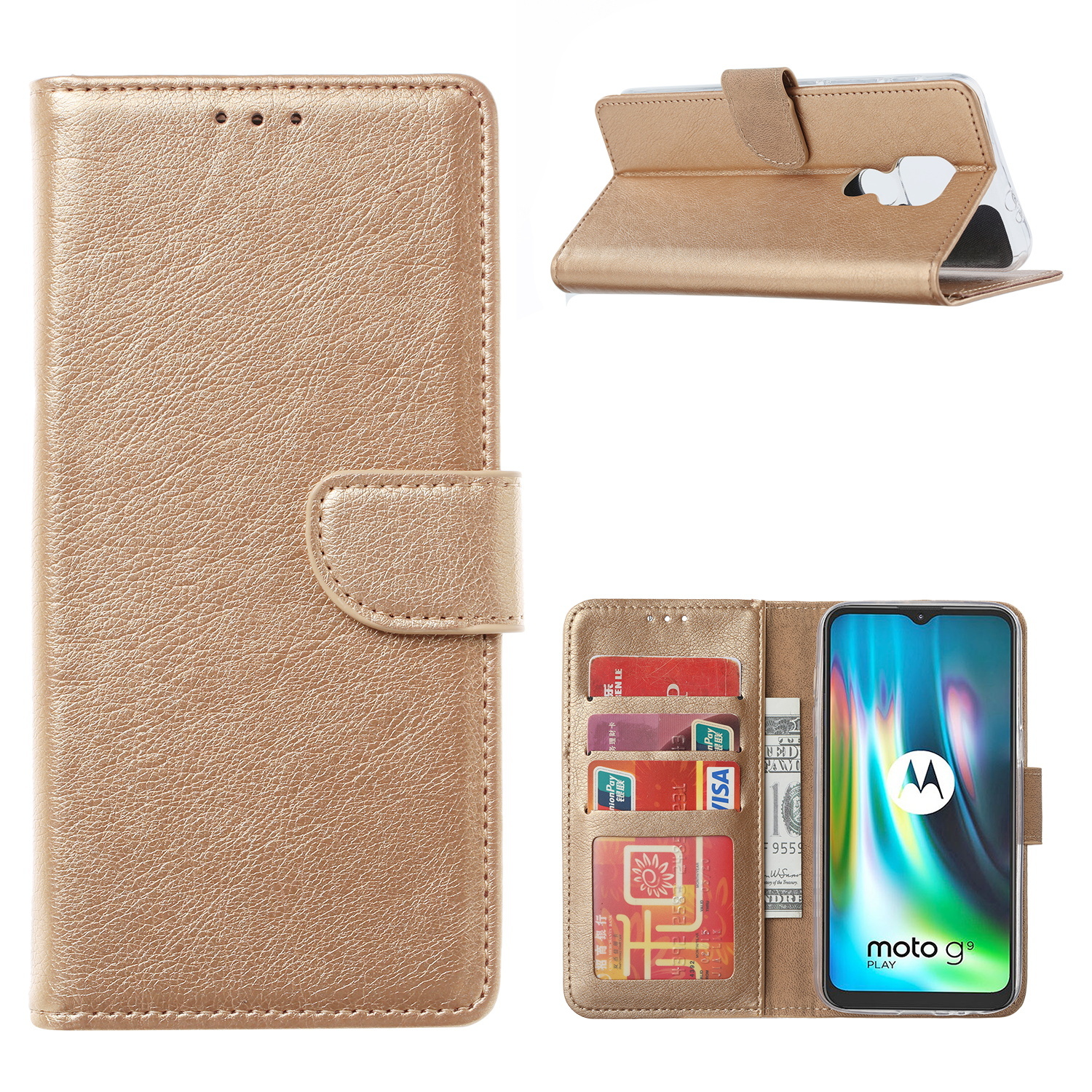 Hoesje geschikt voor Moto G9 Play Hoesje, Hoesje geschikt voor Moto G9 Hoesje, Hoesje geschikt voor Moto E7 Plus Hoesje met Pasjeshouder - Goud