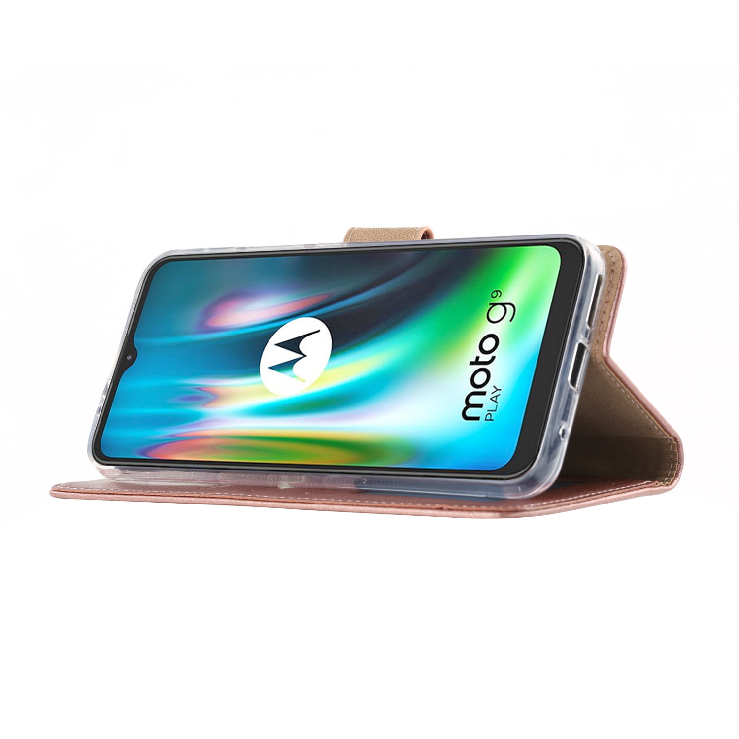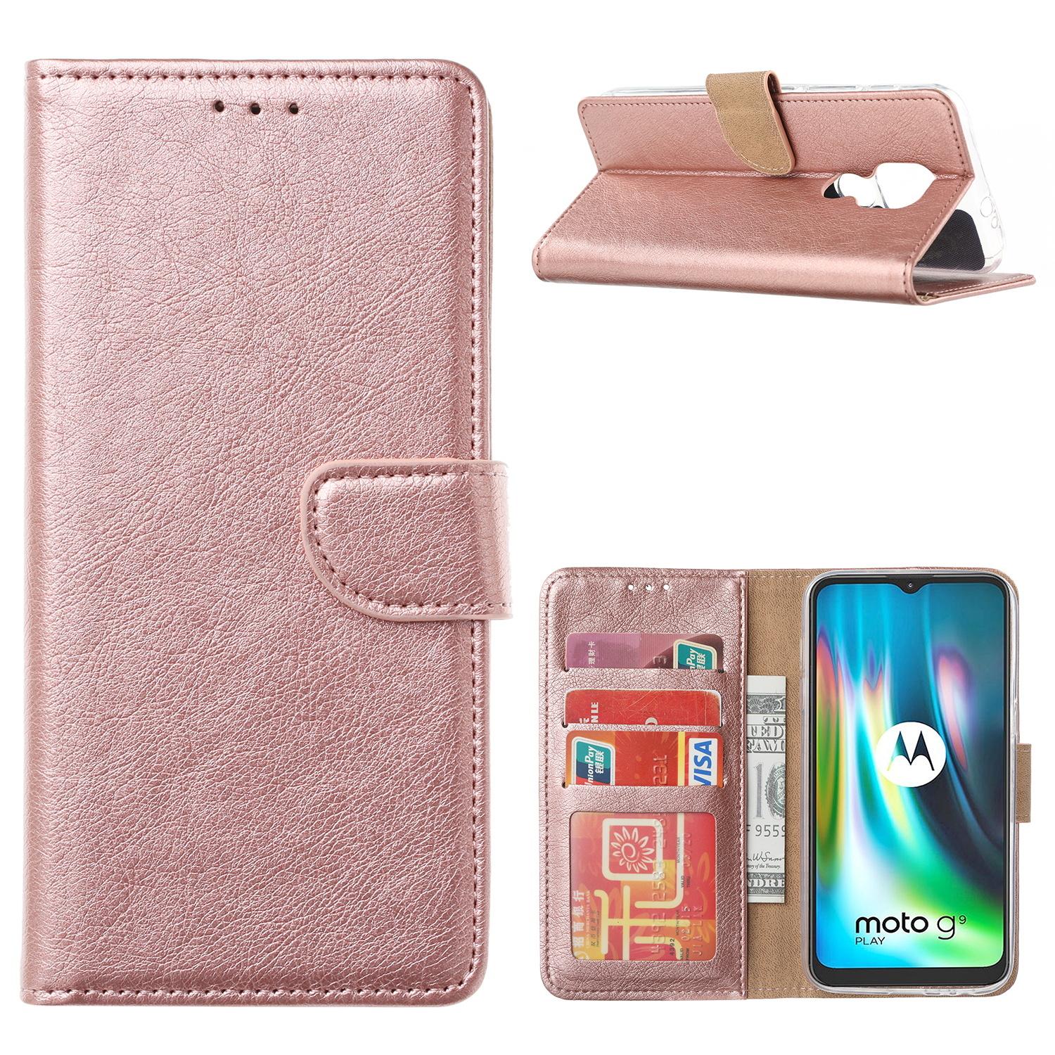 Hoesje geschikt voor Moto G9 Play Hoesje, Hoesje geschikt voor Moto G9 Hoesje, Hoesje geschikt voor Moto E7 Plus Hoesje met Pasjeshouder - Rose Goud
