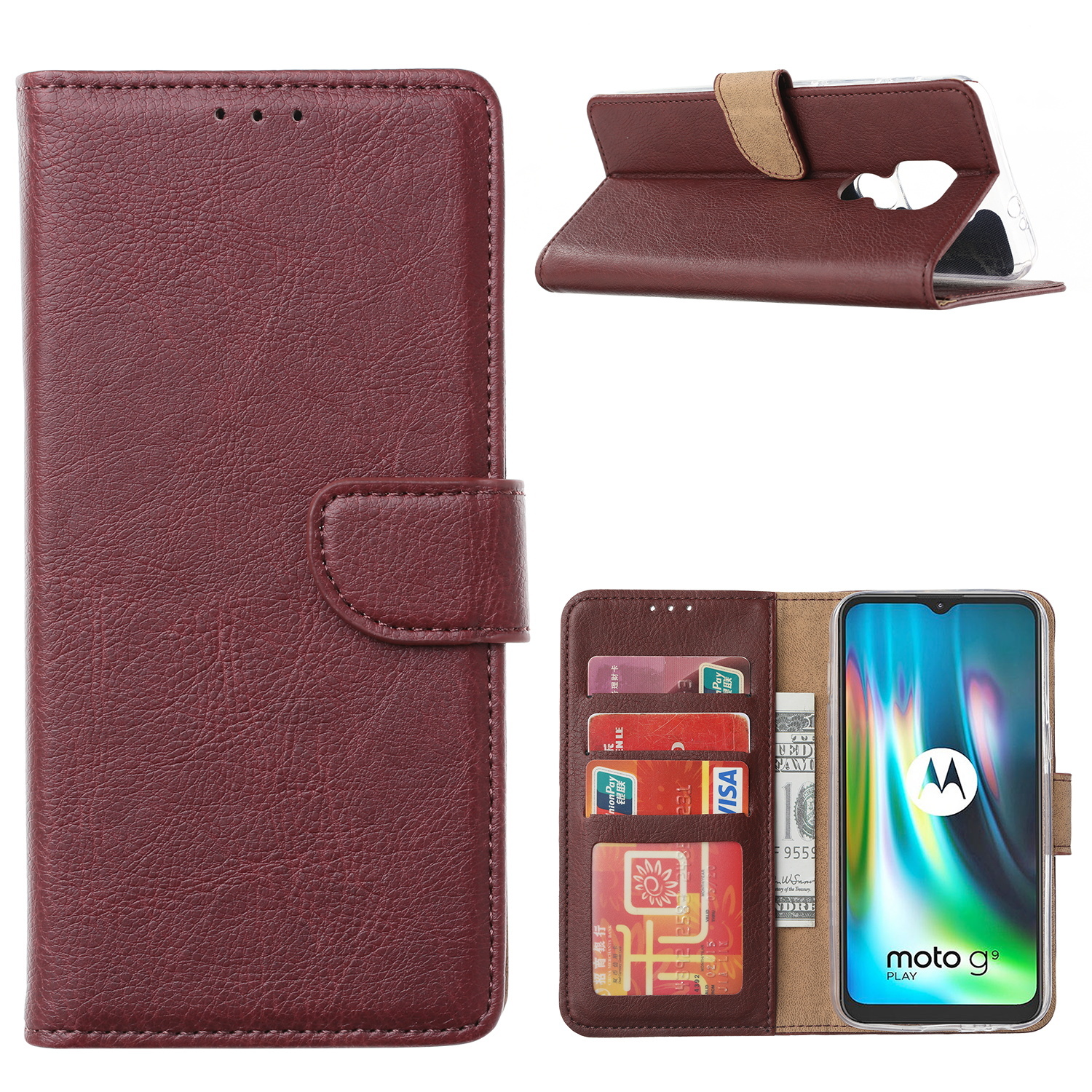 Hoesje geschikt voor Moto G9 Play Hoesje, Hoesje geschikt voor Moto G9 Hoesje, Hoesje geschikt voor Moto E7 Plus Hoesje met Pasjeshouder - Bordeaux