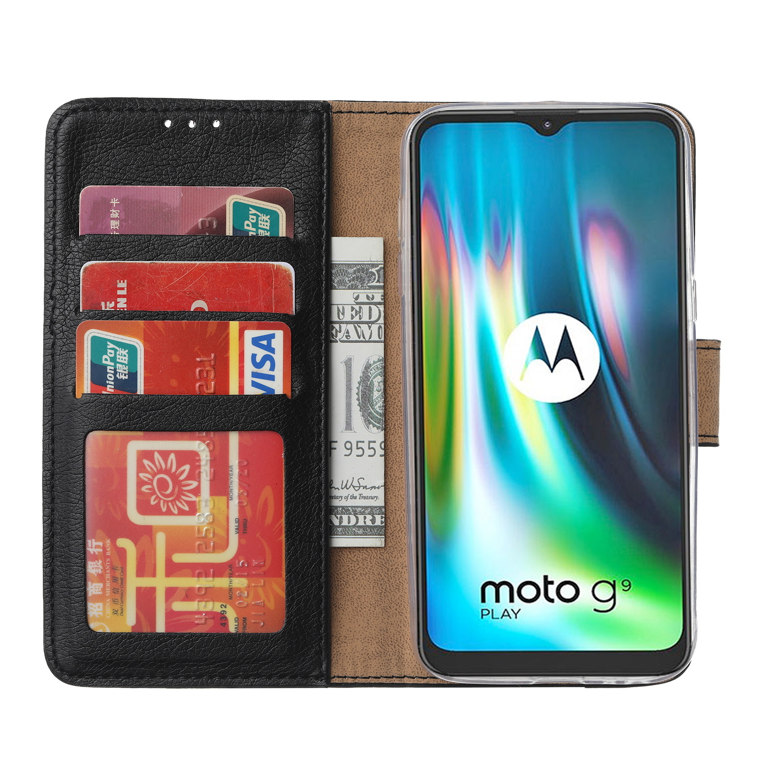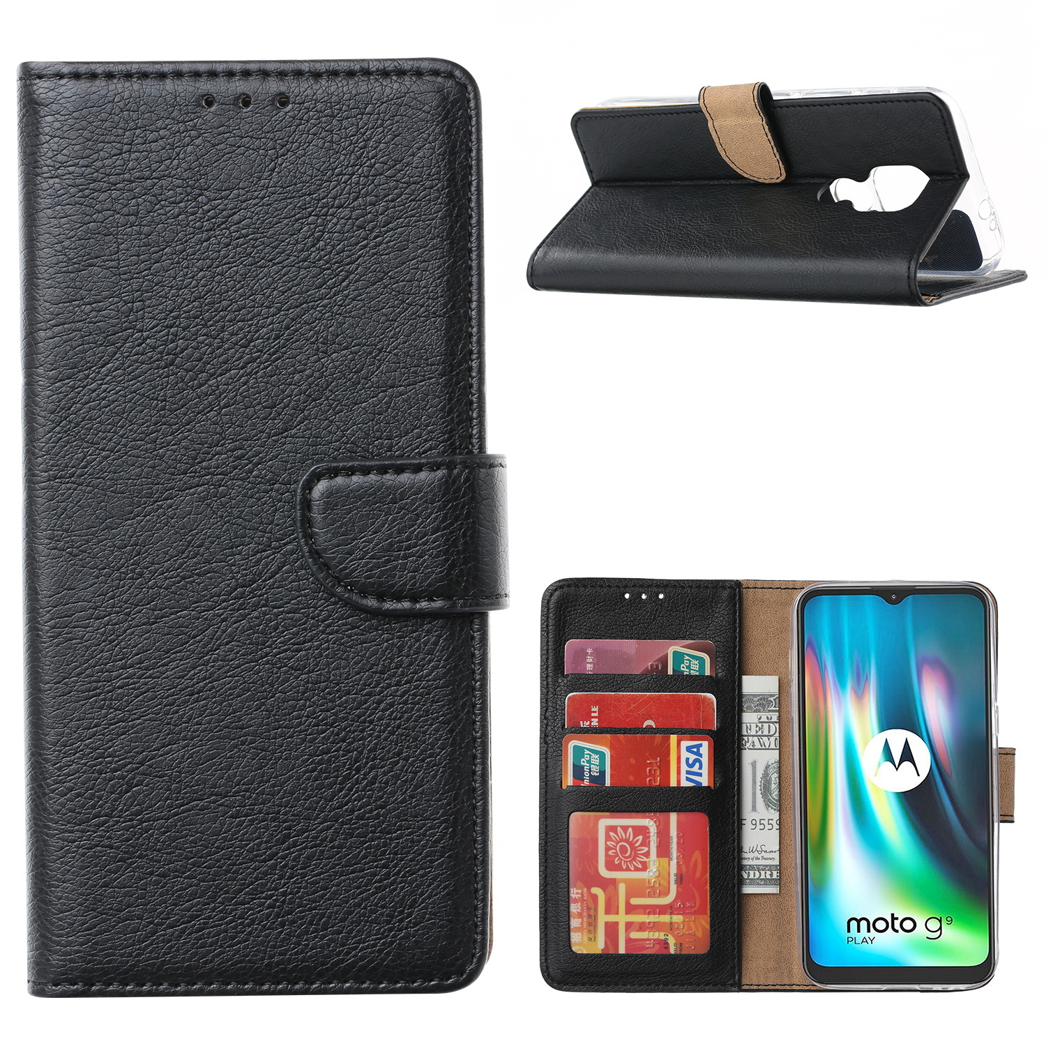 Hoesje geschikt voor Moto G9 Play Hoesje, Hoesje geschikt voor Moto G9 Hoesje, Hoesje geschikt voor Moto E7 Plus Hoesje met Pasjeshouder - Zwart