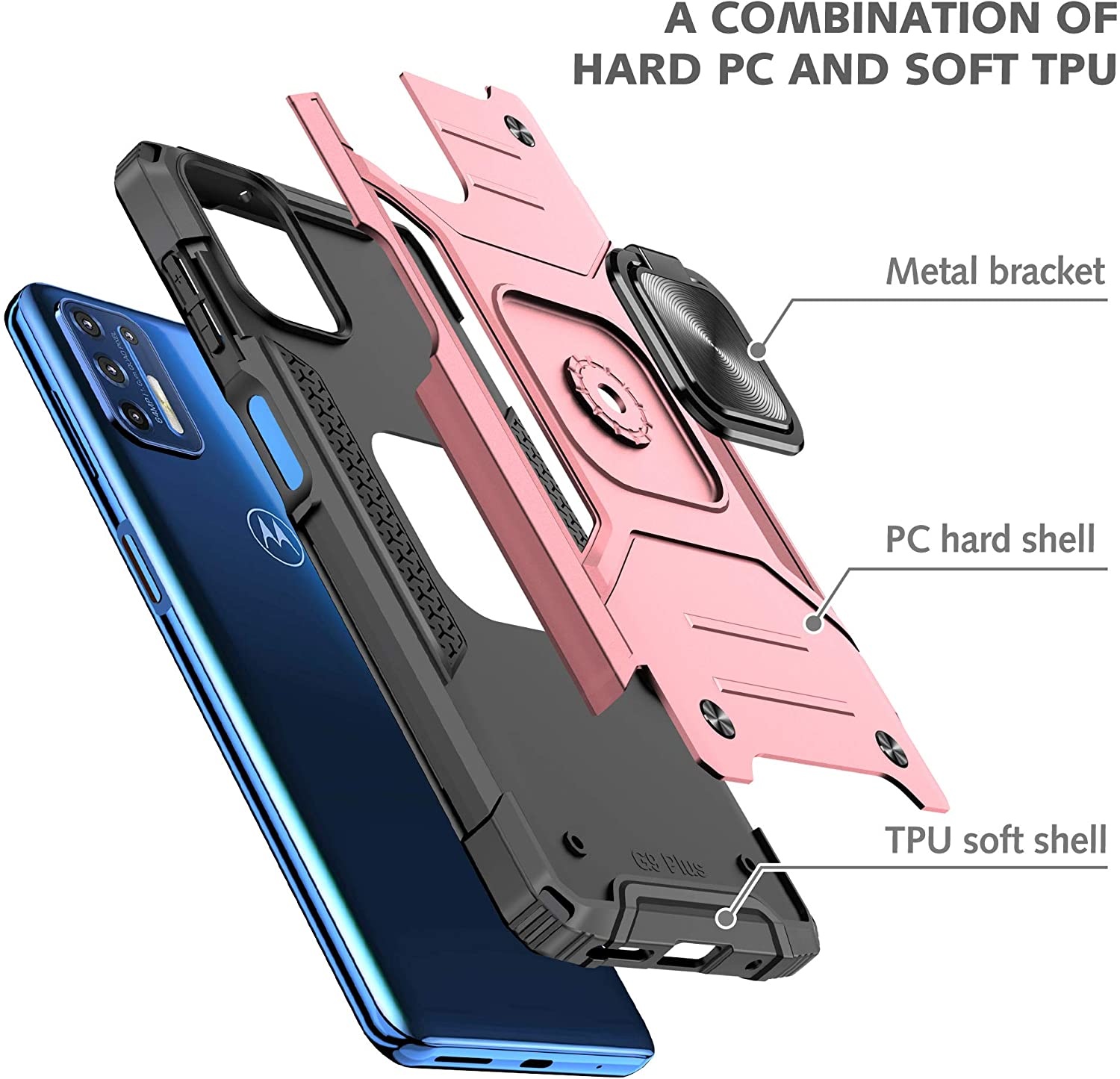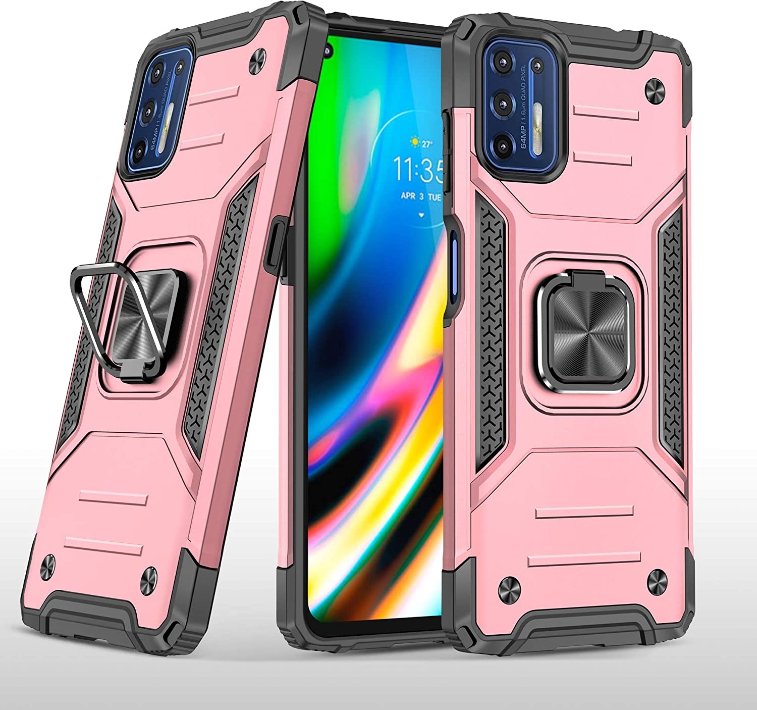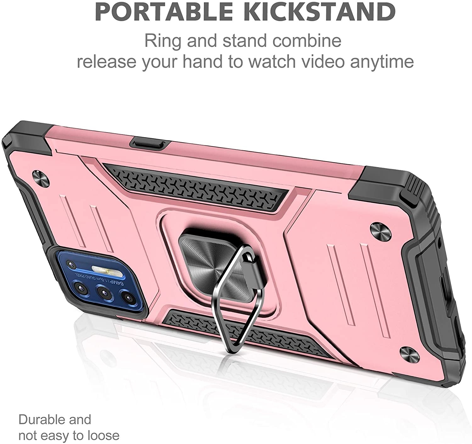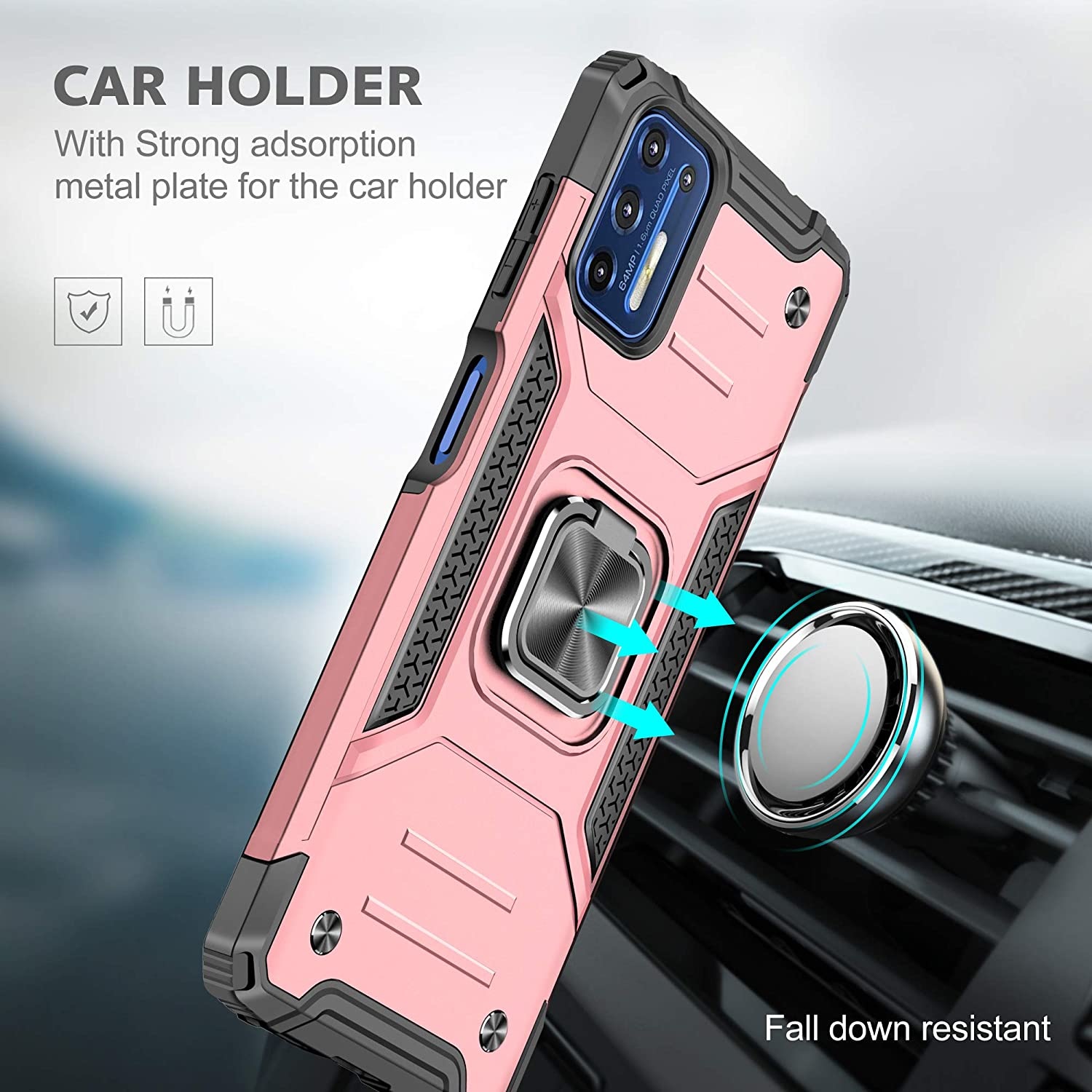 Hoesje geschikt voor Motorola G9 Plus Hoesje Heavy Duty Armor Hoesje Rose Goud - Hoesje geschikt voor Motorola G9 Plus Case Kickstand Ring cover met Magnetisch Auto Mount