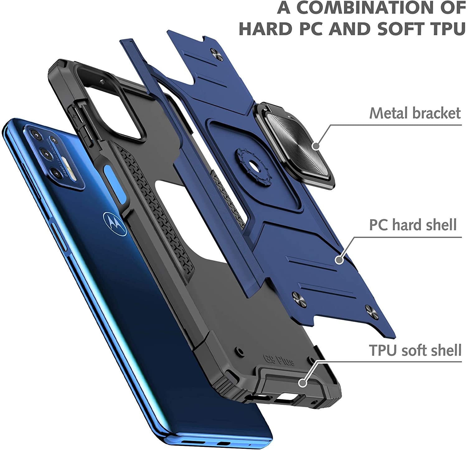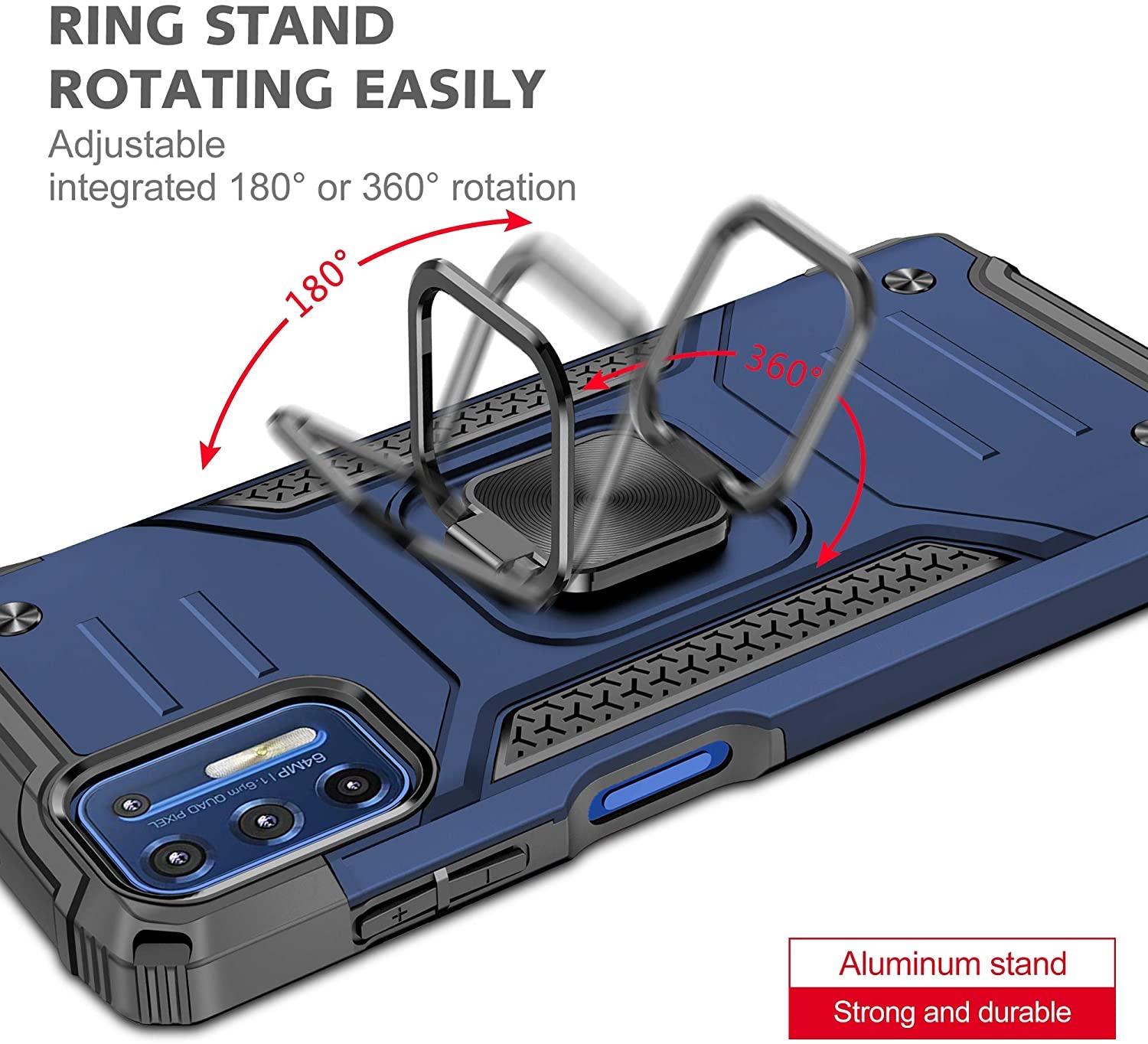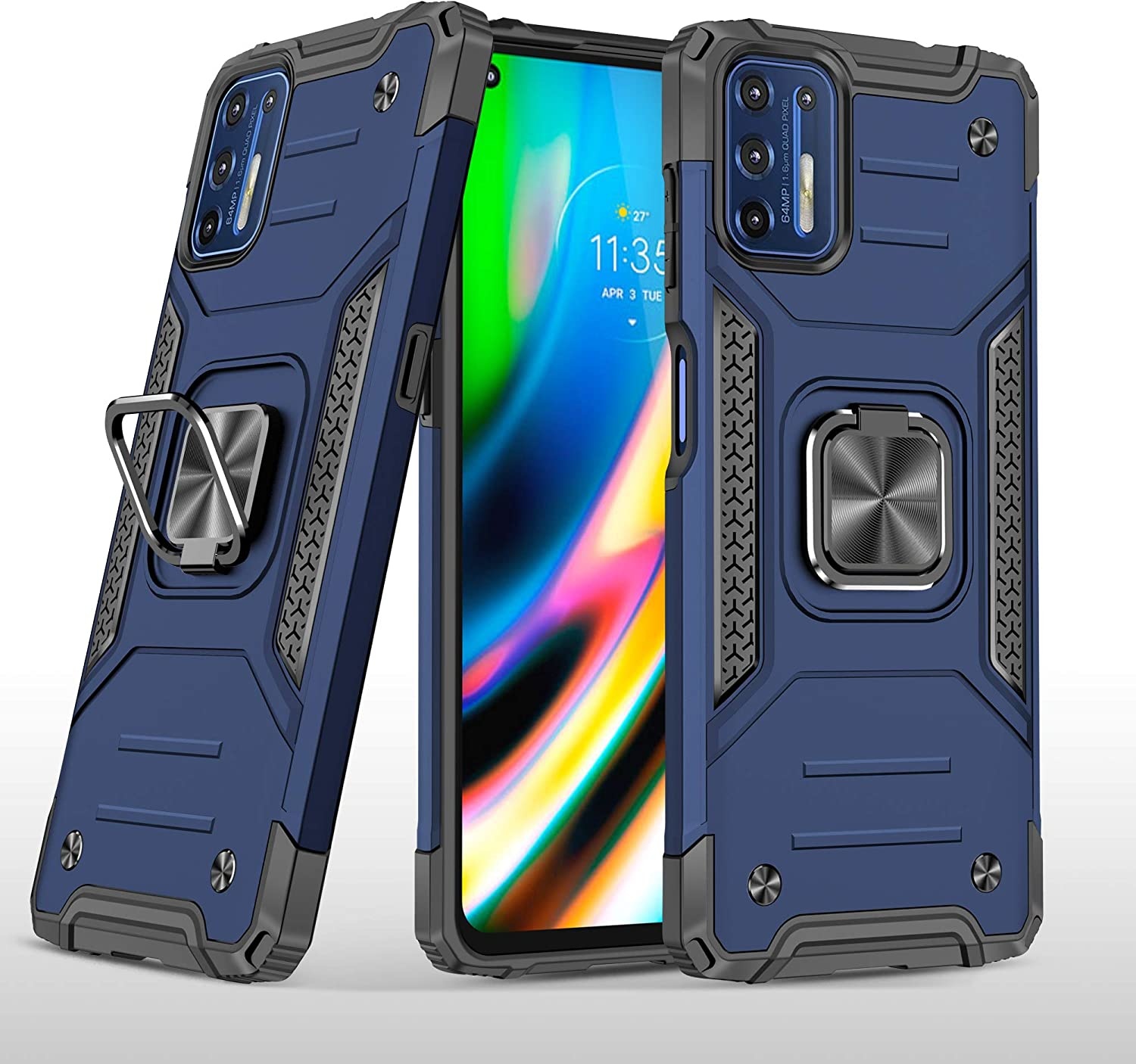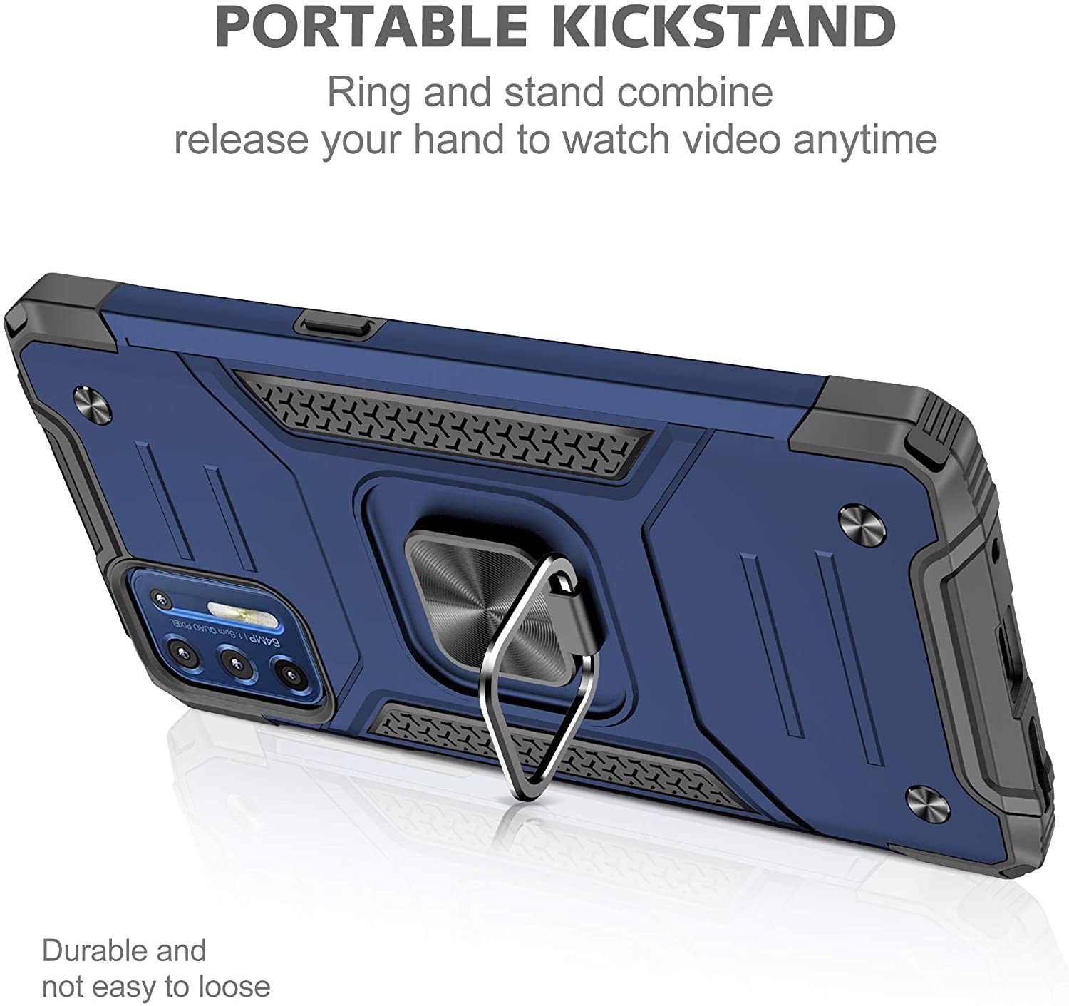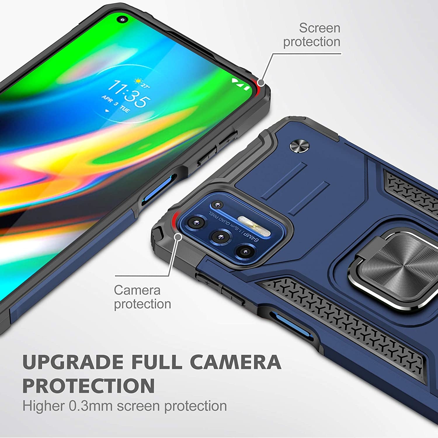 Hoesje geschikt voor Motorola G9 Plus Hoesje Heavy Duty Armor Hoesje Blauw - Hoesje geschikt voor Motorola G9 Plus Case Kickstand Ring cover met Magnetisch Auto Mount