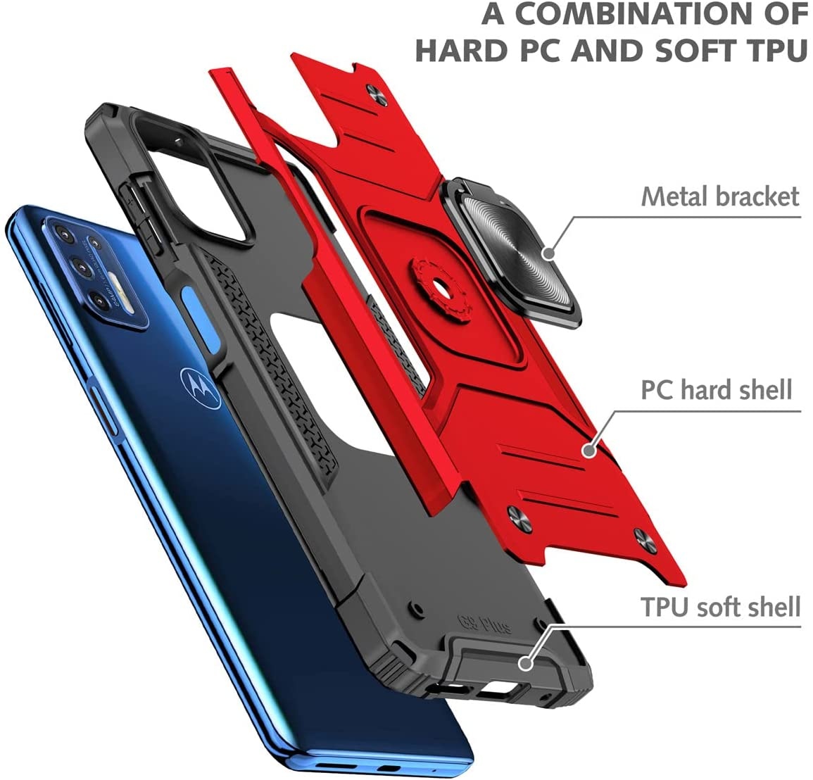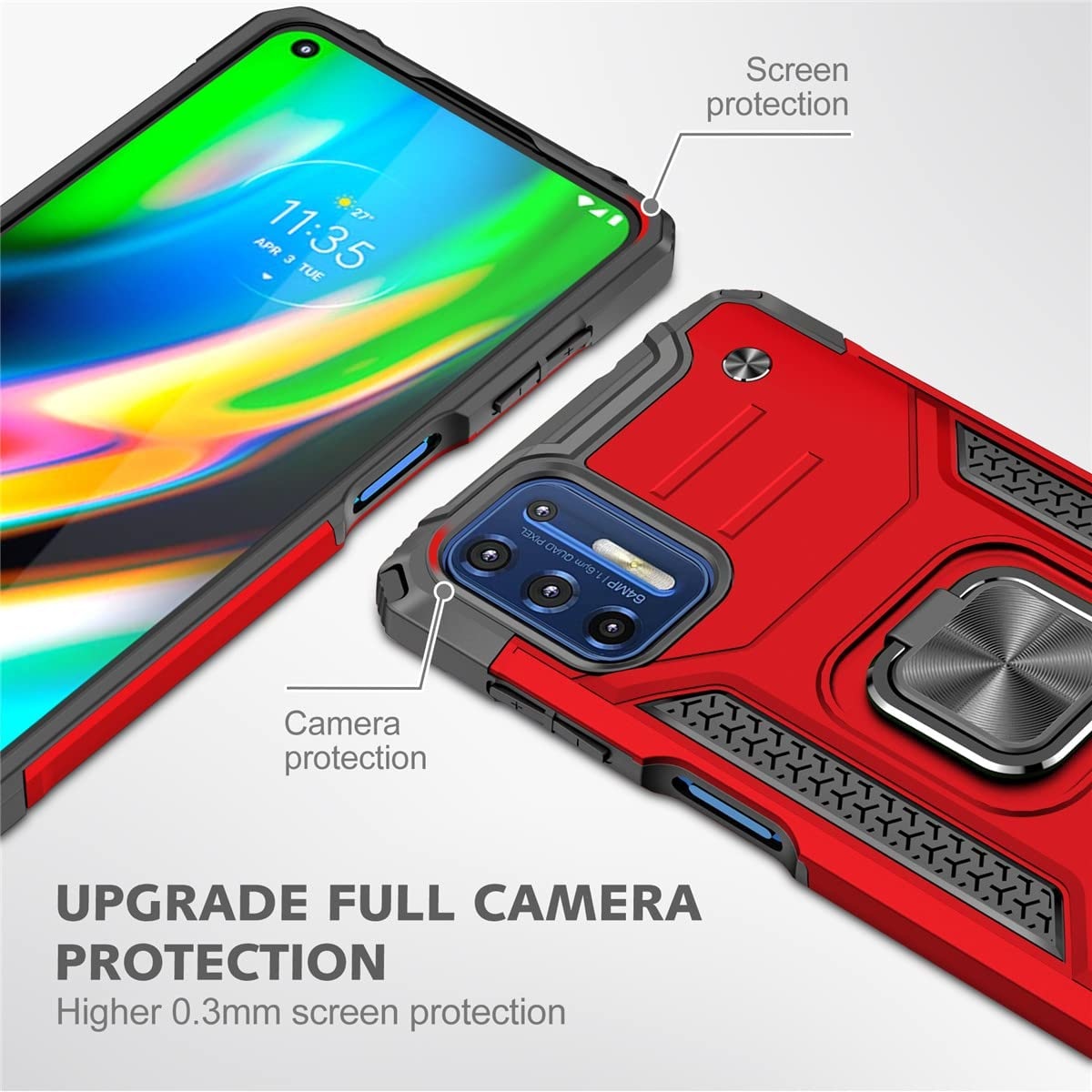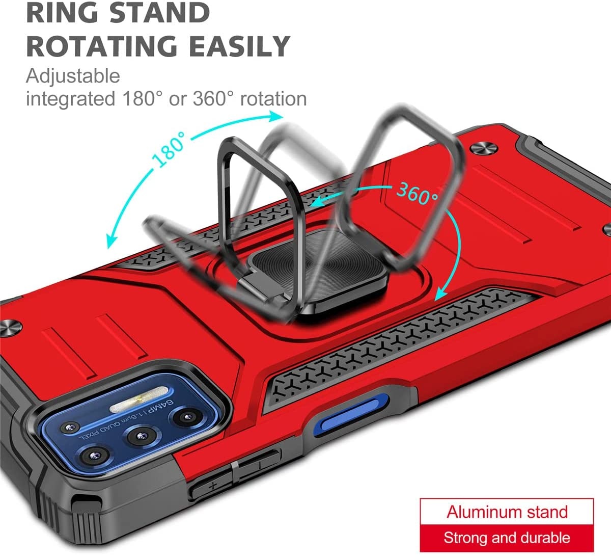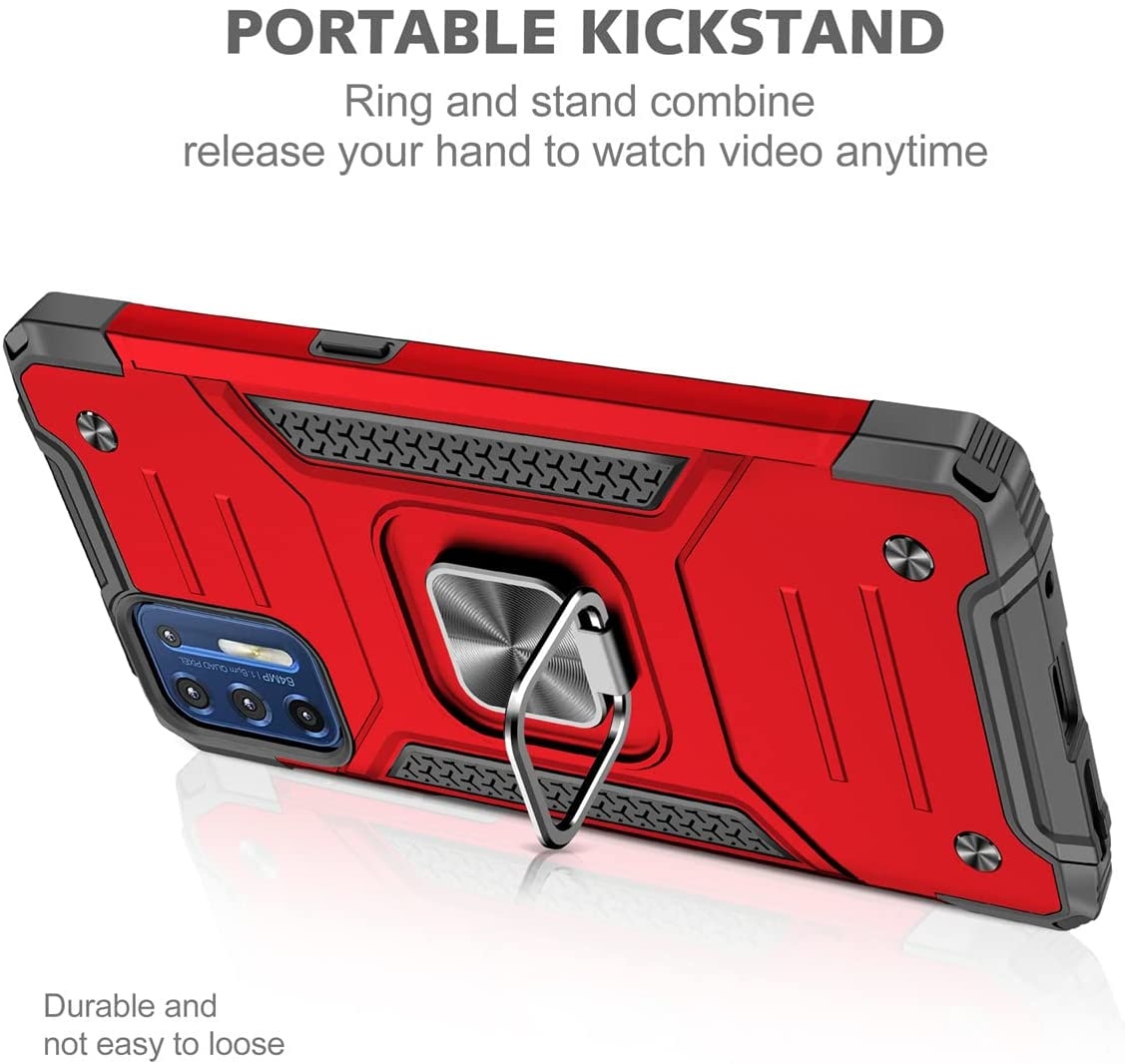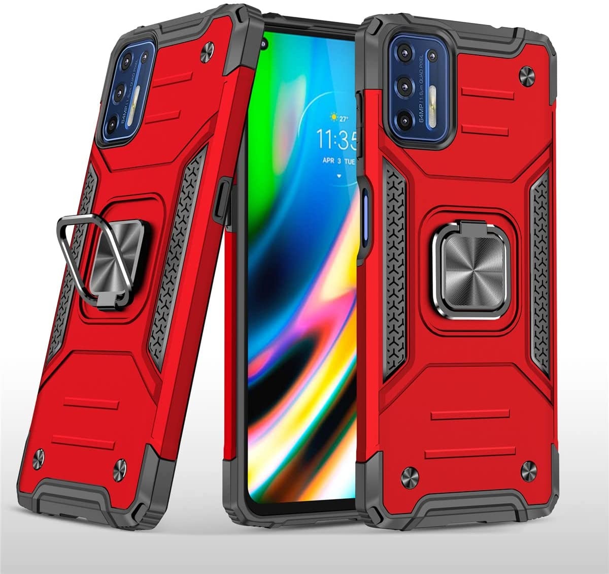 Hoesje geschikt voor Motorola G9 Plus Hoesje Heavy Duty Armor Hoesje Rood - Hoesje geschikt voor Motorola G9 Plus Case Kickstand Ring cover met Magnetisch Auto Mount