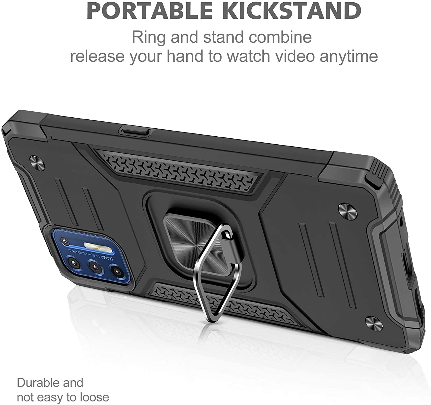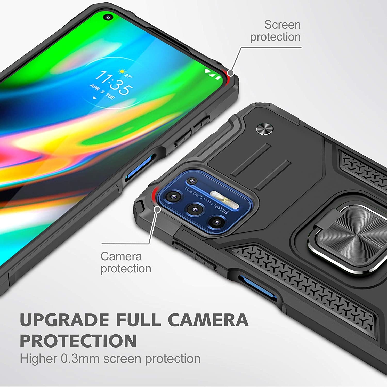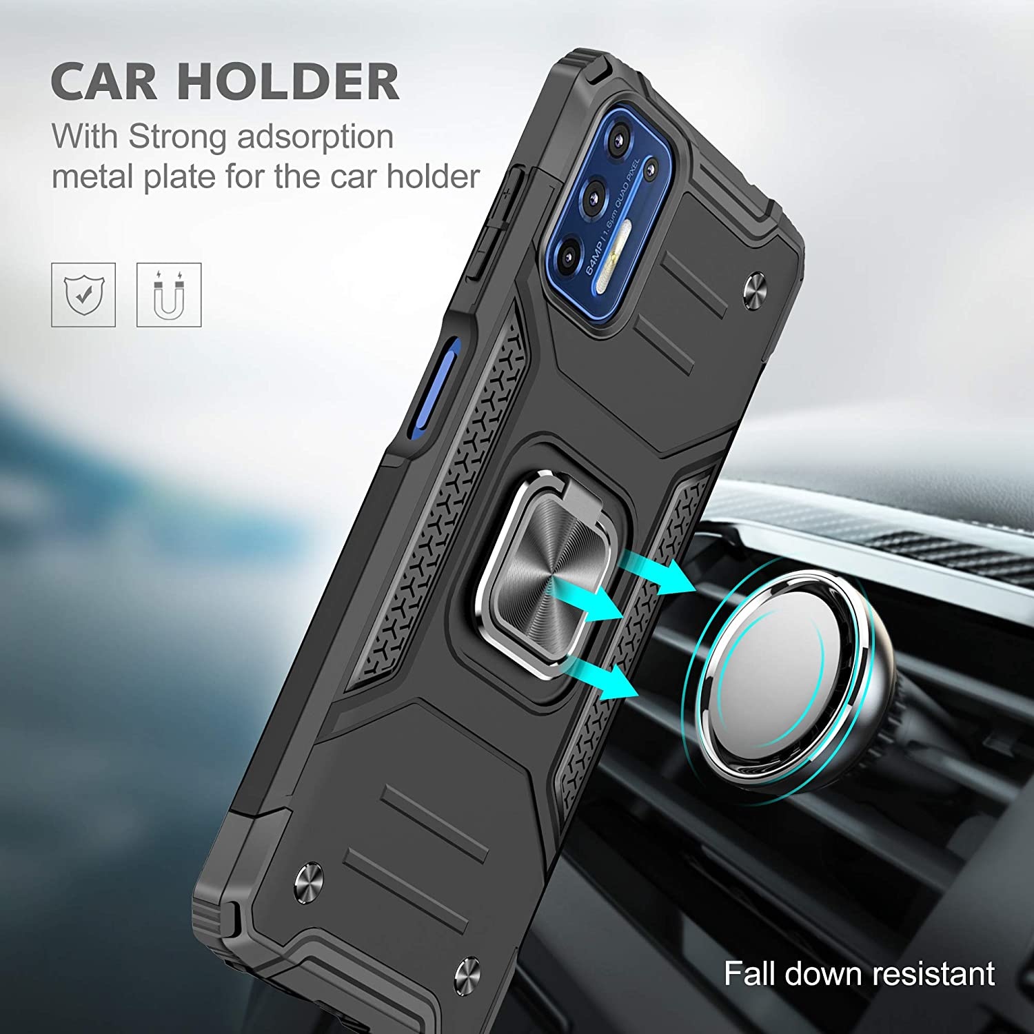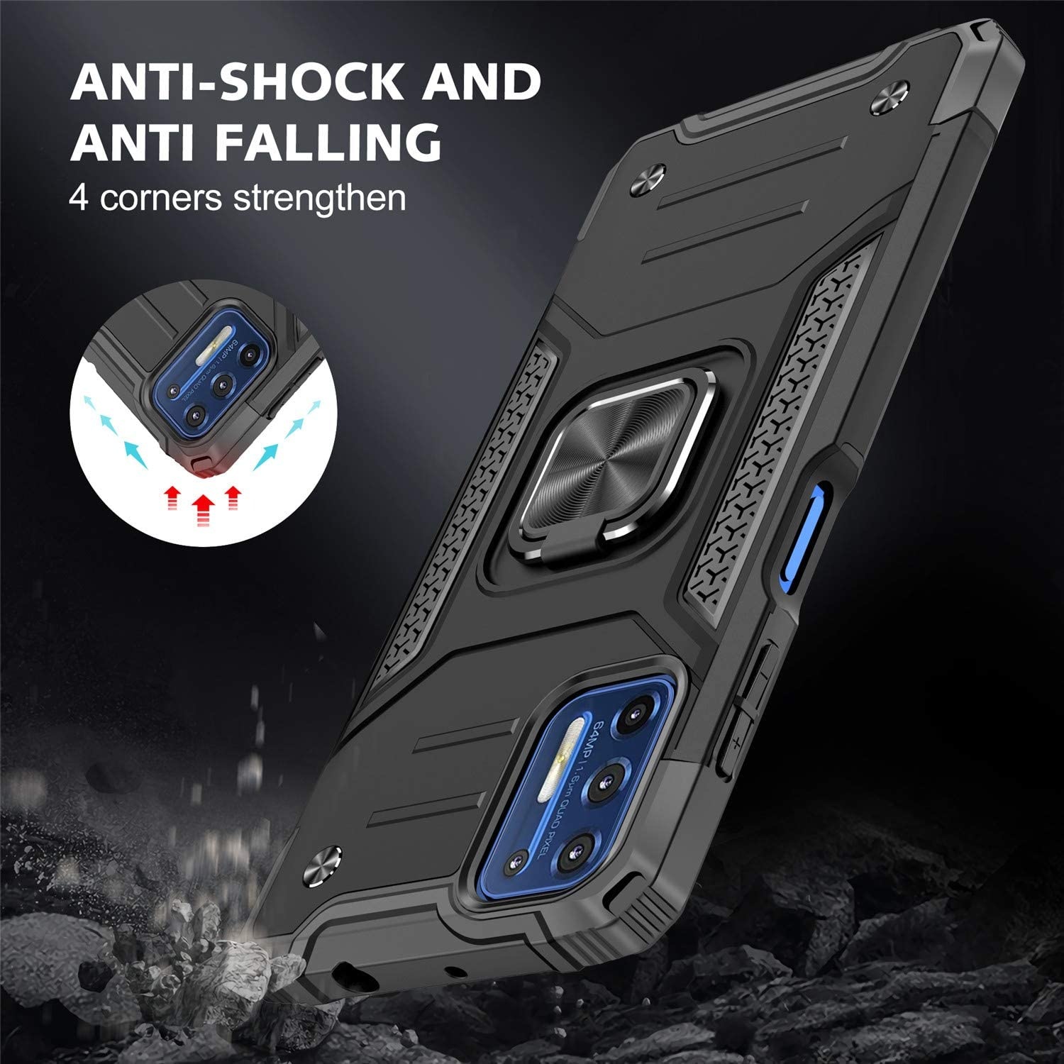 Hoesje geschikt voor Motorola G9 Plus Hoesje Heavy Duty Armor Hoesje Zwart - Hoesje geschikt voor Motorola G9 Plus Case Kickstand Ring cover met Magnetisch Auto Mount