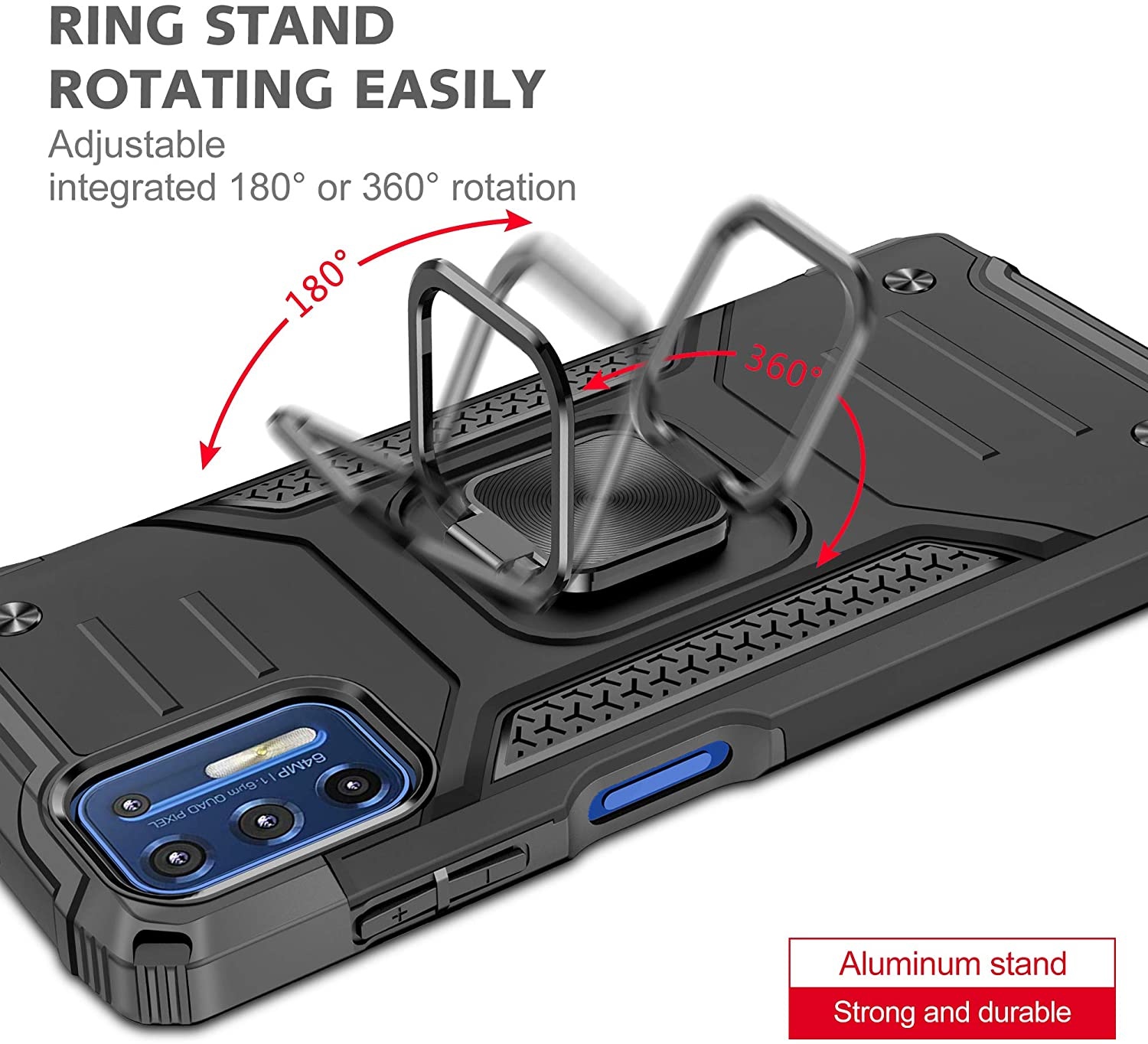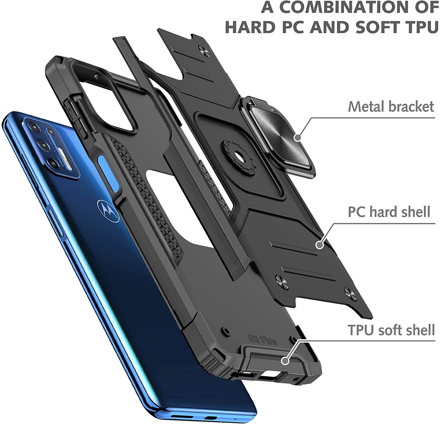 Motorola G9 Plus armor TPU Back Cover Met Metalen Ring houder & standaard. Bescherming tegen stof, stoot & vuil en makkelijk in gebruik. De Motorola G9 Plus ring houder kan je op verschillende manieren gebruiken, bijvoorbeeld als een handige standaard om je favoriete filmpjes en video's te bekijken.