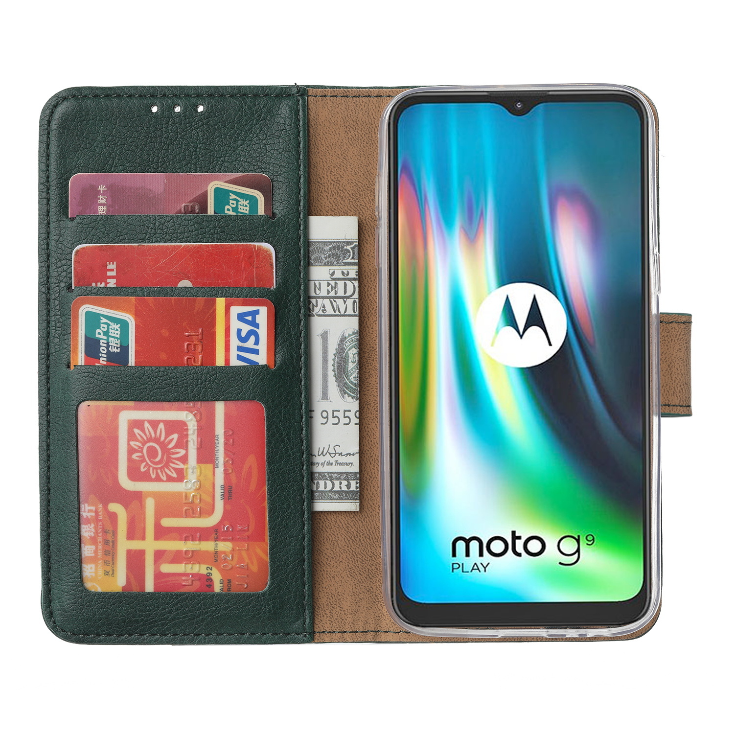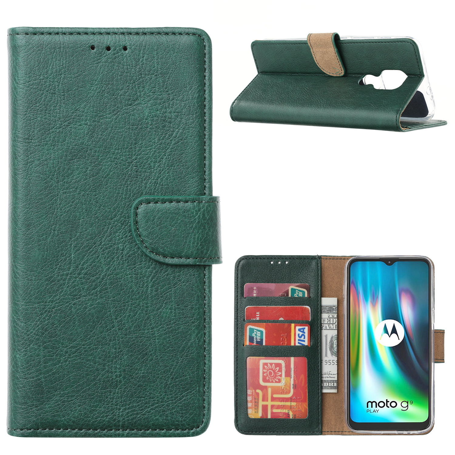 Hoesje geschikt voor Motorola Moto G9 Plus Hoesje portemonnee case met stand en Pasjeshouder - Groen