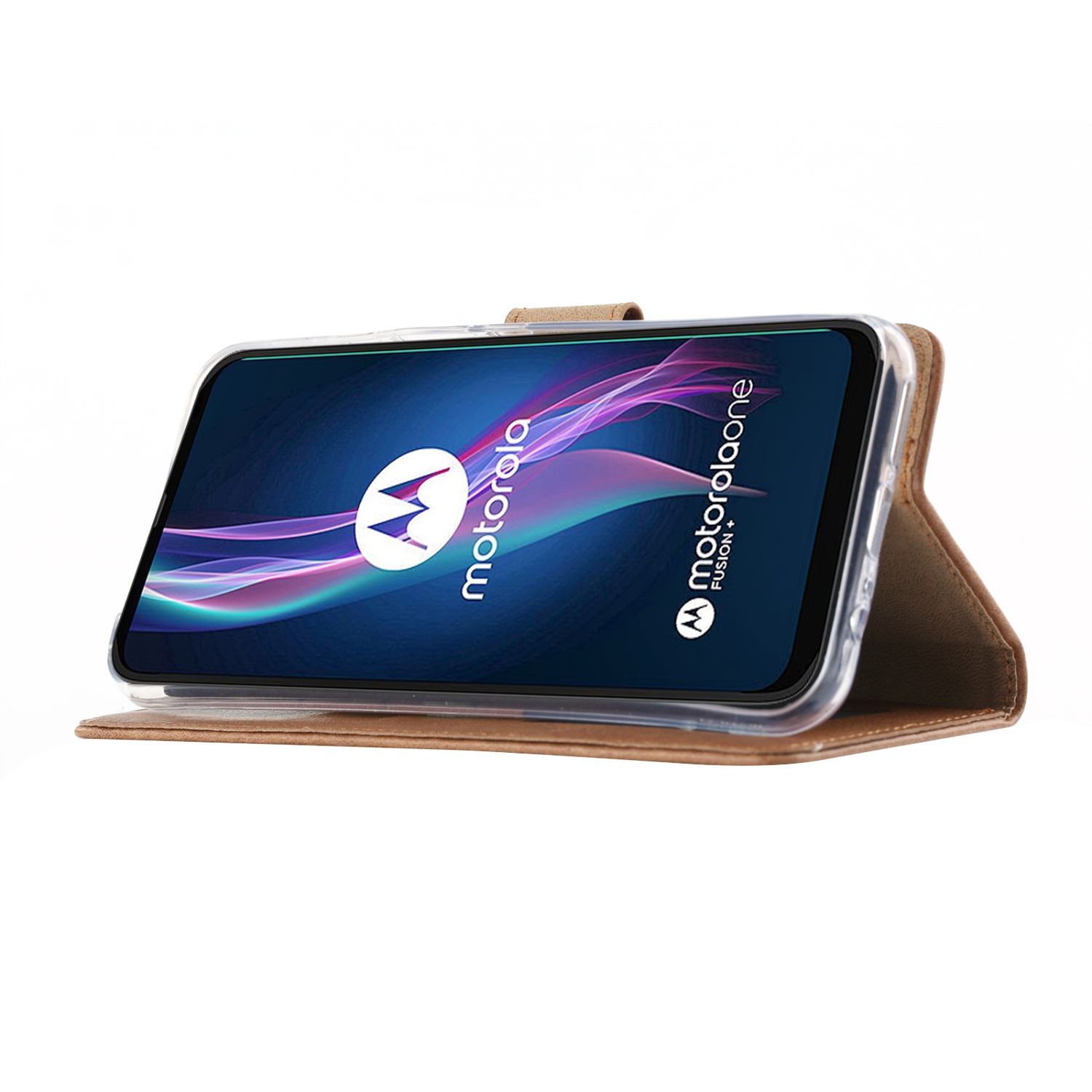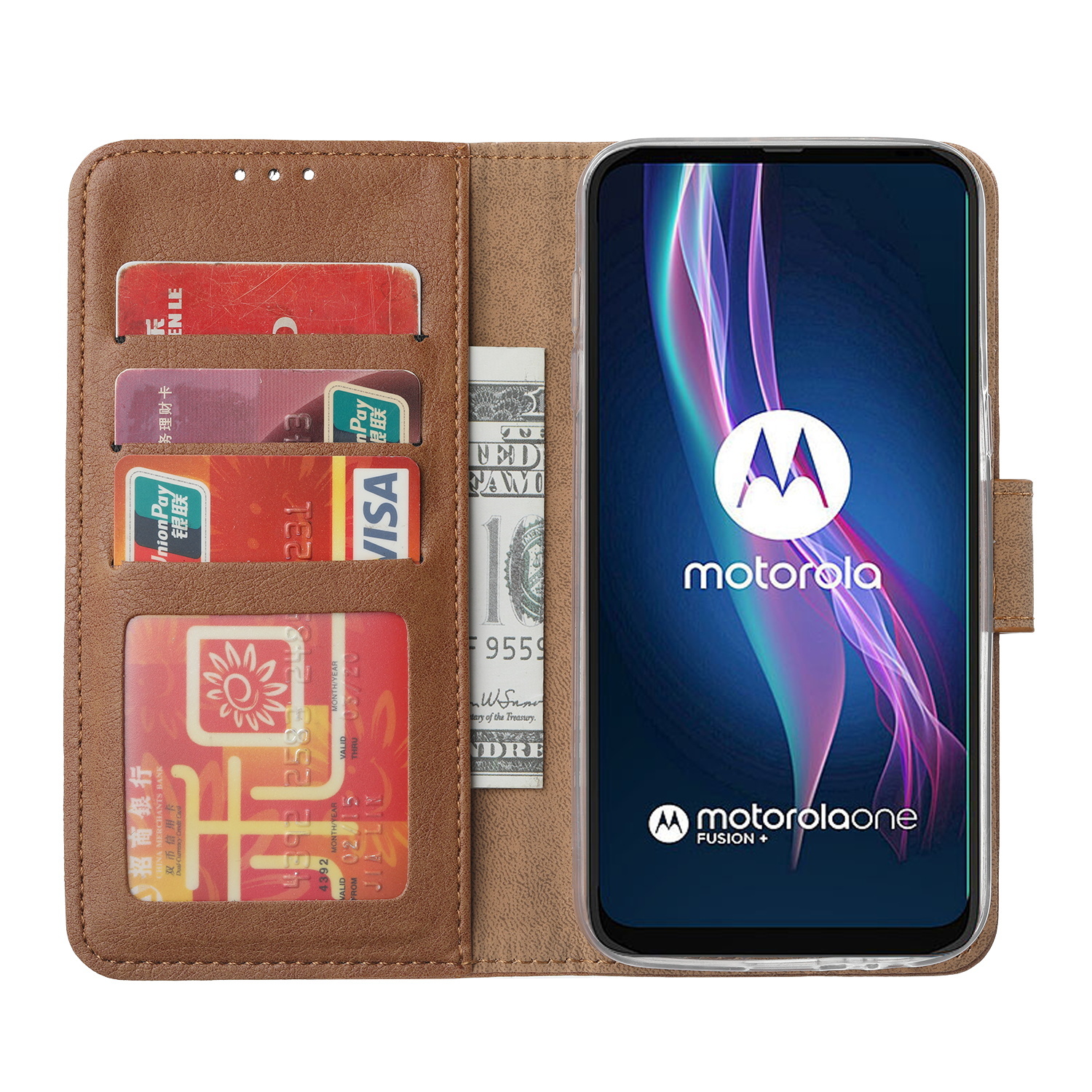 Hoesje geschikt voor Motorola Moto One Fusion Plus Hoesje met Pasjeshouder portemonnee bookcase - Bruin