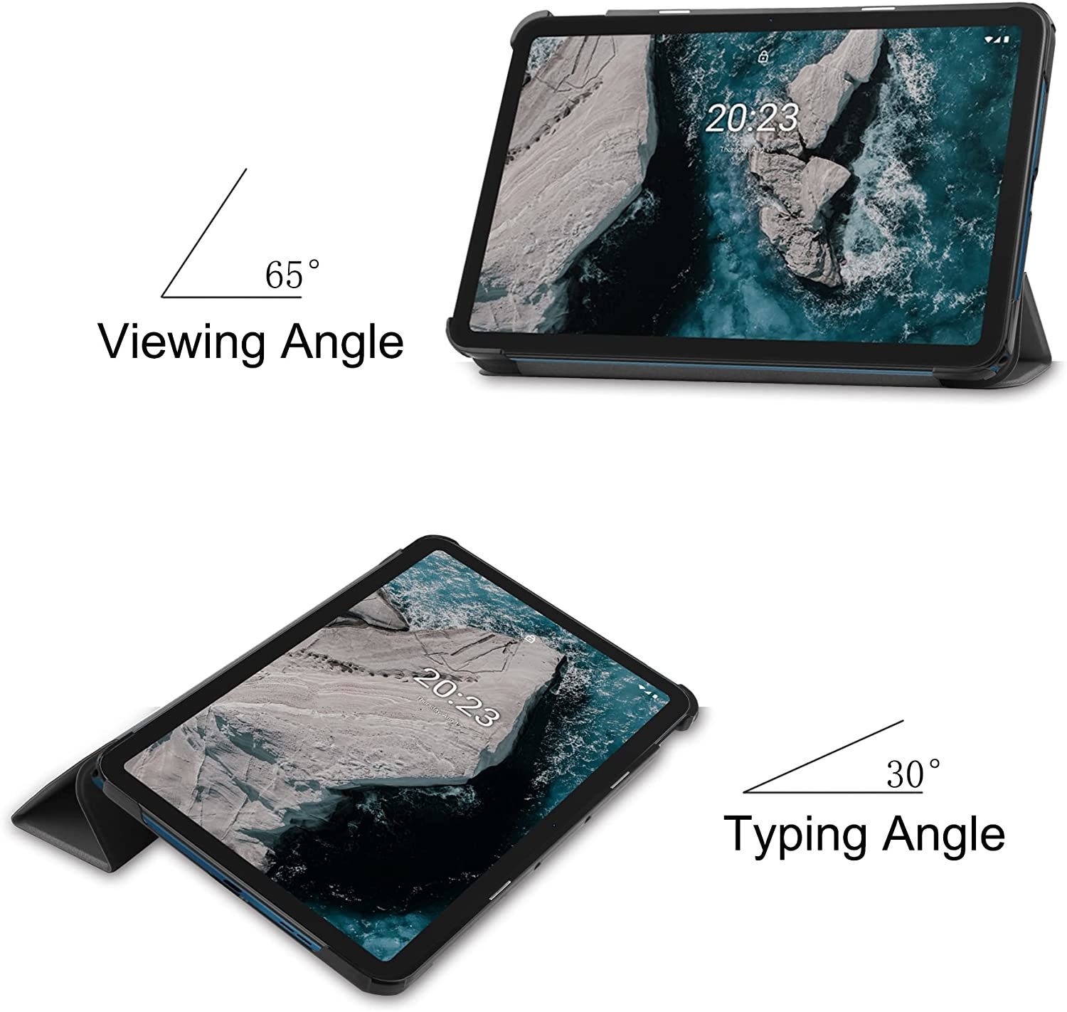 Deze Nokia T20 Smart covers zijn ook voorzien van een stand-by systeem, wanneer je de Nokia T20 Smart cover sluit gaat de tablet automatisch in stand-by modus door middel van een magneet systeem. Ook is er rekening gehouden met de bediening van de knoppen, deze zijn afgeschermd maar kunnen toch eenvoudig worden bediend. Ook zitten er uitsparingen in deze Nokia T20 Smart Cover zodat de camera,