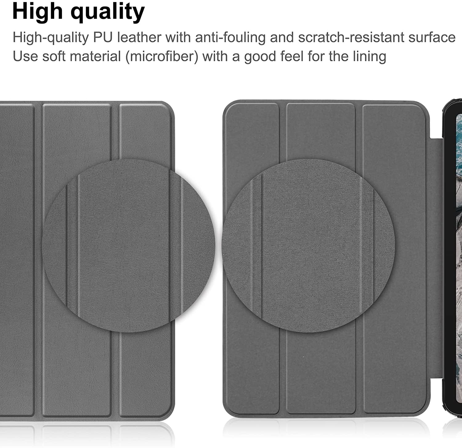 - Hoogwaardige buitenkant van synthetisch leer en zachte microfibervoering in bijpassende kleuren met flexibele TPU-achterkant. Glad TPU-materiaal voelt geweldig aan en laat geen vingerafdrukken of krassen achter.