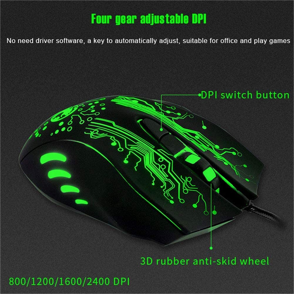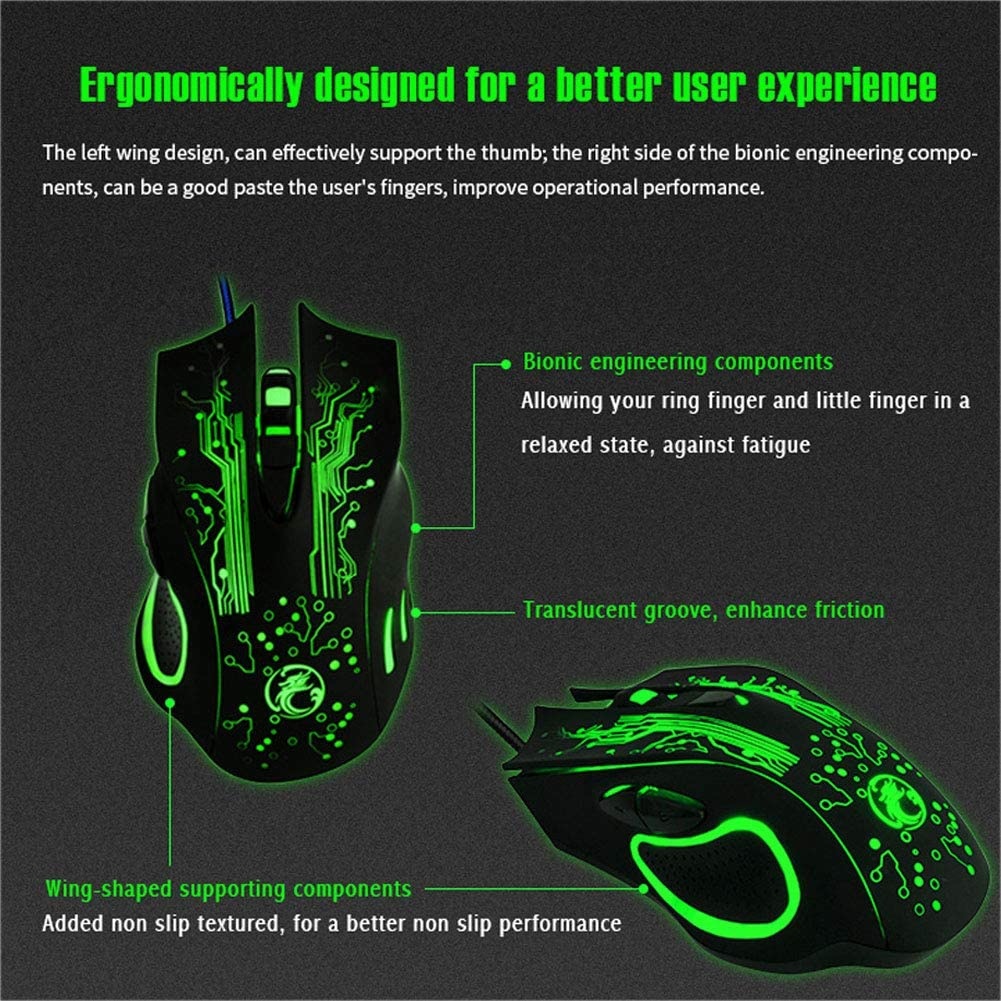 Ntech Draaloze Gaming Muis - ergonomische muis Optische Muis – 6 Button met led strip – Voor Pc Games Windows - X9 - Zwart