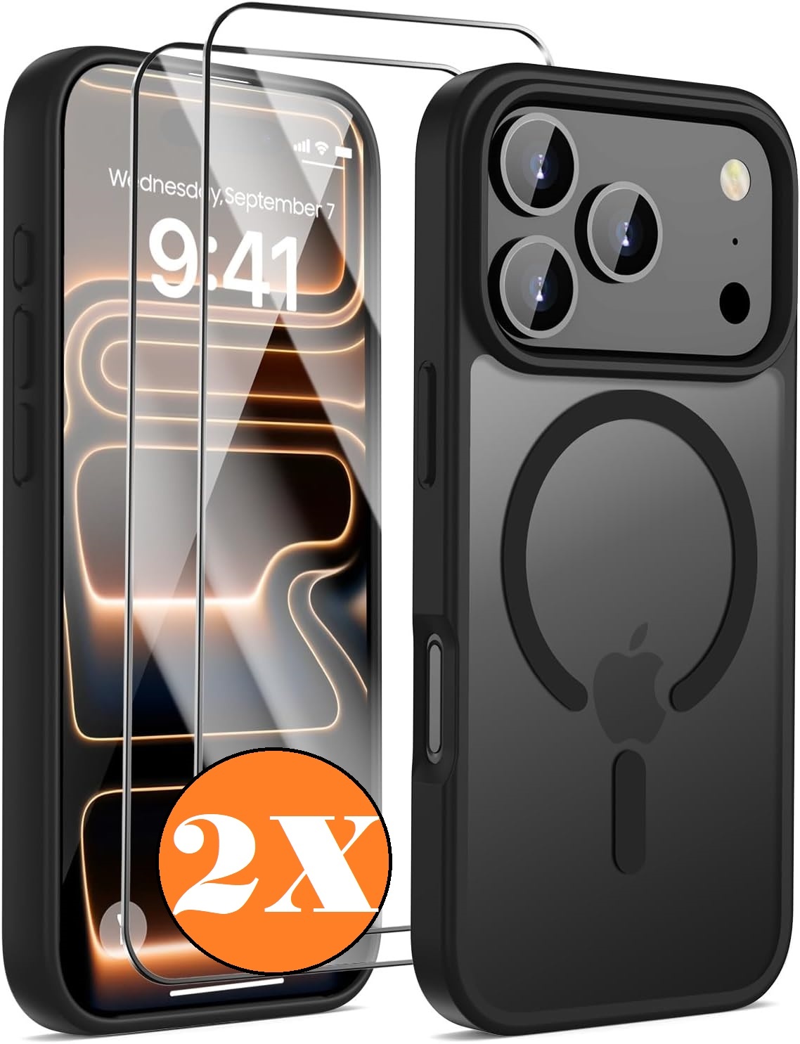 Ntech Hoesje magsafe Geschikt voor iPhone 17 Pro Max Hoesje – Hybrid Bumper hoesje Mat Zwart - Met iPhone 17 Pro Max scrennprotector