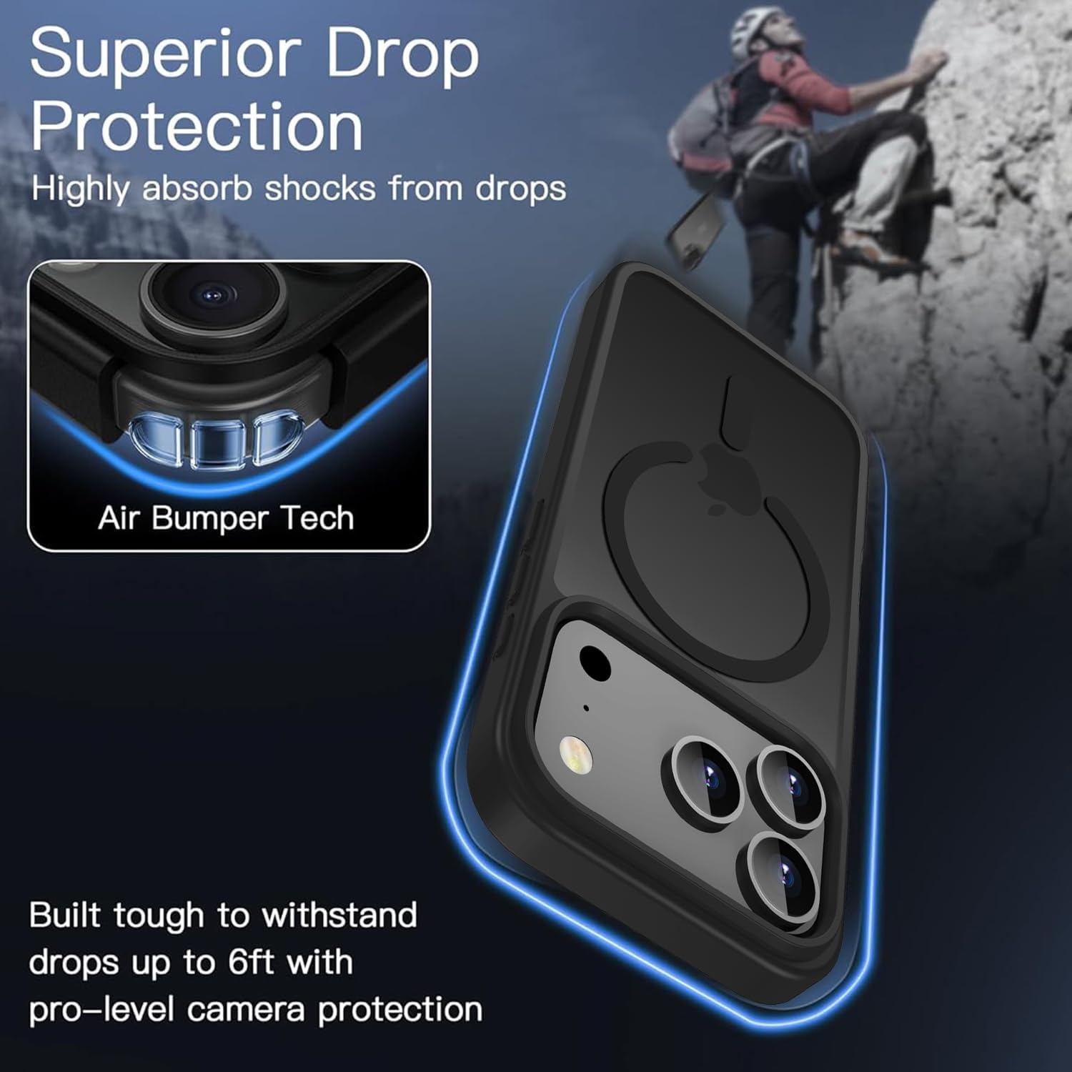 Ntech Hoesje magsafe Geschikt voor iPhone 17 Pro Hoesje – Hybrid Bumper hoesje Mat Zwart - Met iPhone 17 Pro scrennprotector