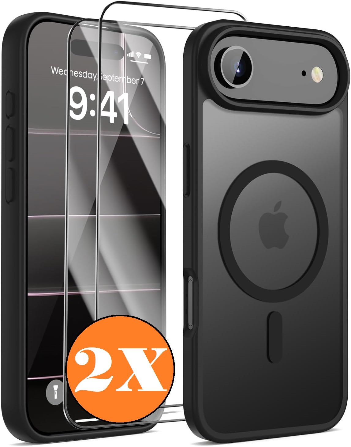 Ntech Hoesje magsafe Geschikt voor iPhone Air Hoesje – Hybrid Bumper hoesje Mat Zwart - Met iPhone Air scrennprotector
