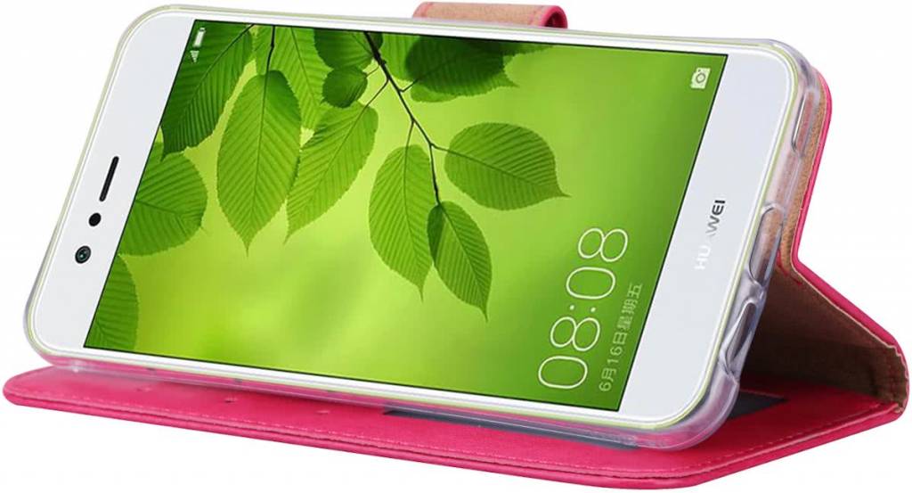 Je kunt bijvoorbeeld pasjes of briefgeld bewaren in dit boek hoesje. Dankzij de specifieke uitsparingen in dit boek hoesje (voor de camera, opladen, zijknopjes) kan je van jouw Huawei Nova 2 blijven genieten zonder dat de toestel uit het boek hoesje gehaald hoeft te worden. Dit boek hoesje maakt het mogelijk om jouw Huawei Nova 2 in horizontale stand neer te leggen om bijvoorbeeld een filmpje te kunnen kijken. Doordat er openingen aan de voorzijde in dit boek hoesje book case van jouw Huawei Nova 2 zitten, kan je met het hoesje gesloten bellen als je het gesprek hebt aangenomen.