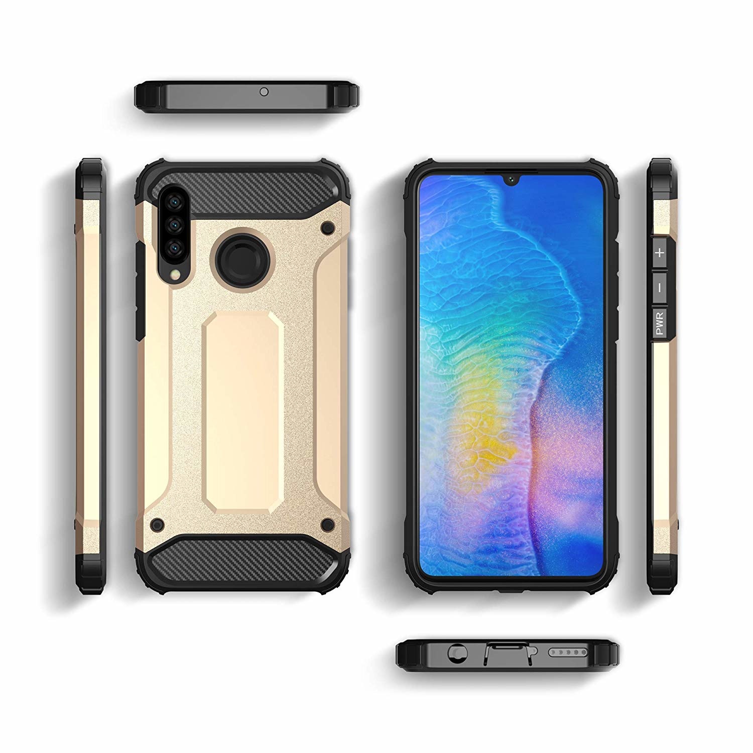 Ntech Huawei P30 Lite Dual layer Armor Hoesje - Goud