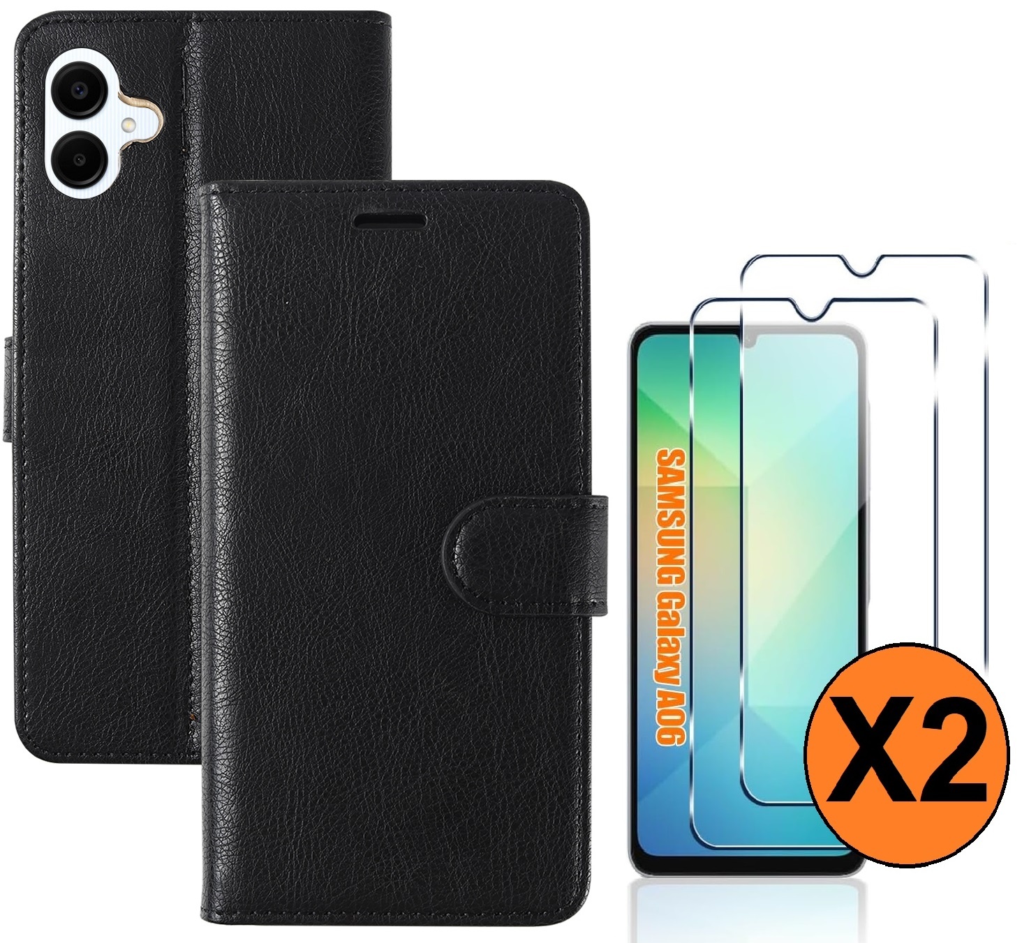 Hoesje geschikt voor Samsung Galaxy A06 hoesje bookcase Zwart - Met screenprotector tempered glass voor Galaxy A06 4G - 2x