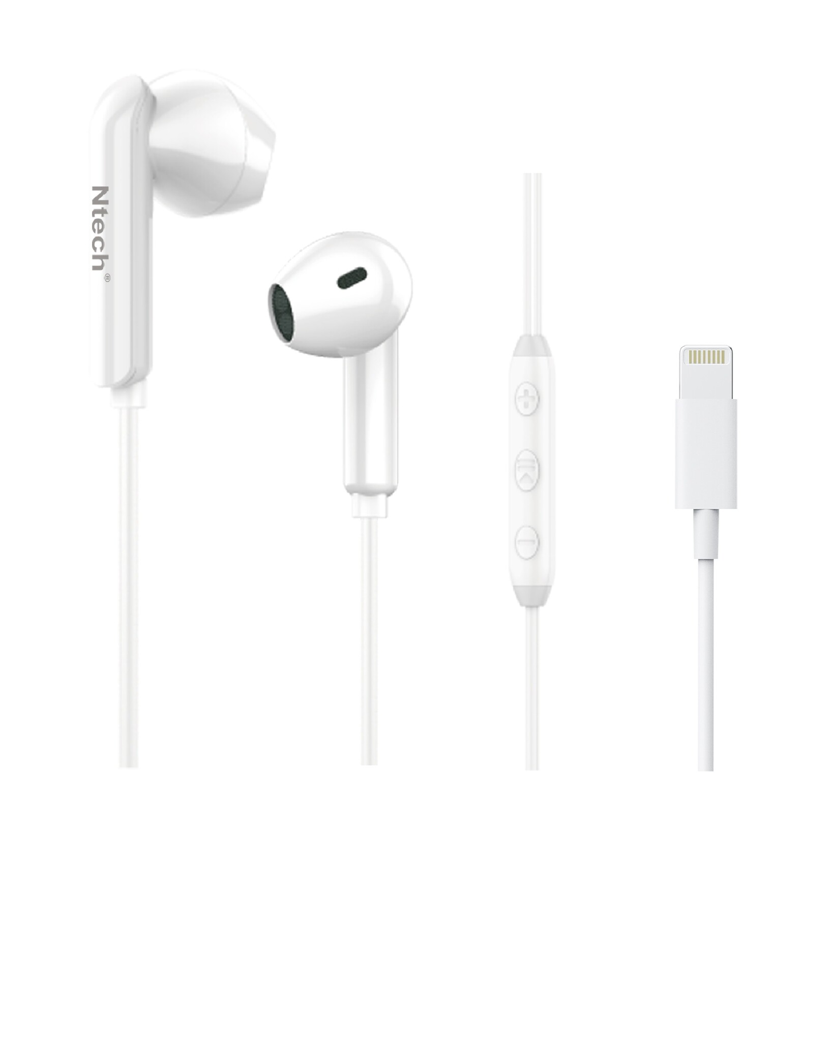 Ntech - Oortjes Geschikt voor iPhone met Lightning NT- 01 Wit - Oordopjes met Draad - iPhone oortjes - Bedraad Magnetische sluiting Voor iPhone SE 2022 /12 Pro / 13 Pro/ 13 Pro max/ 14 / 14 Pro / 14 Pro max /11/11 Pro/7/8/8 Plus/X/XR. XS/SE