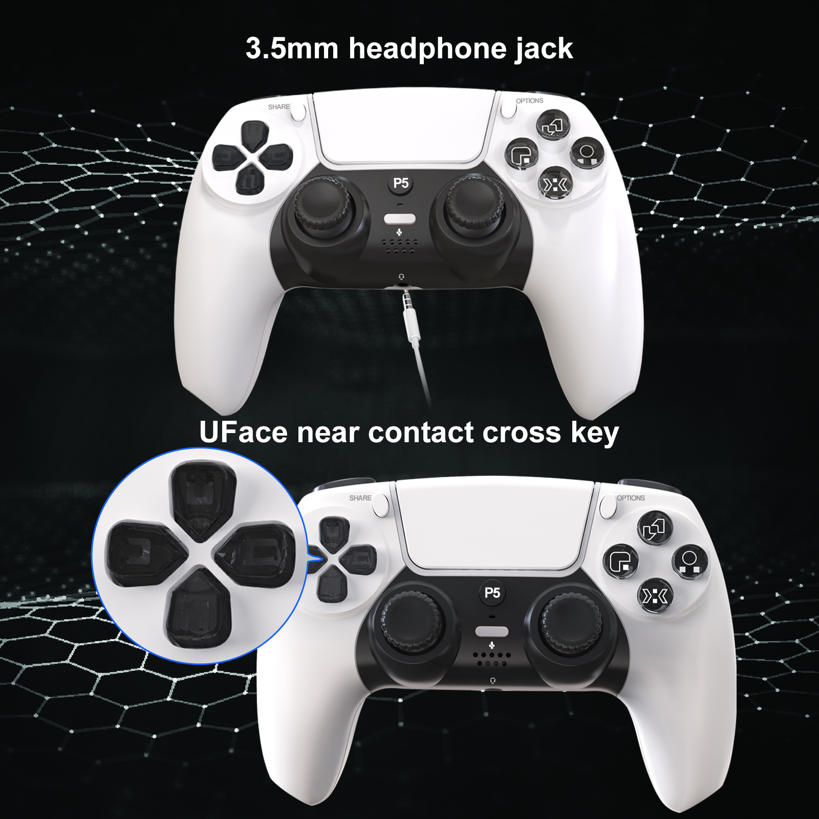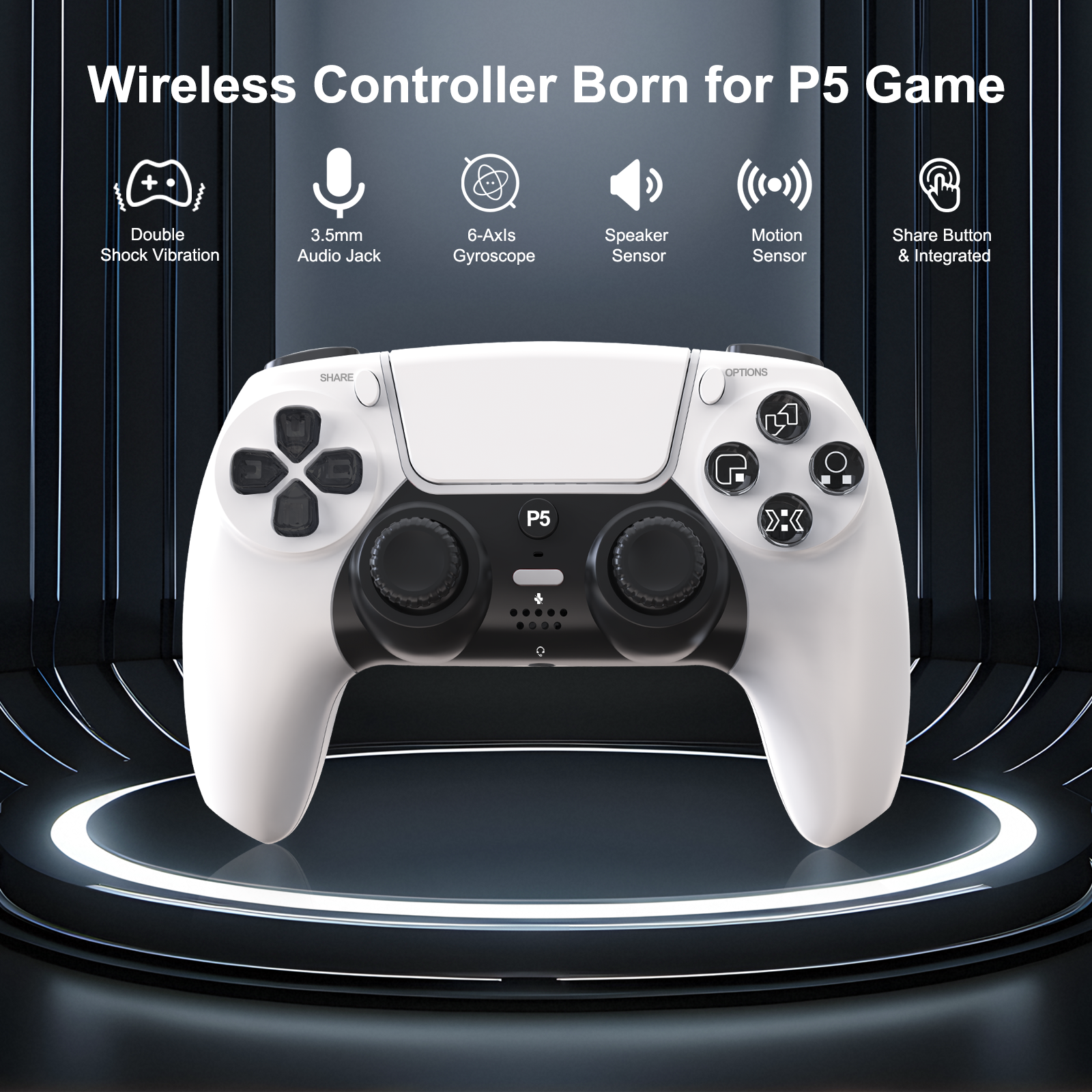 Ntech PS5 Controller Geschikt voor PS5 en PS5 Slim - ps5 game controller Draadloos - Wit - Audio Jack Input - Touch Sensor - Dual Trilmotoren Draadloze Controller