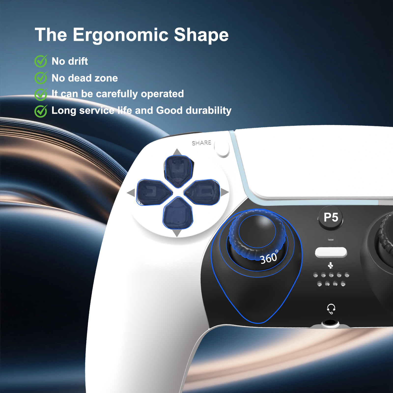 De Ntech PS5 Draadloze Controller biedt een hoogwaardige game-ervaring met een sterke focus op comfort, precisie en beleving. Deze controller is ontworpen als perfecte aanvulling op de PlayStation 5 en combineert responsieve bediening met moderne draadloze technologie voor soepele prestaties in uiteenlopende games. Dankzij het ergonomische ontwerp ligt de controller prettig in de hand, waardoor je urenlang kunt spelen zonder ongemak.