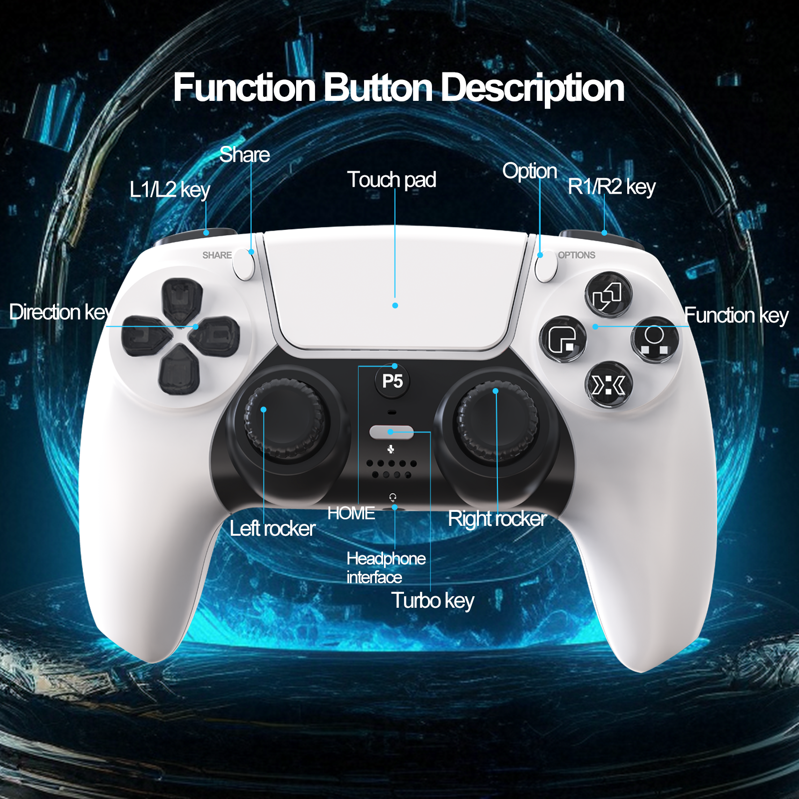 De Ntech PS5 Draadloze Controller is gemaakt van duurzame materialen en heeft een strak, modern design. De intuïtieve knoppenindeling voelt direct vertrouwd aan voor PlayStation-gebruikers en biedt de nauwkeurigheid die nodig is voor zowel casual als competitief gamen. Ideaal als extra controller voor multiplayer of als betrouwbare vervanging.