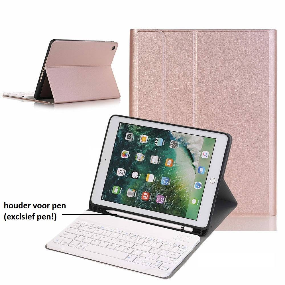 Hoes geschikt voor iPad 2018 met Toetsenbord Rosegoud - Hoes geschikt voor iPad 2017 hoes - Hoes geschikt voor iPad 6e Generatie hoes QWERTY Keyboard met Bluetooth