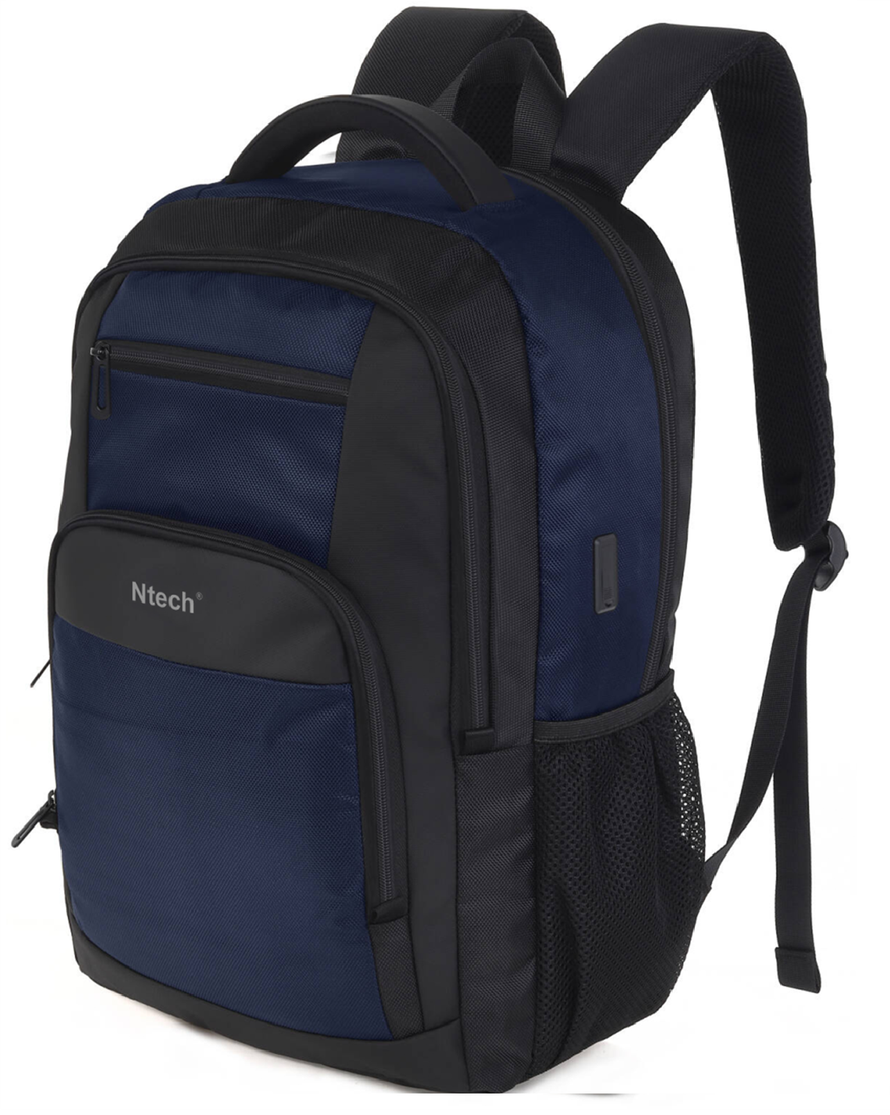 Ntech Rugzak Blauw - Schooltas 20L - Spatwaterdicht Rugzak Inclusief USB C Oplaadpoort - Laptoptas Dames en Heren - Jongens en Meisjes - Laptop Rugtas 16 inch