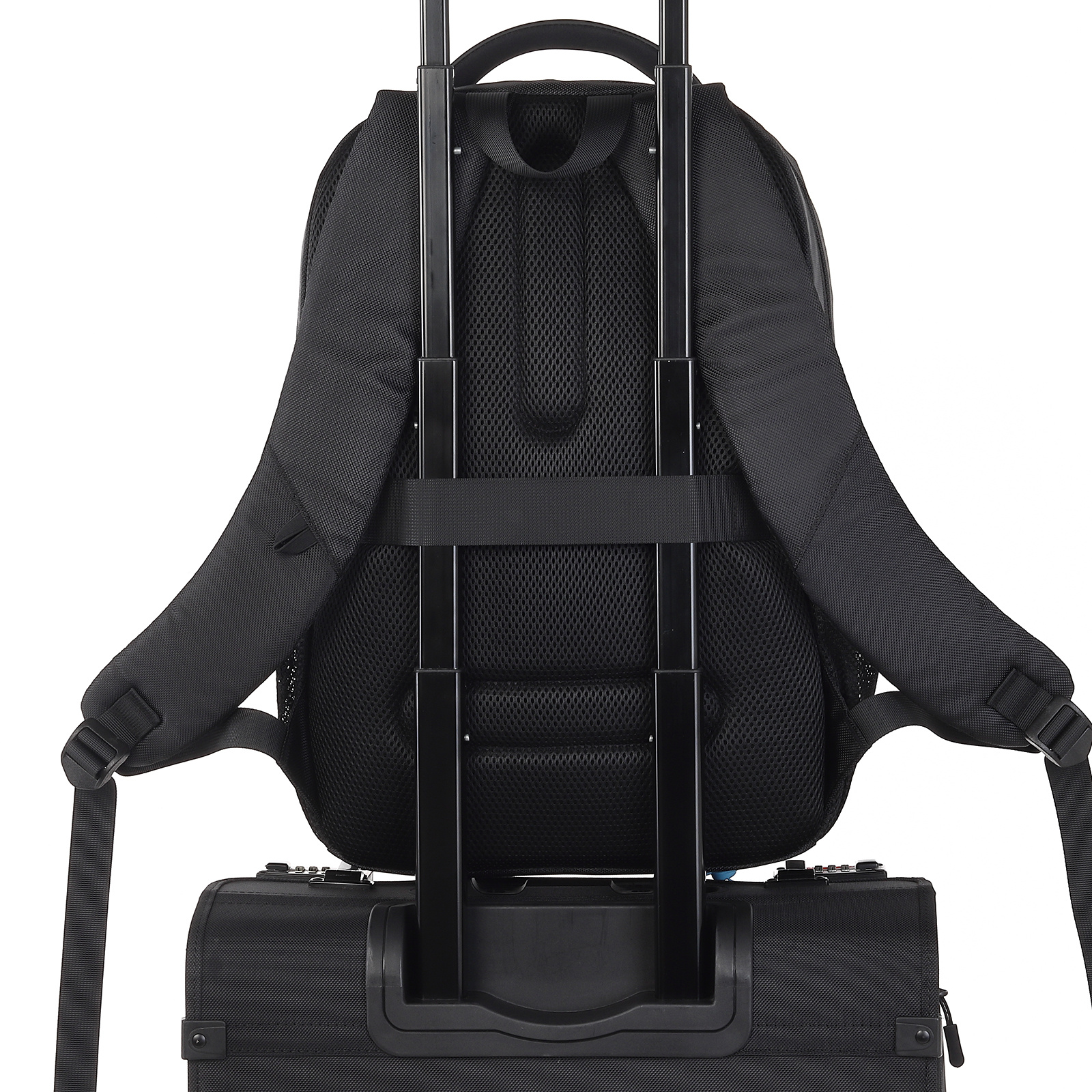 Comfort staat centraal in het ontwerp. De rugzak heeft extra sponsvulling in het rugpand en de schouderbanden, wat zorgt voor een zachte, ademende en comfortabele draagervaring – zelfs tijdens lange dagen. Dankzij het drukverlagende ontwerp wordt het gewicht gelijkmatig verdeeld, waardoor schouder- en rugbelasting wordt verminderd. Voor extra gemak tijdens het reizen is er een bagageriem die eenvoudig over een trolleyhandvat schuift.