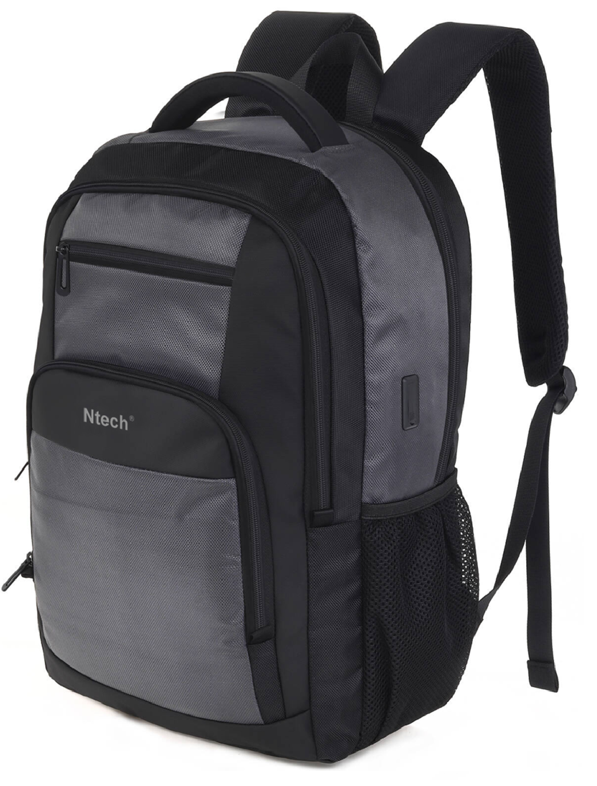 Ntech Rugzak Grijs - Schooltas 20L - Spatwaterdicht Rugzak Inclusief USB C Oplaadpoort - Laptoptas Dames en Heren - Jongens en Meisjes - Laptop Rugtas 16 inch