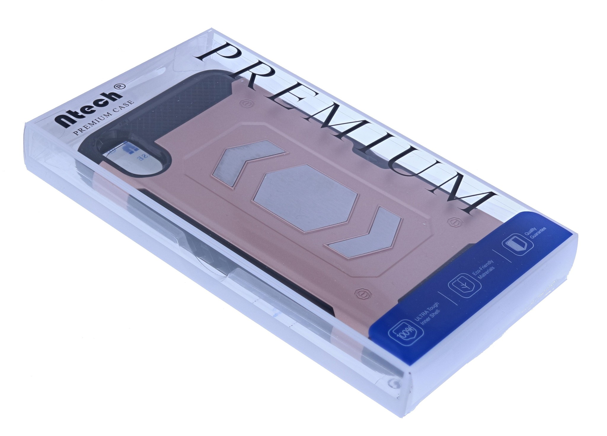 Ntech Geschikt voor Samsung Galaxy A6 Luxe Armor Case met Pashouder - Rose Goud