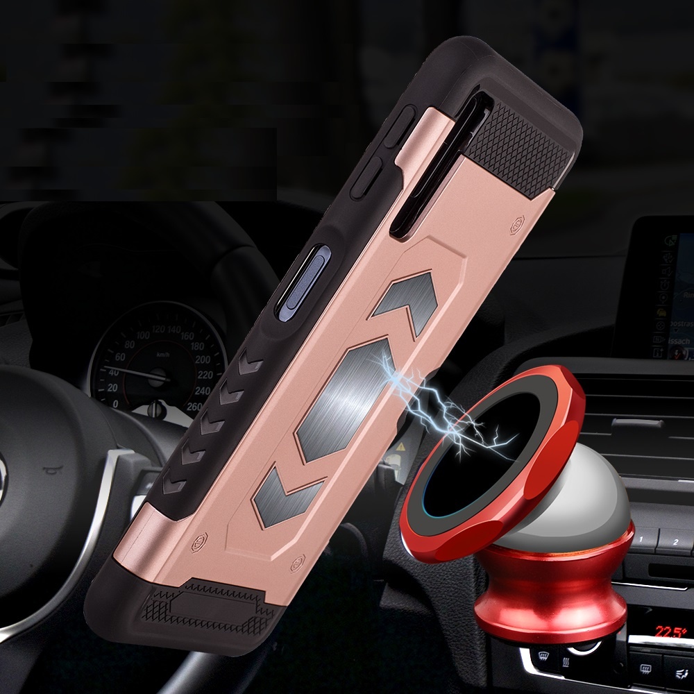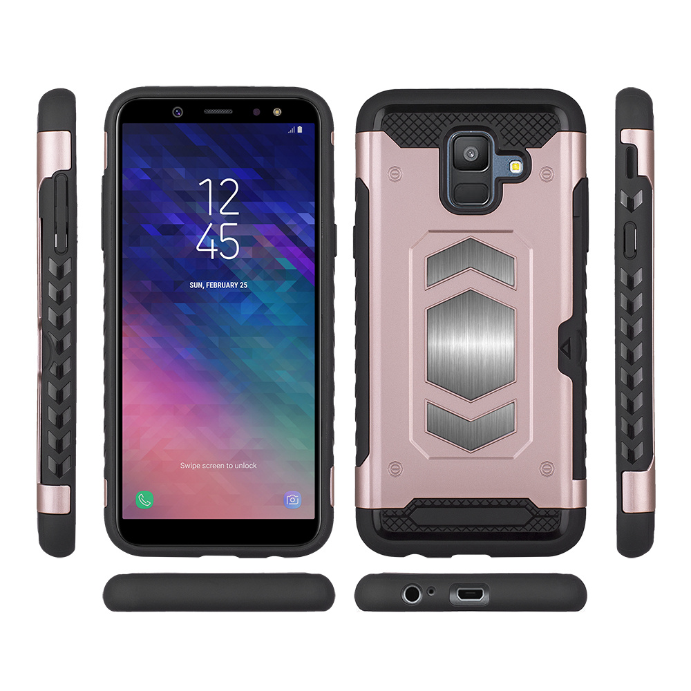 Deze back cover Dual Layer combi is speciaal gemaakt voor de Samsung Galaxy A6 met een metalen plaatje op de achterkant wat je kan gebruiken als een mount op een magnetisch houder bijvoorbeeld in je auto en een ruimte waar je OV kaart, Bankpas of andere soorten pasje in kunt doen. Deze hoesje beschermt jouw toestel tegen ongewenste gebruikersschade. Je smartphone zit in de binnenkant aan een sterke en stevige houder, zo wordt jouw telefoon in dit hoesje tegen stevige stoten en of valpartijen beschermd