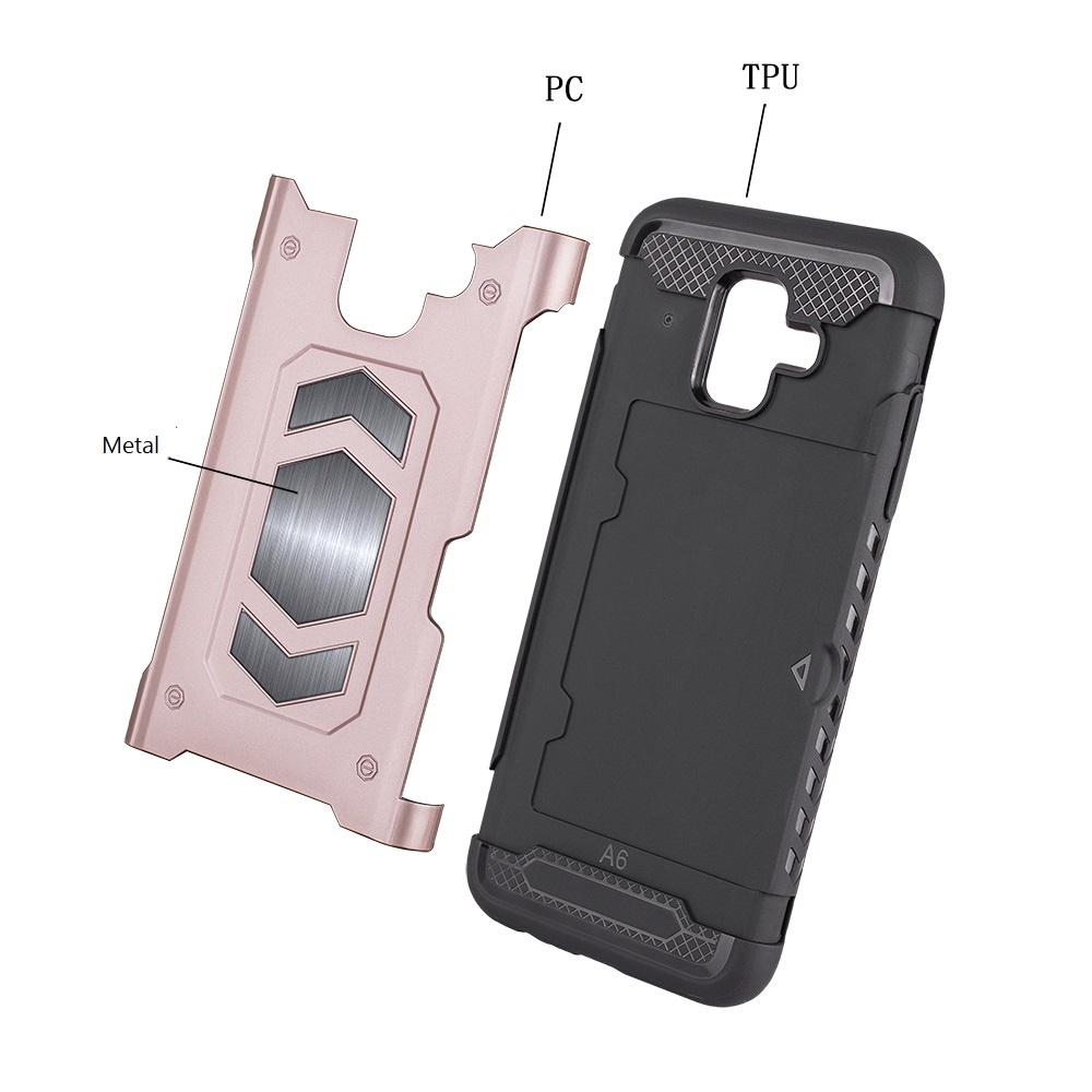 Samsung Galaxy A6 Luxe Armor TPU Back Cover met card slot & metaalplaat hoesje - Rose Goud Lees meer