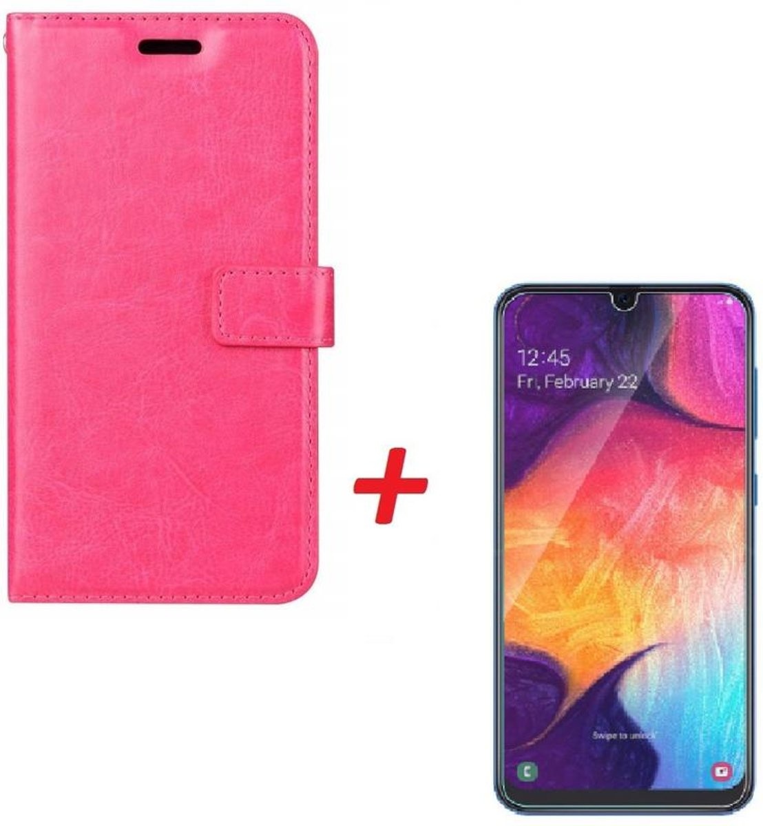 Ntech Hoesje Geschikt Voor Samsung Galaxy A70/A70s Portemonnee hoesje - Pink Met Tempered Glas