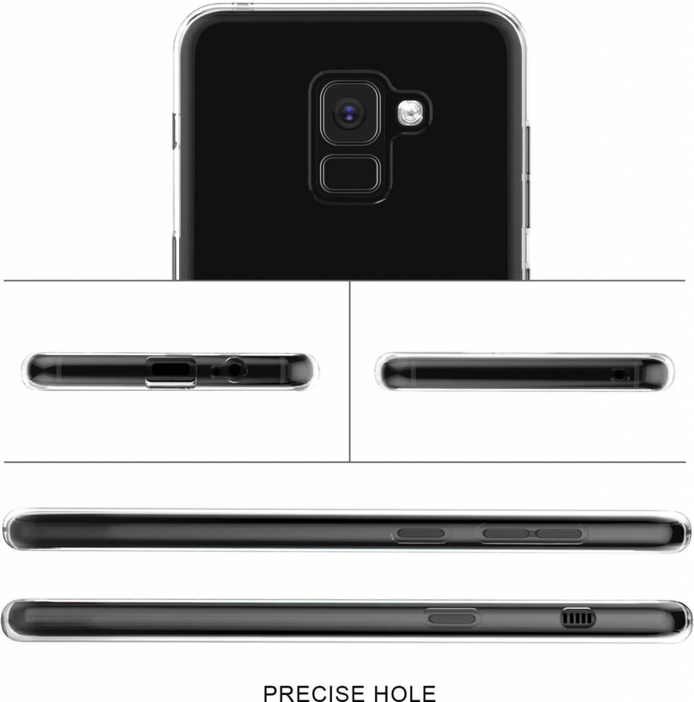 De transparante behuizing is gemaakt van het extreem flexibele TPU-materiaal. Dit materiaal is zeer geschikt voor een koffer omdat het zeer flexibel, zeer sterk en zelfs vet- en oliebestendig is. De hoesje is ook zo ontworpen dat de hoesje om de randen van uw Samsung Galaxy A8 (2018) vouwt. Op deze manier worden de hoeken ook beschermd en de koffer kan ook de dagelijkse kleine schokken en schokken opvangen