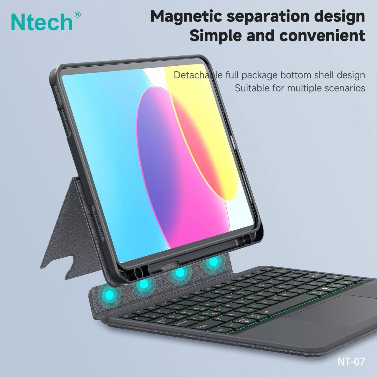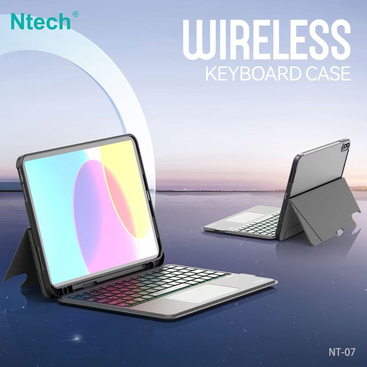 Ntech Bluetooth Keyboard Case voor iPad 2025 11” & iPad 10th Gen 10.9” – Met Touchpad, Backlight & Verstelbare Stand