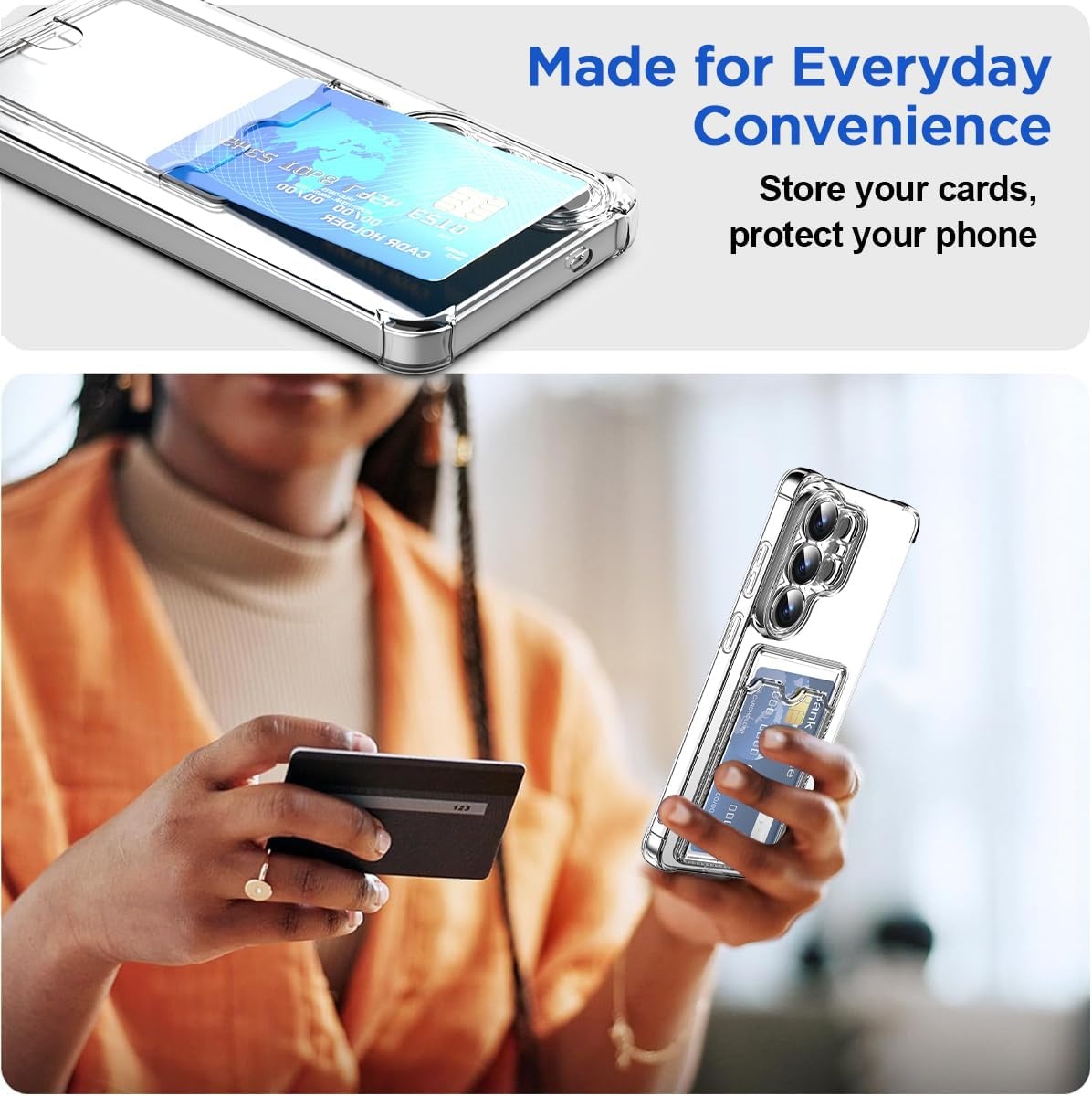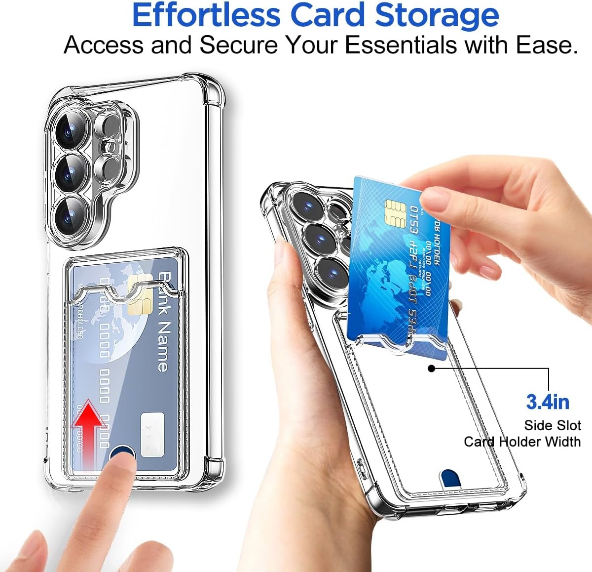 Met deze transparante shockproof case met kaarthouder blijft je Samsung Galaxy S26 Ultra 5G optimaal beschermd, terwijl je altijd je belangrijkste pasjes bij de hand hebt.