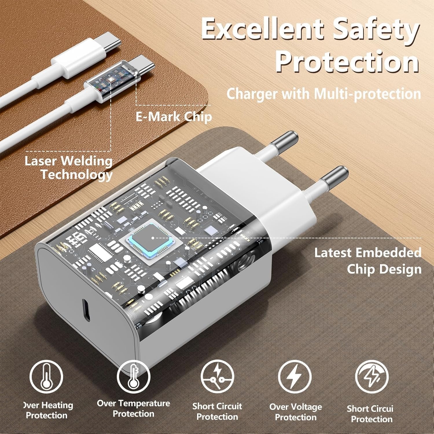 Ingebouwde bescherming tegen overladen, oververhitting en kortsluiting voor veilig opladen. -